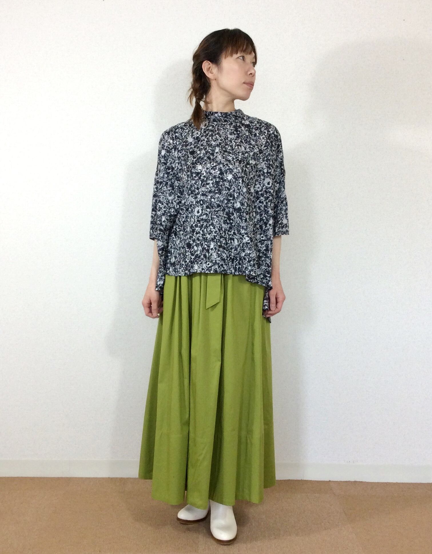 <Coordinate tips> 少しくるぶしが見えるクロップドパンツと合わせるとより軽やかな雰囲気に。スカートは落ち感のある広がらないロングシルエットなら合わせられますよ。