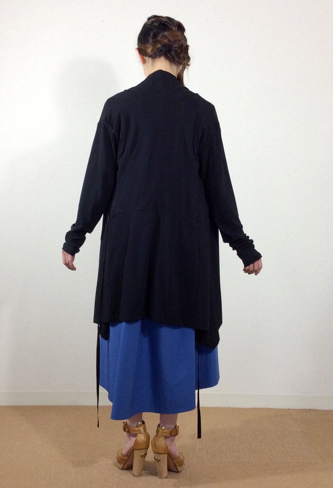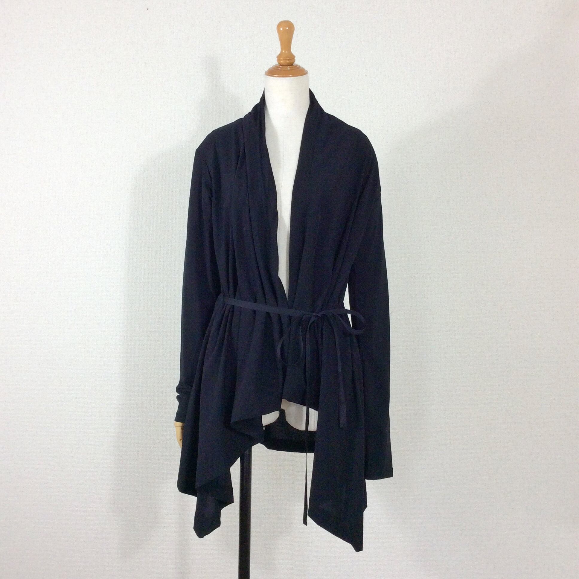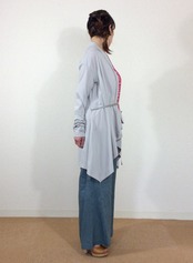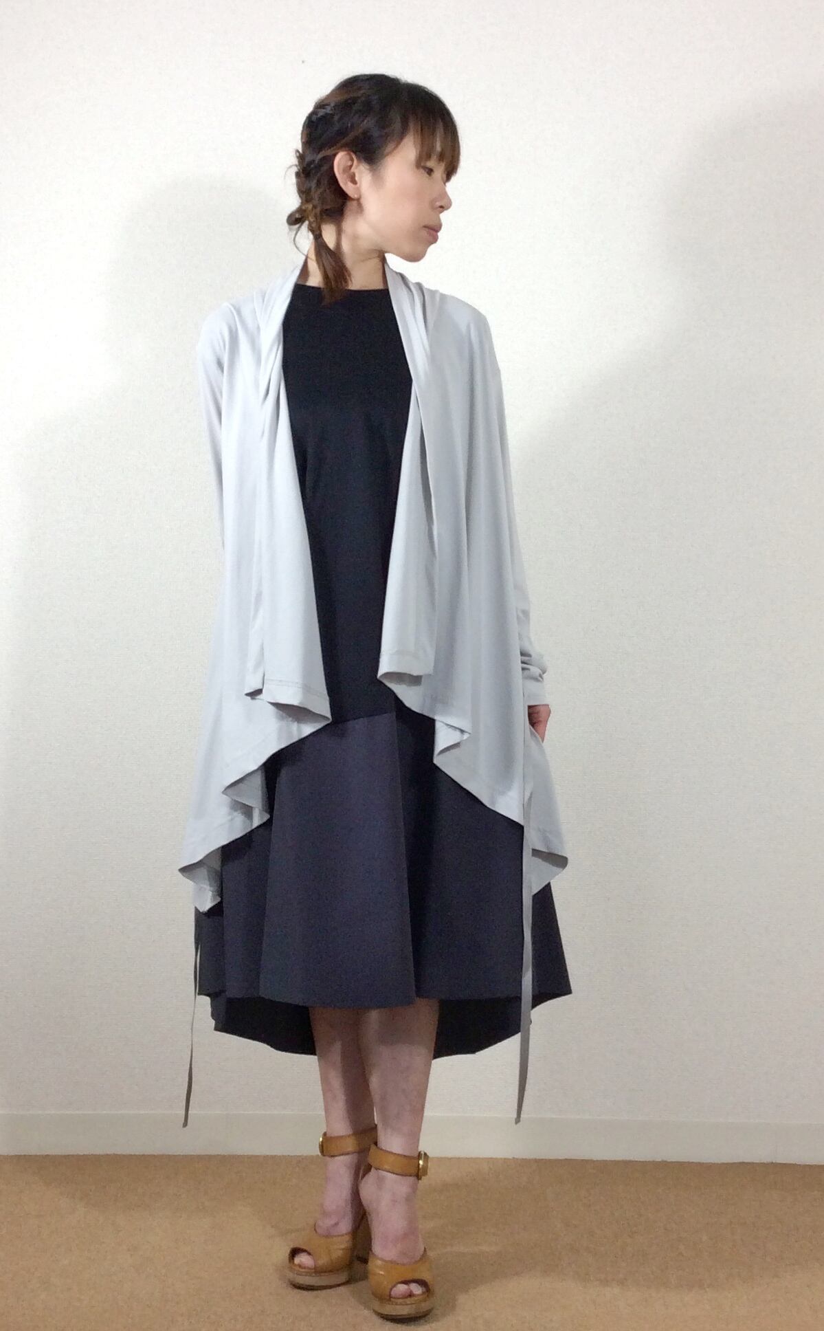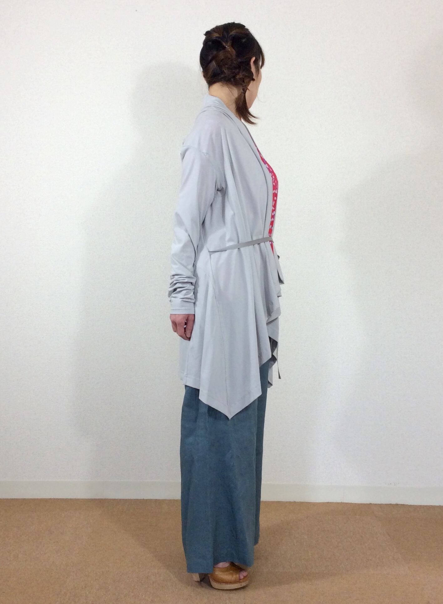 <Coordinate tips>生地をたっぷり使っているので、サテンテープで縛ると綺麗なドレープが。ウエストマークせず、着流すだけでも十分存在感のある素敵な羽織りものです。