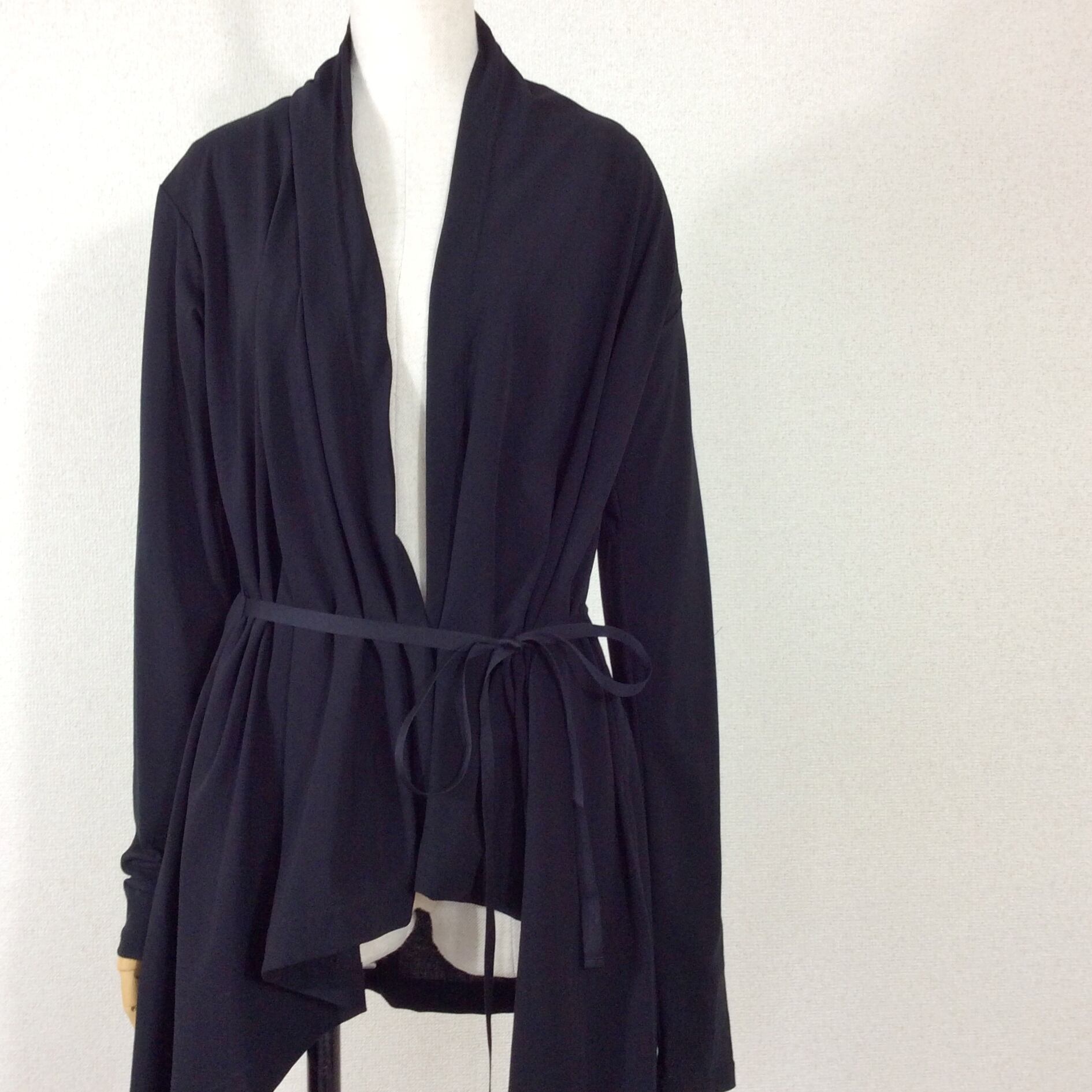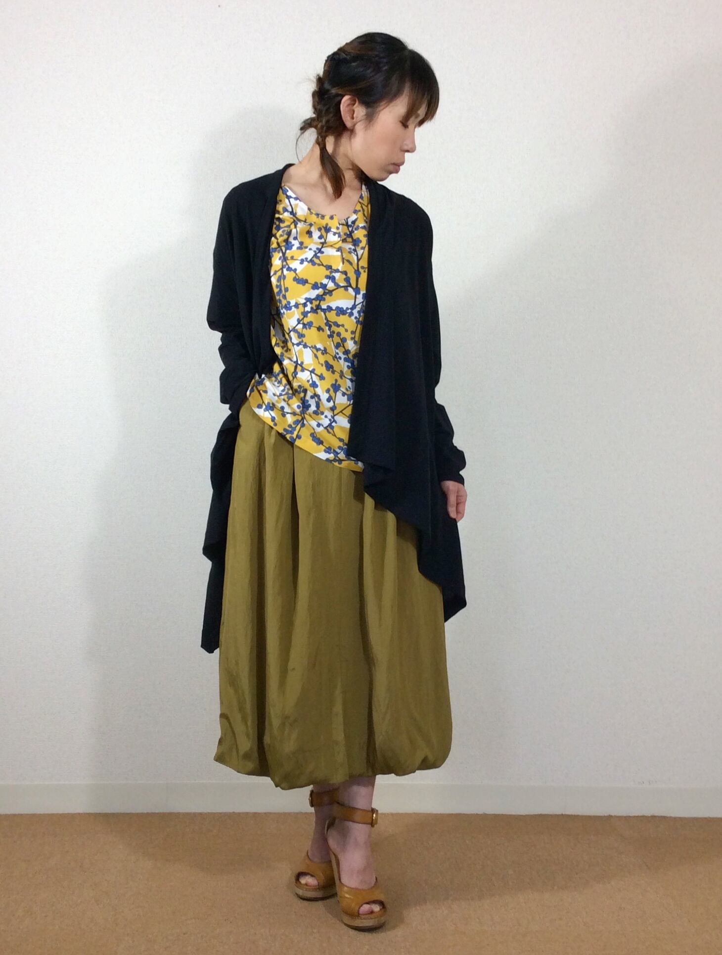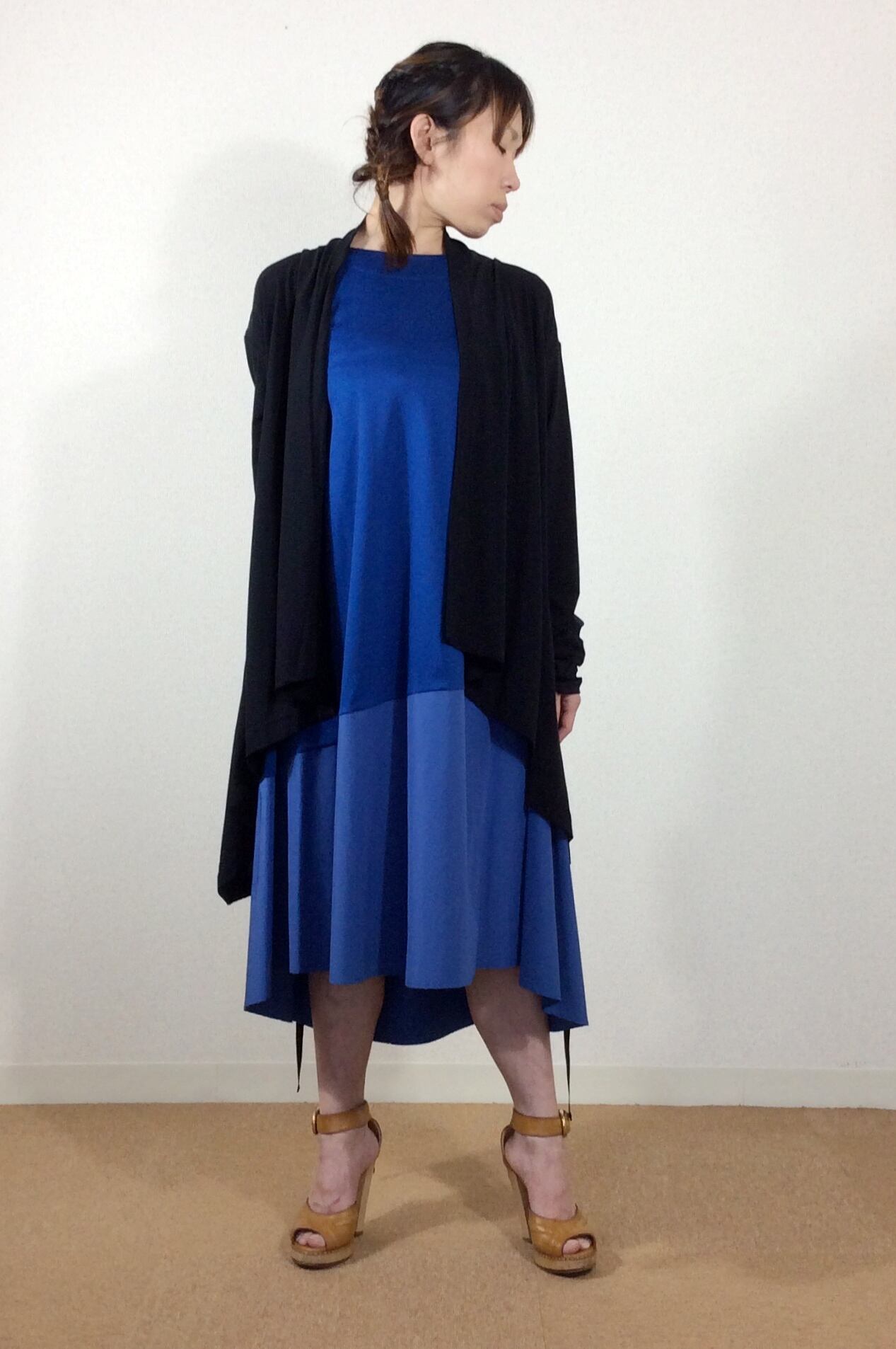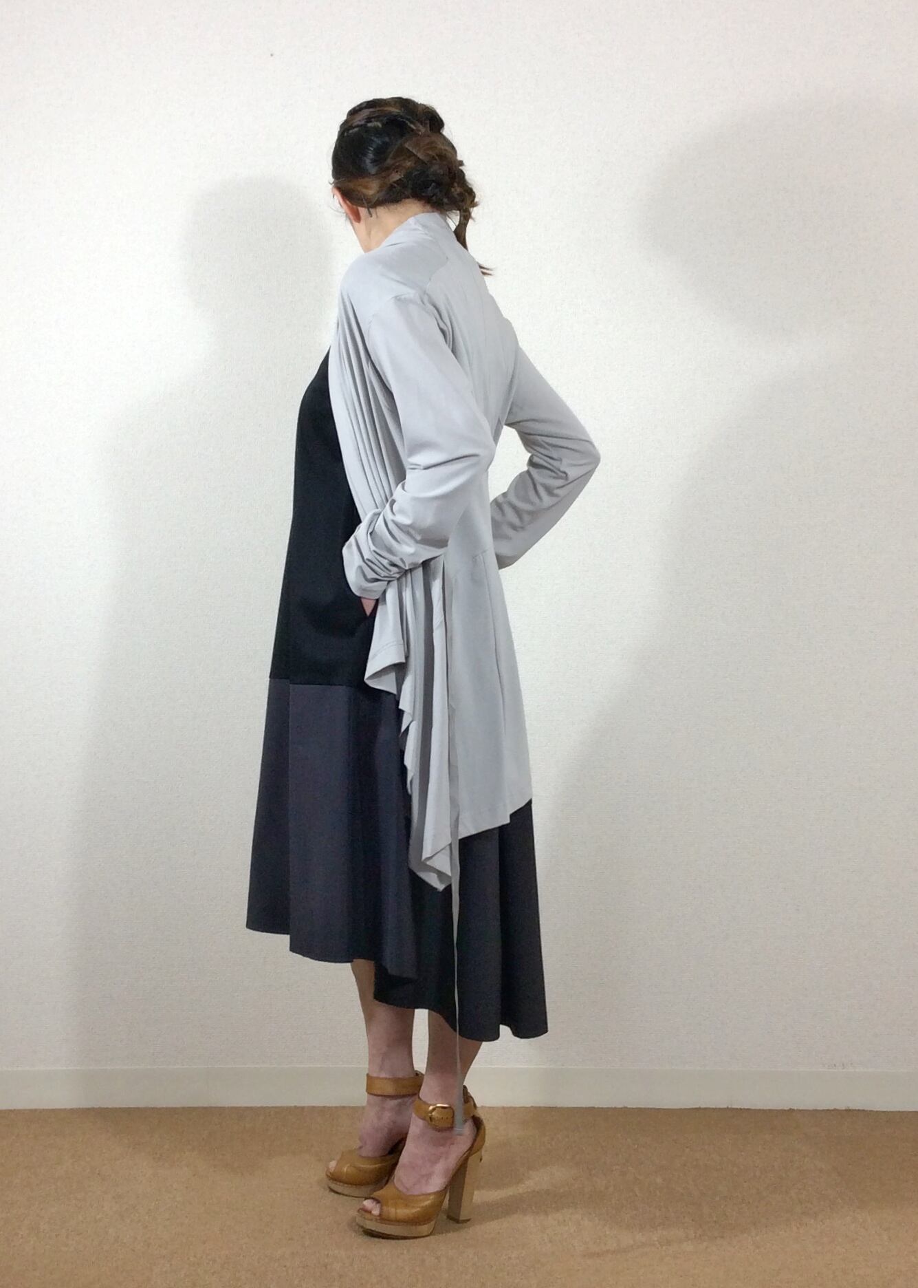 <Coordinate tips>生地をたっぷり使っているので、サテンテープで縛ると綺麗なドレープが。ウエストマークせず、着流すだけでも十分存在感のある素敵な羽織りものです。
