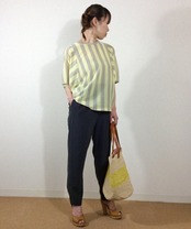 <Codordinate tips> 色々なトップスと合わせやすい万能パンツ。体の凹凸がない方なら、ピタッと細身のトップスでもきまりますし、チュニック丈や、ボリュームのあるトップスとも。軽いお素材菜緒で、バサッとしたロングワンピースの下にレギンス代わりとしてもお使いください。