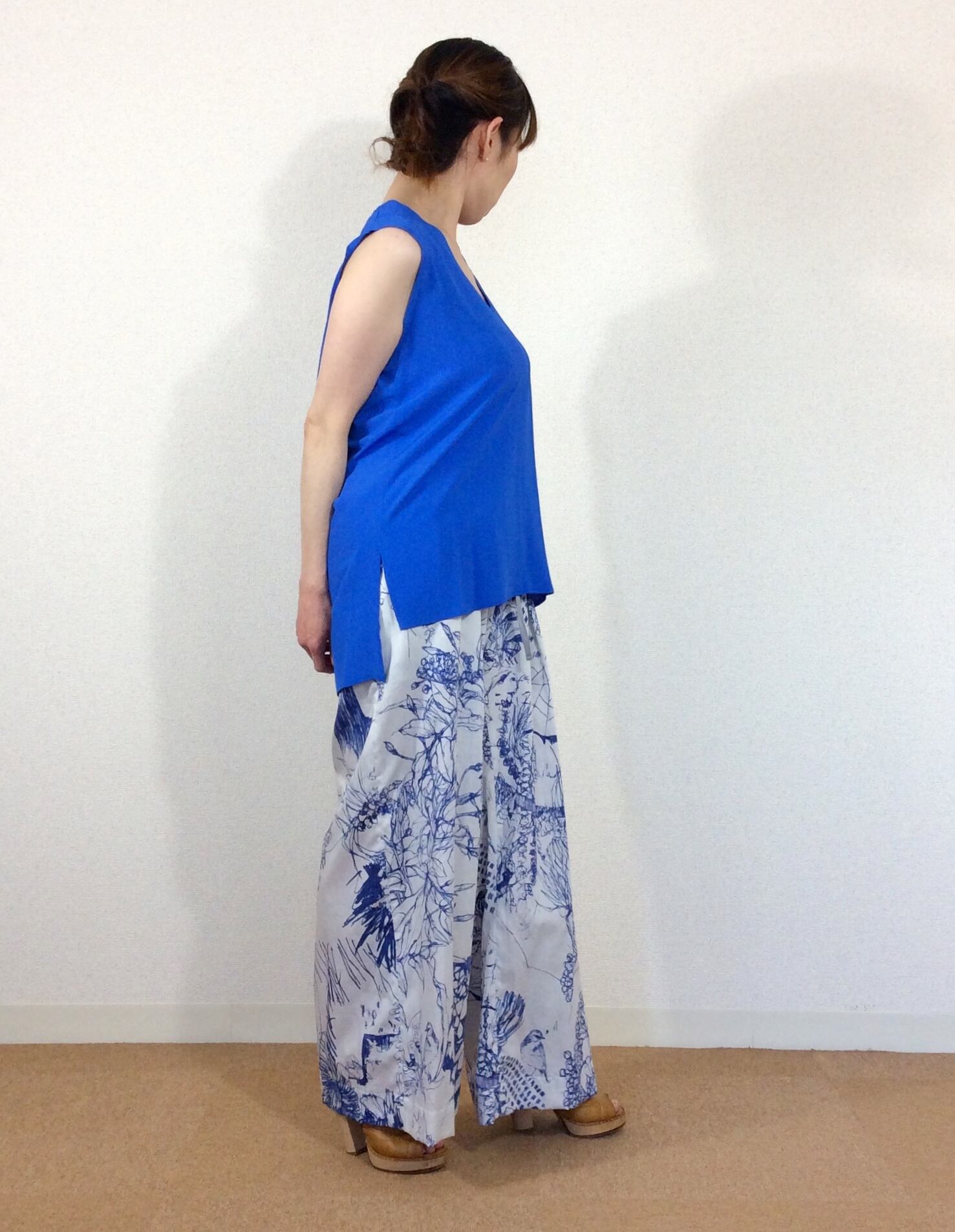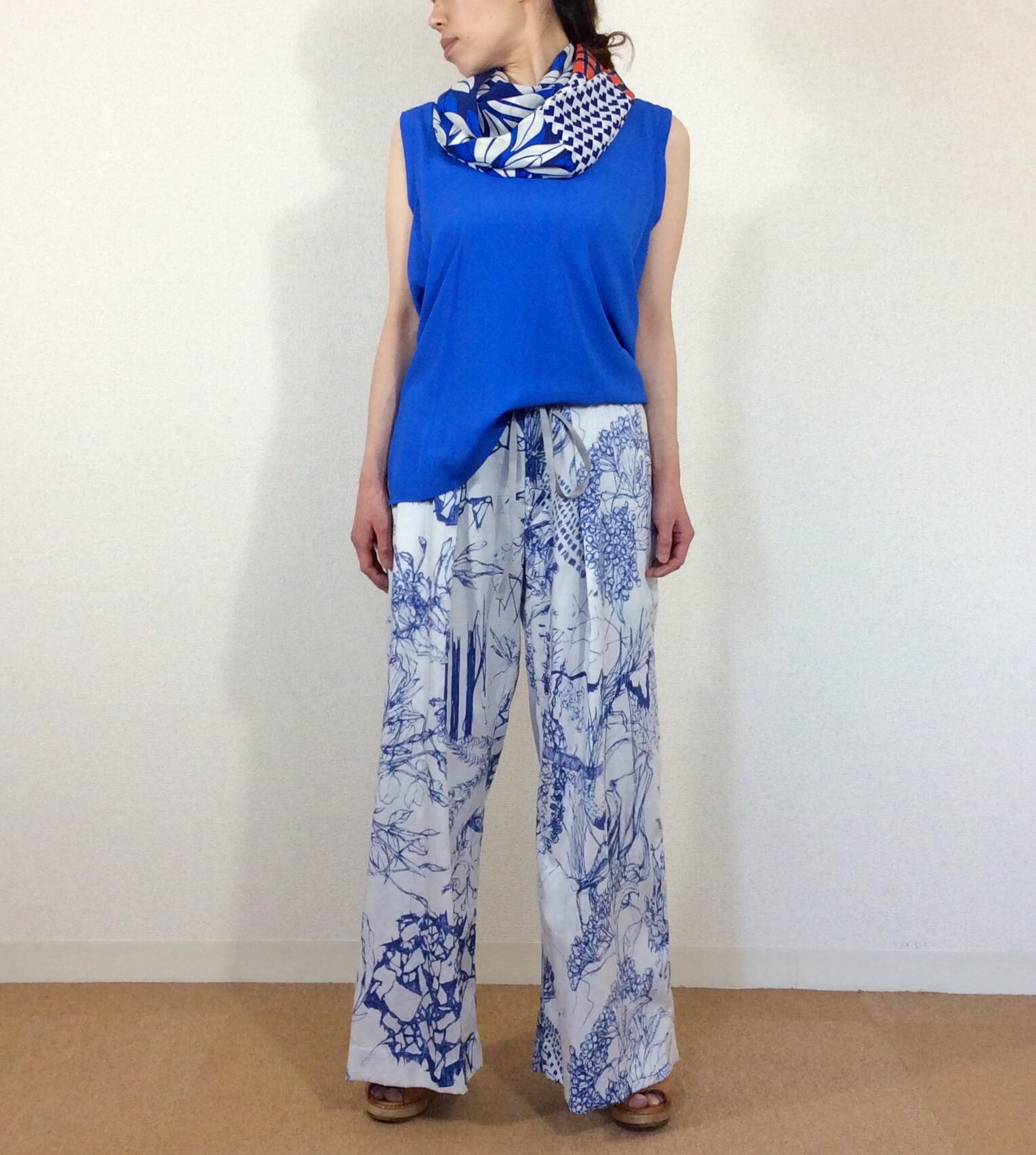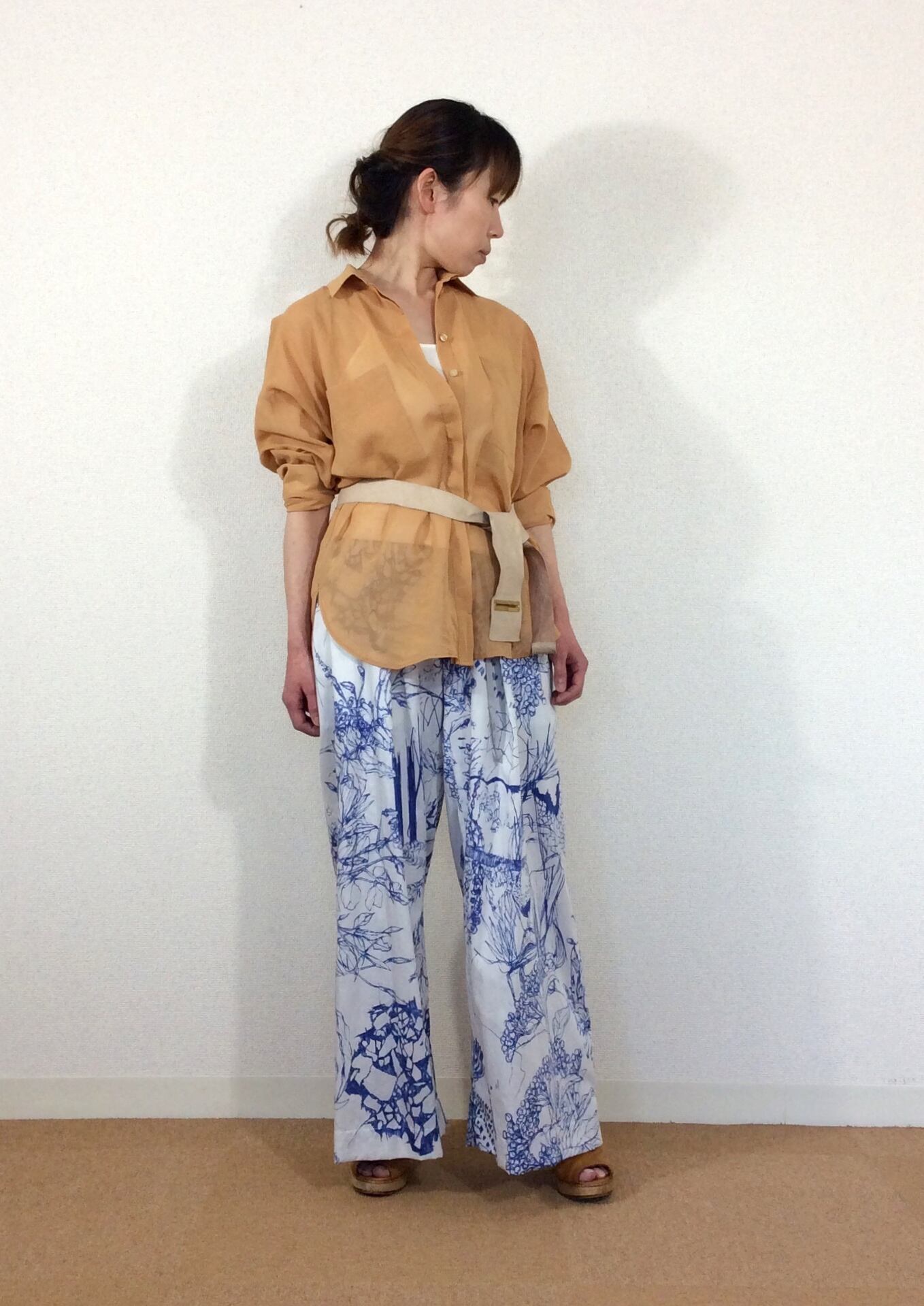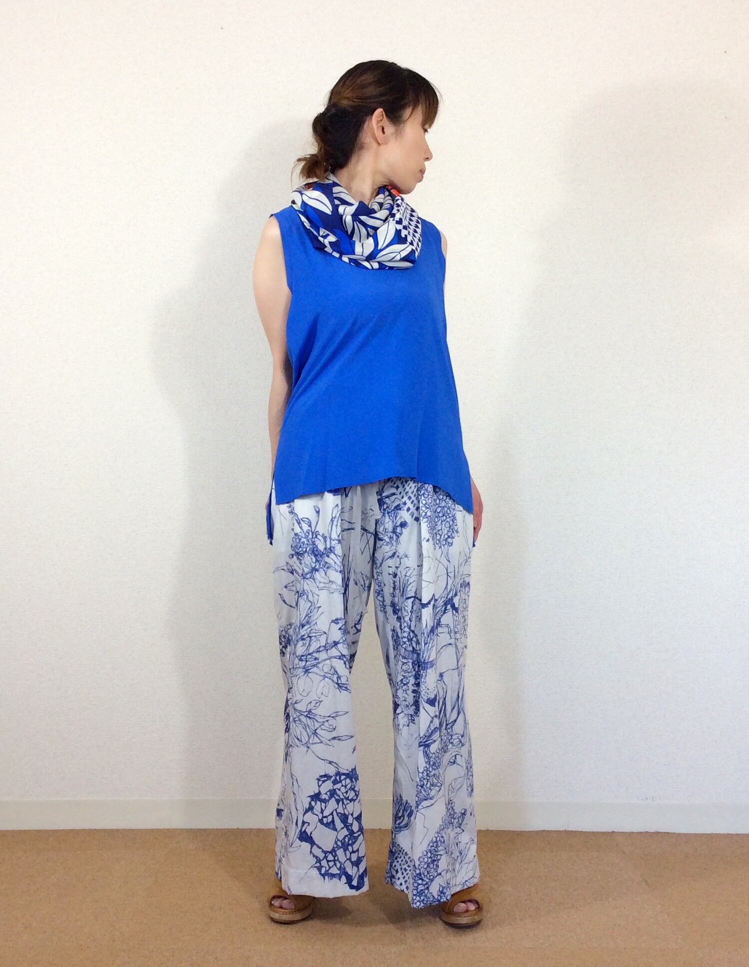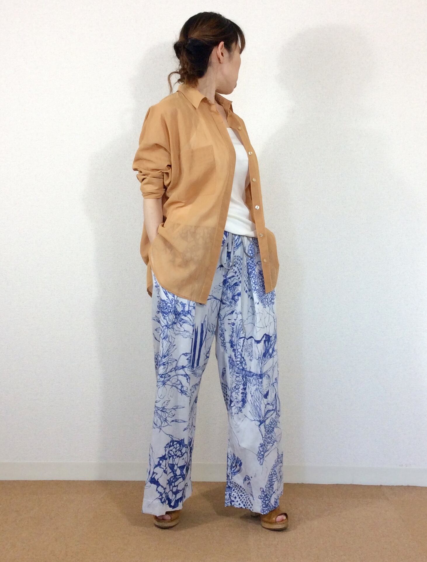 <Coordinate tips>素材にもお色にも清涼感があり、見た目にも涼し気なパンツ。透け感のあるトップスや明るい色で、爽やかに合わせても良いですし。腕を見せて軽い印象にすれば、ブラックとも。