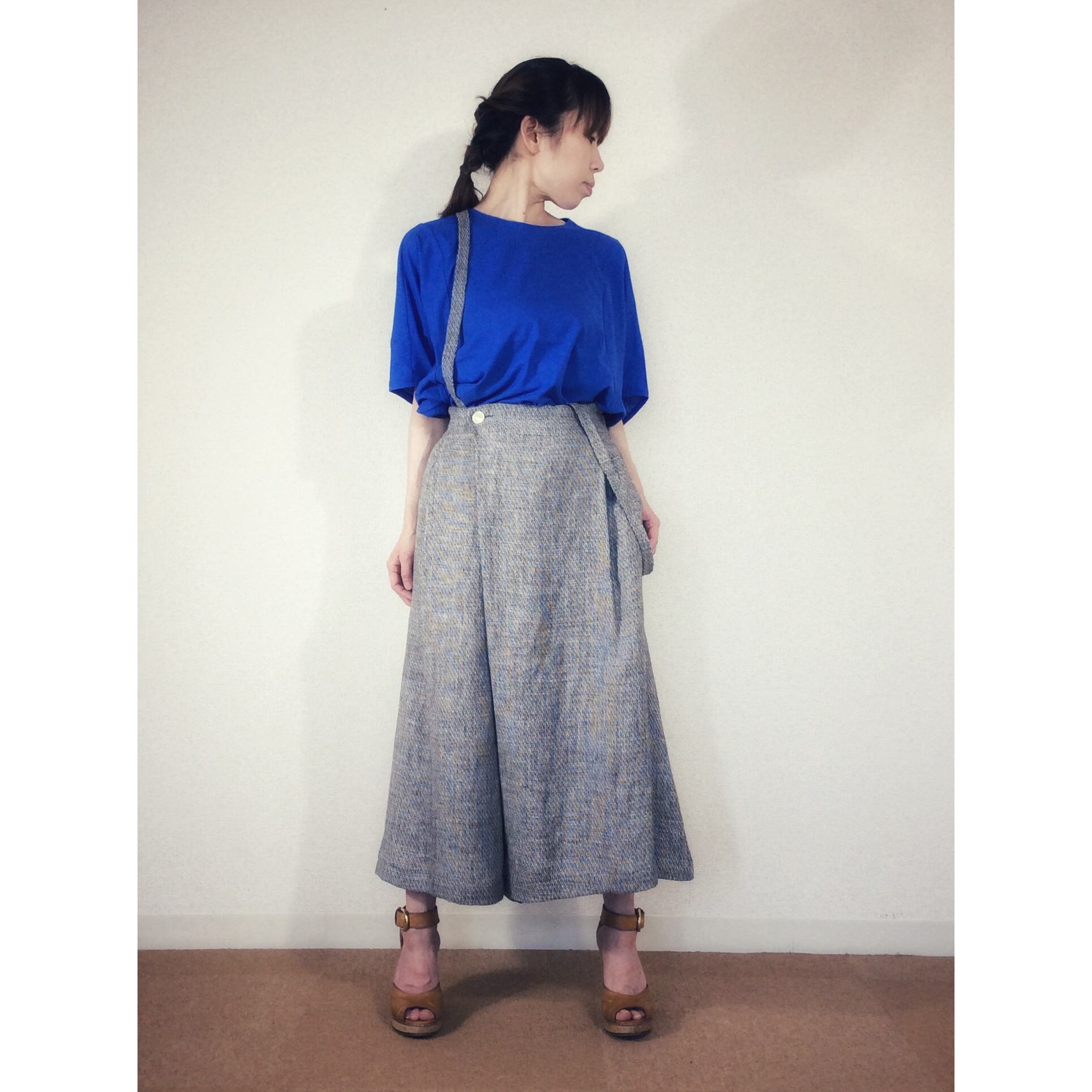 <Coordinate Tips>着丈の長さも絶妙。色々なボトム、様々な体系のお客様にも合うと思います。小柄な方でしたら、スカートやくるぶしが見えるガウチョやキュロッドが、バランスが良くお召しいただけます。
