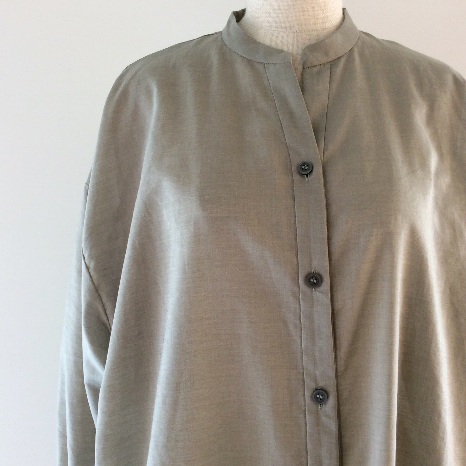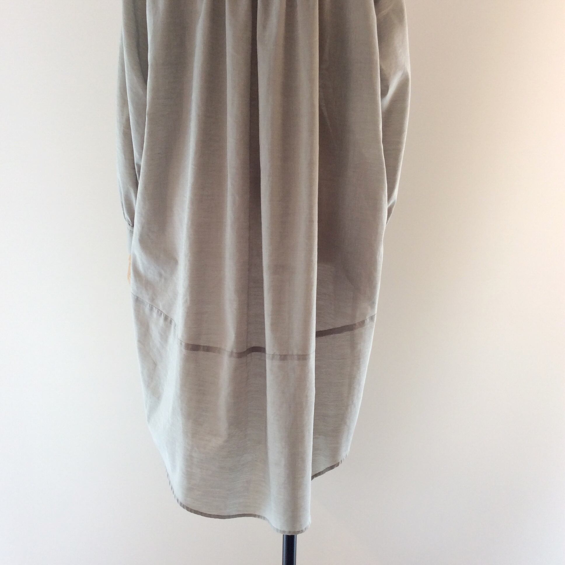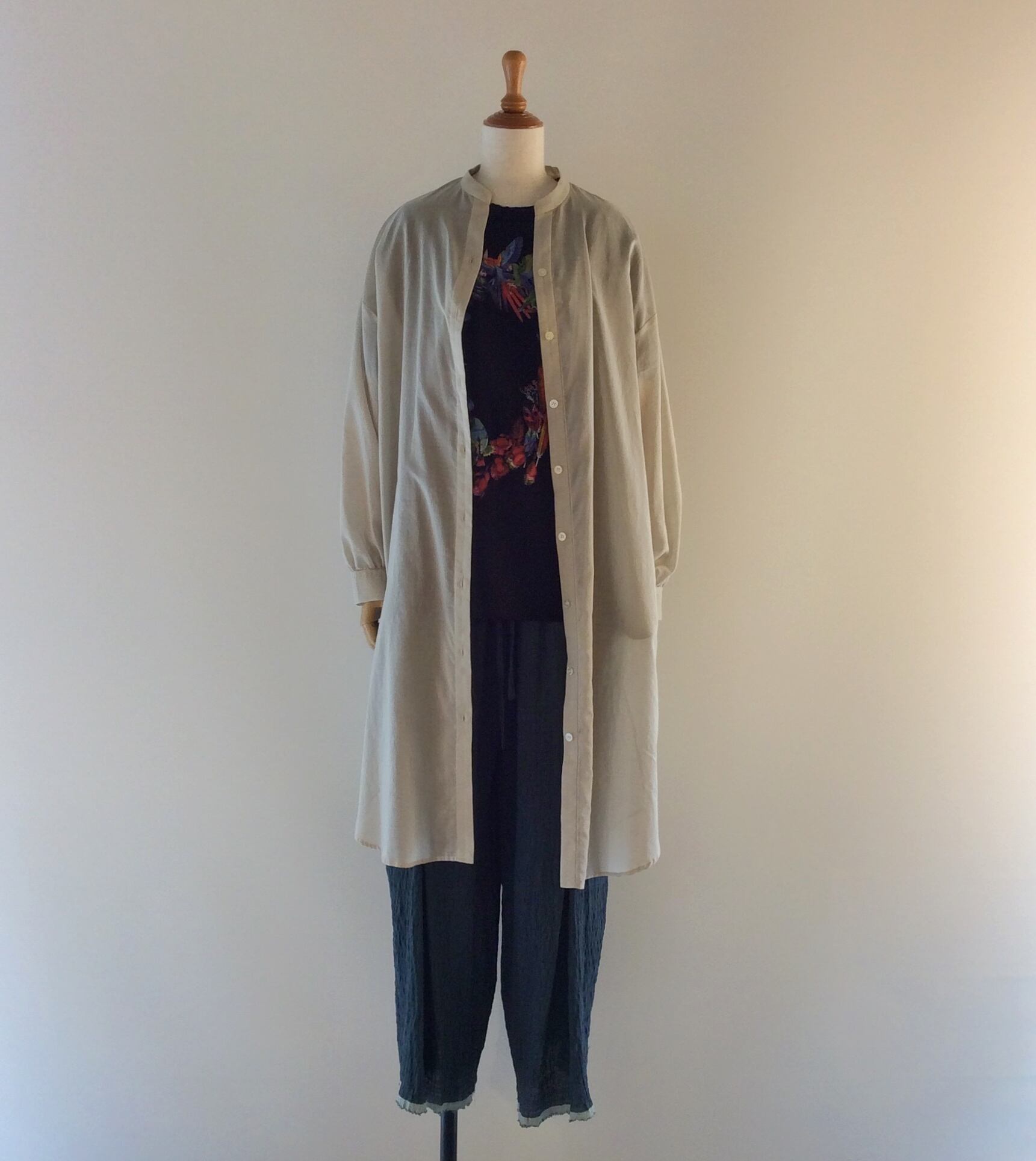 <Design Detail> 透け感がありチュニックブラウスというよりは、羽織りで使うのがお勧めなボタンロングシャツ。