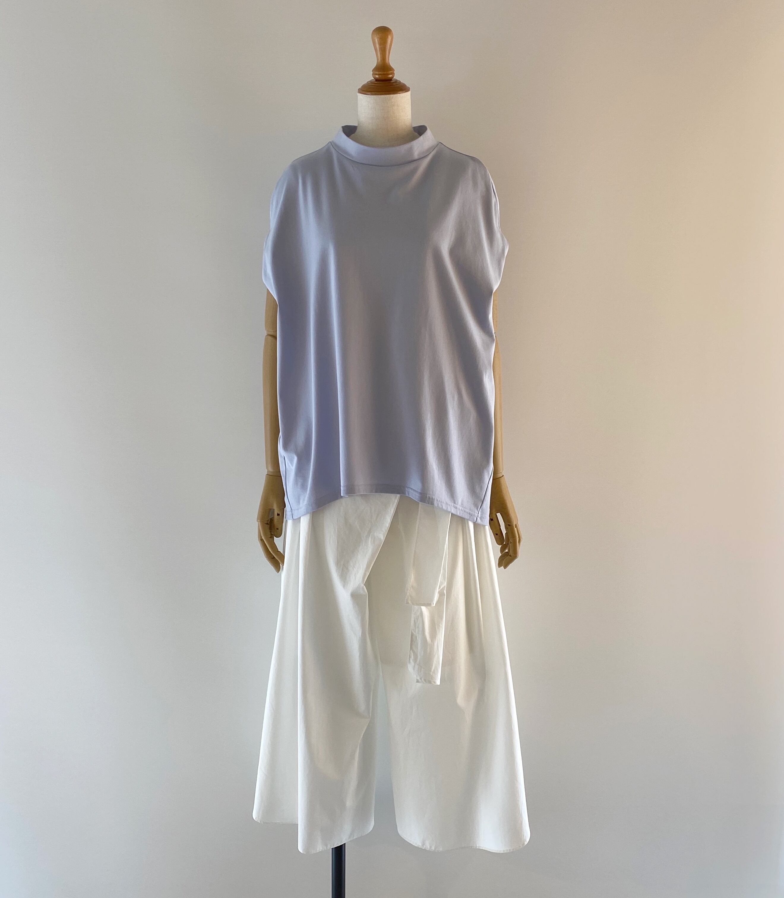 <Coordinate tips>まるみのあるデザインですが、裾にかけて細くなる小判のような形なので、フレアスカート、細身のパンツ、キュロットといった様々なボトムに合いますよ。白、黒はもちろん、ニュアンスのある、ライトブルーやグレーもお勧めですよ。