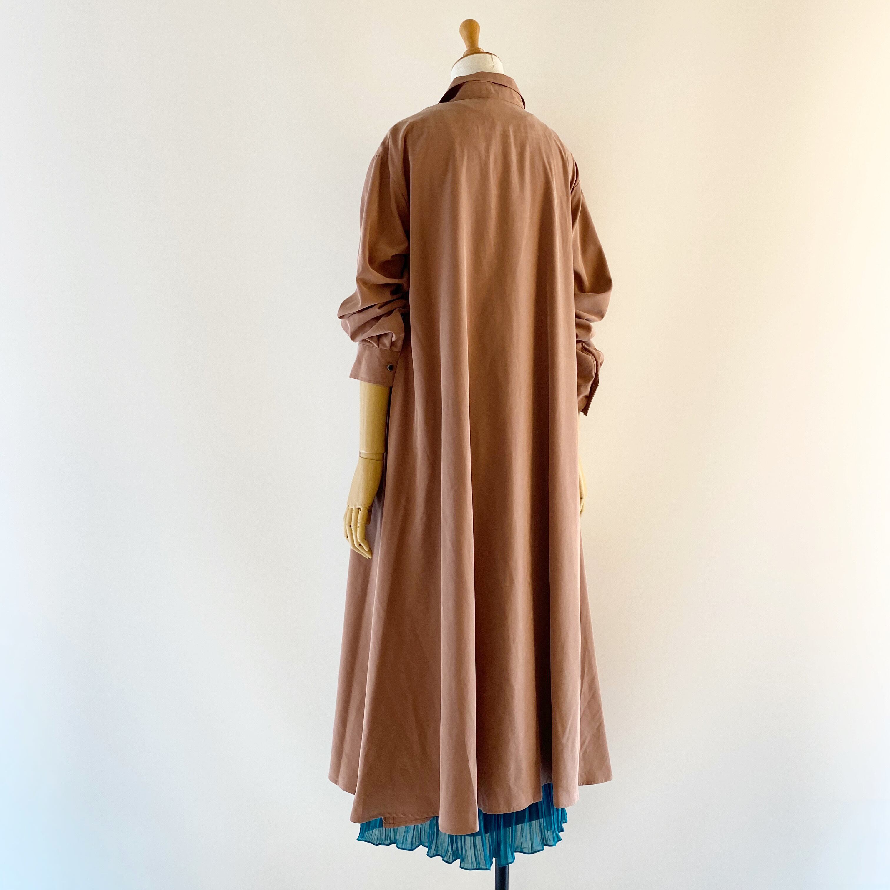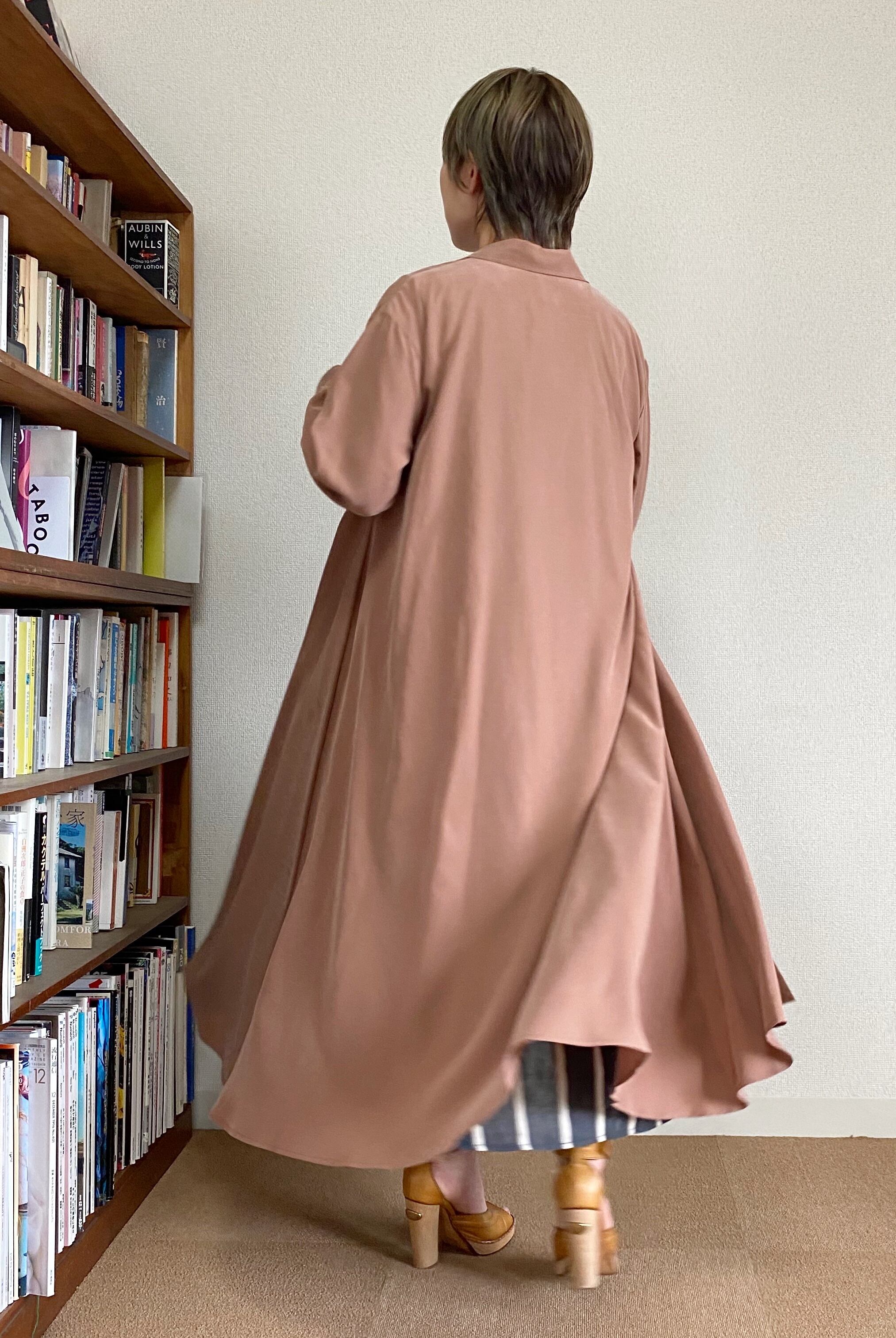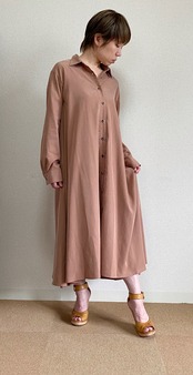 <Coordinate tips> ワンピースとしてはもちろん、初秋の羽織としてもお勧めな1枚。細身のパンツ、少し短めなら太目のパンツとのコーデもバランスが良いですよ。