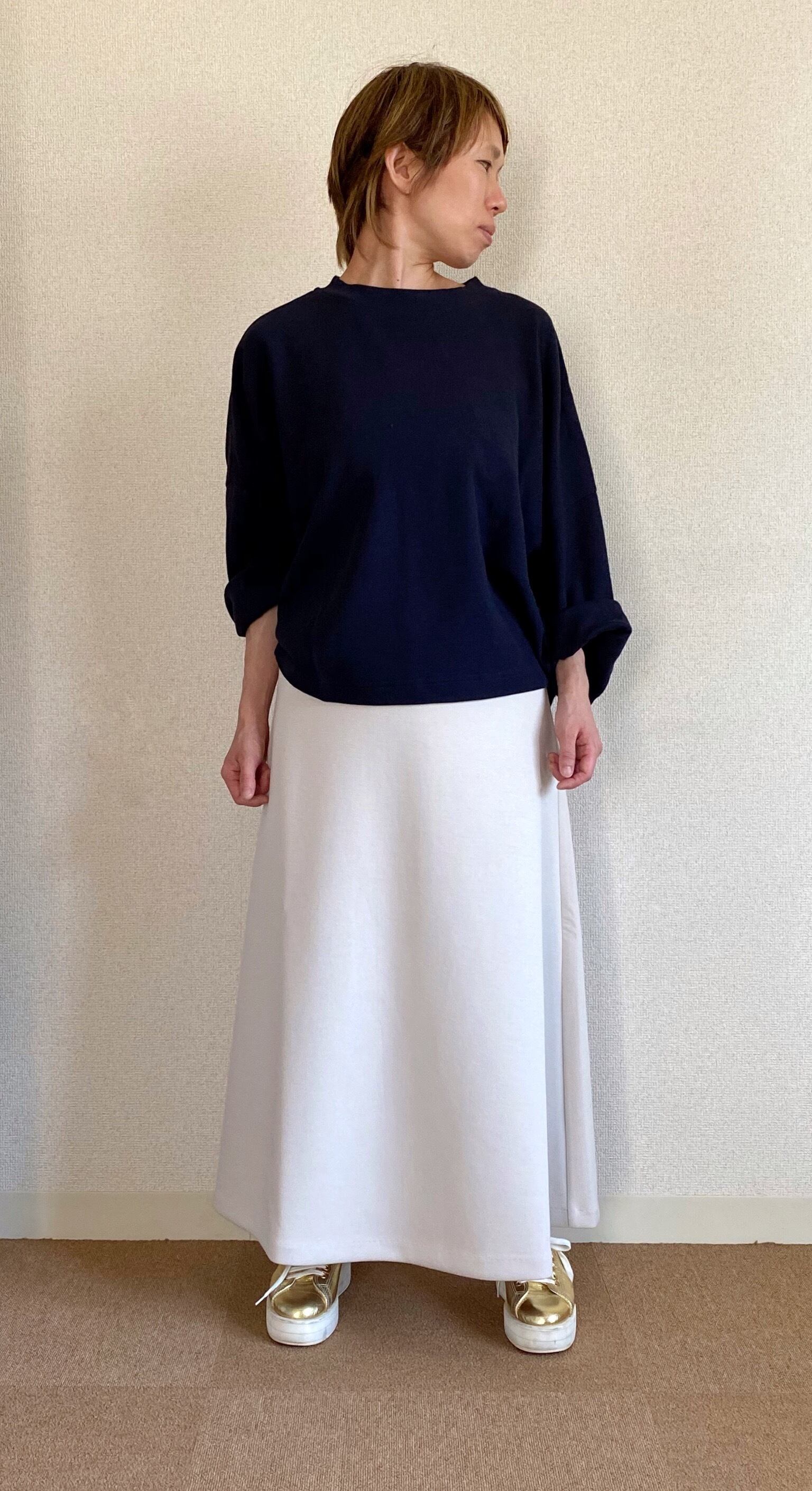 スカートも同じくお家で洗濯可。無駄な装飾は無いシンプルなロングAラインスカート。とにかくシルエットが綺麗。