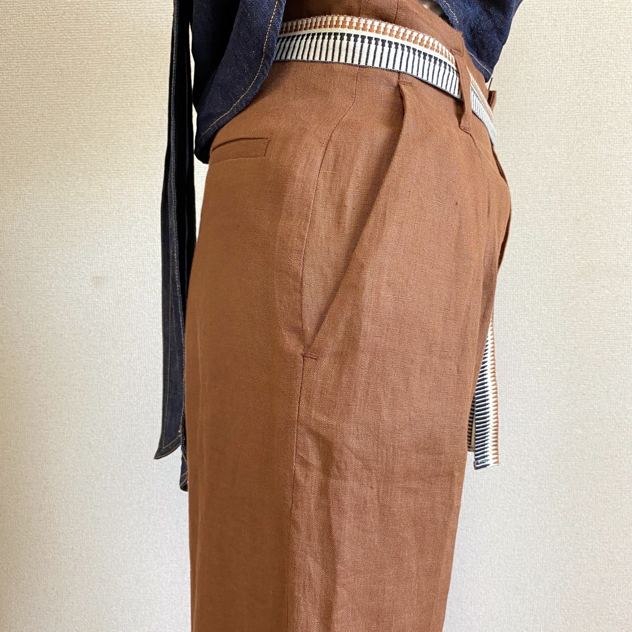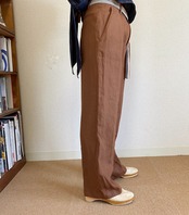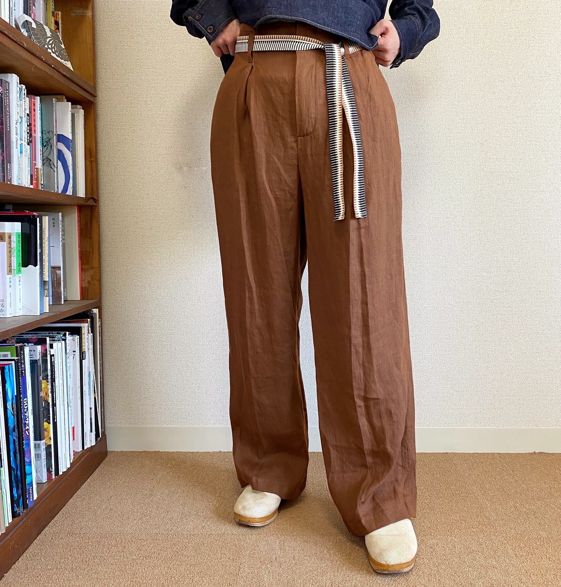 Pants: ベルトが付いた1タックの太目ストレートパンツ。麻の風合いもとても柔らかで、なびく雰囲気です。