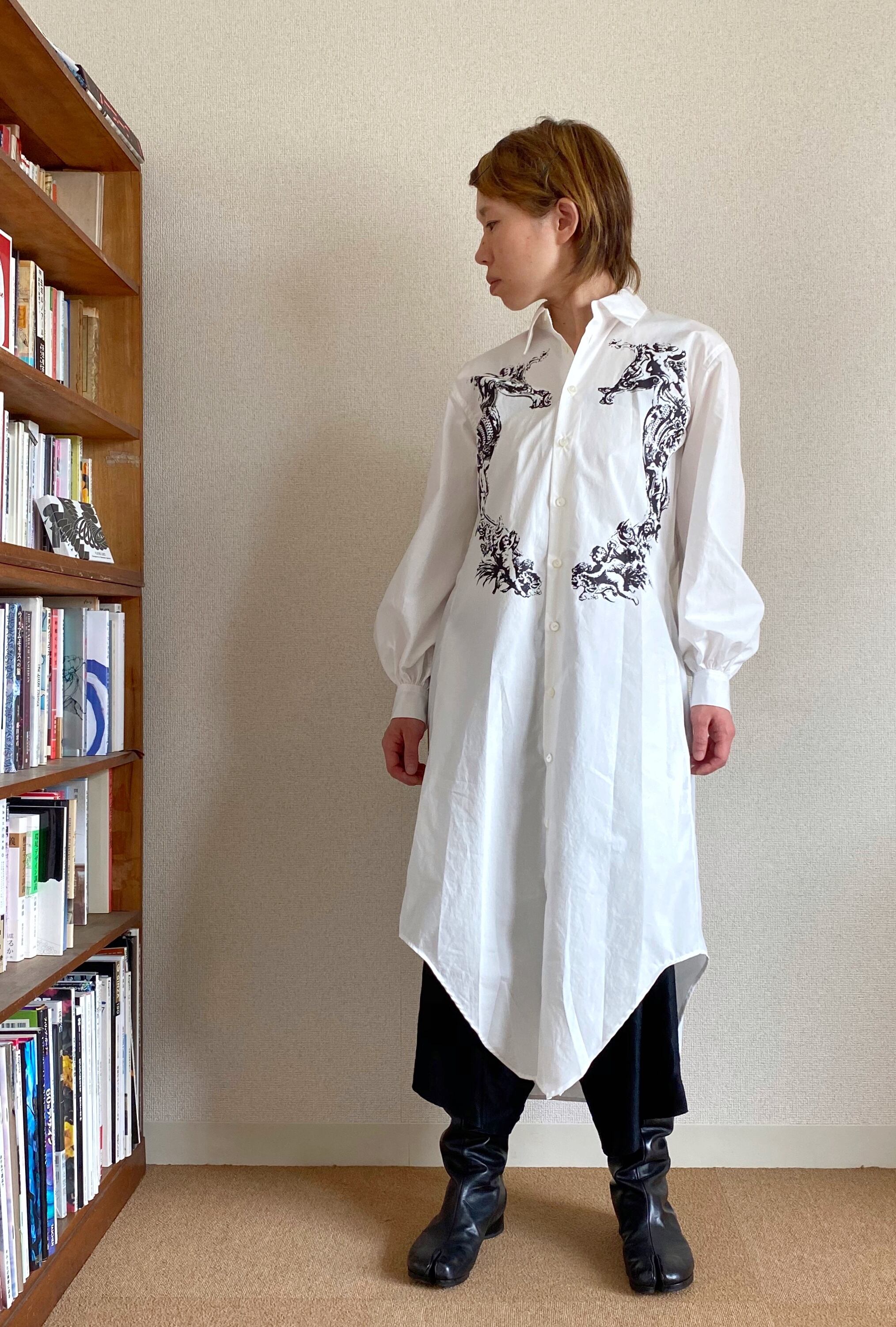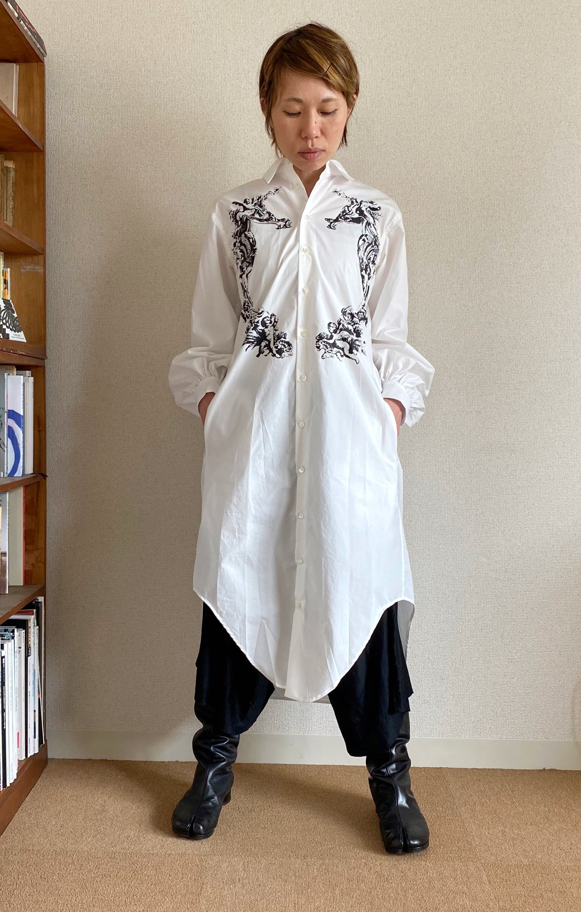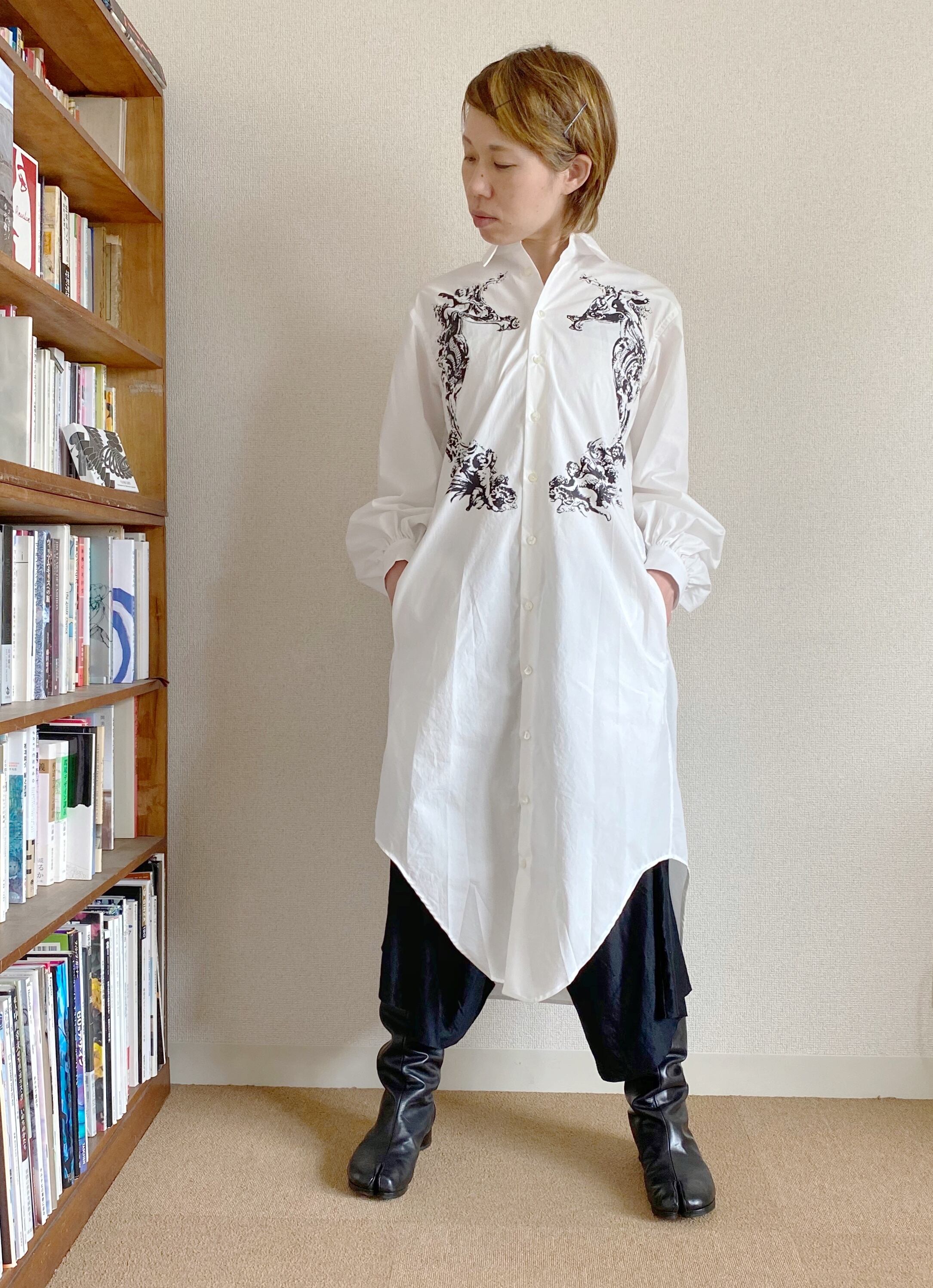 <Design Detail> サイドがクッと上がったコクーンシルエットのシャツワンピース。