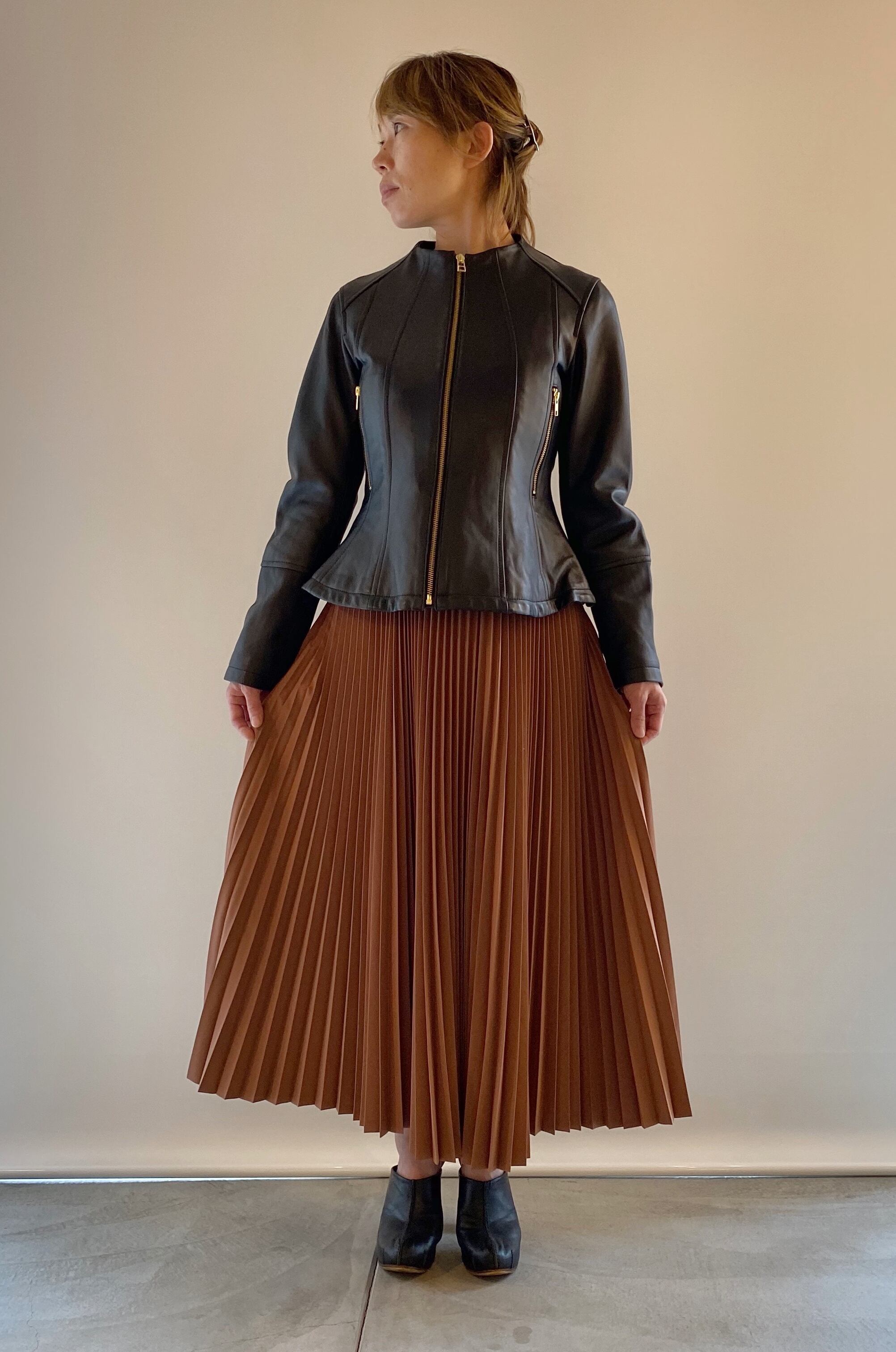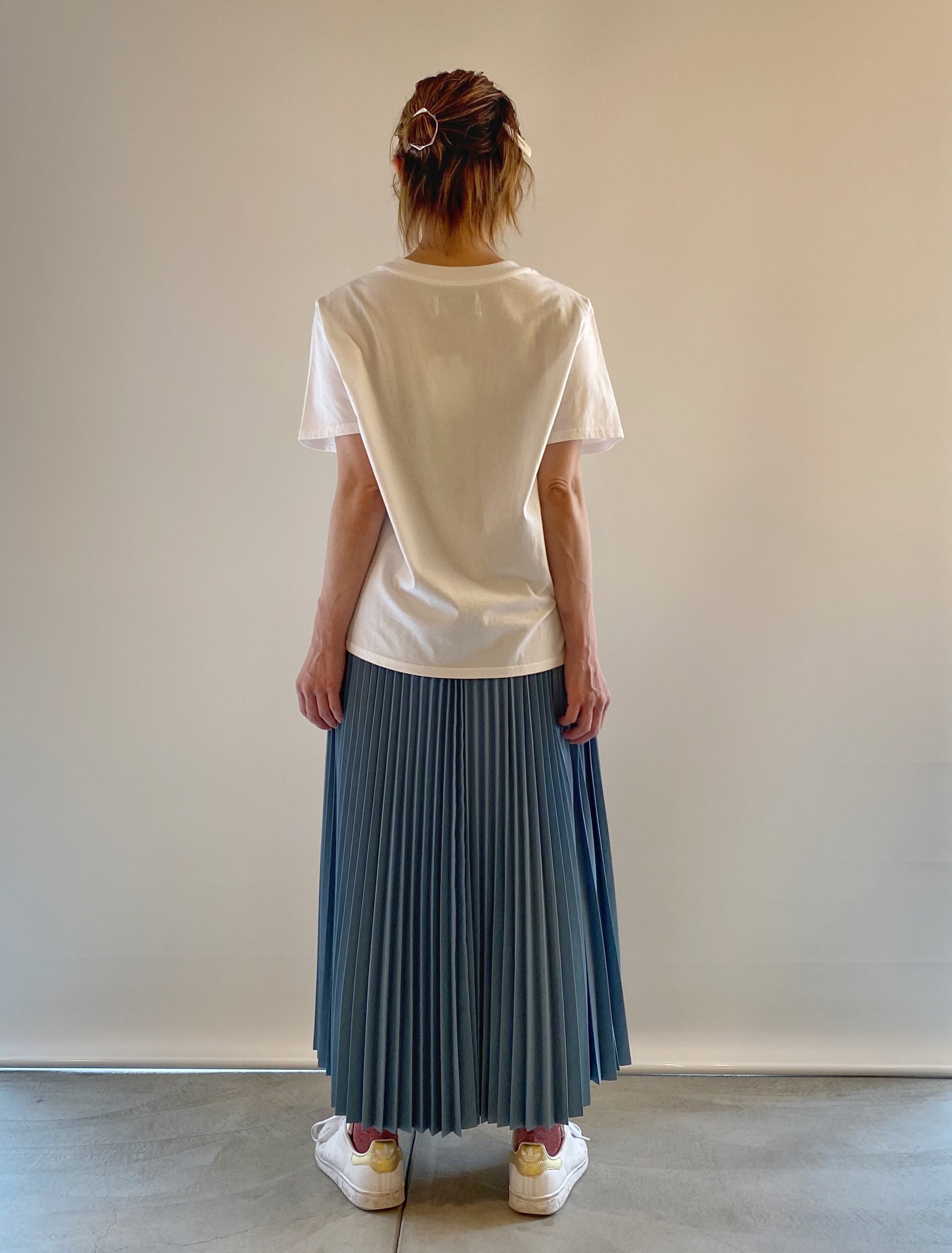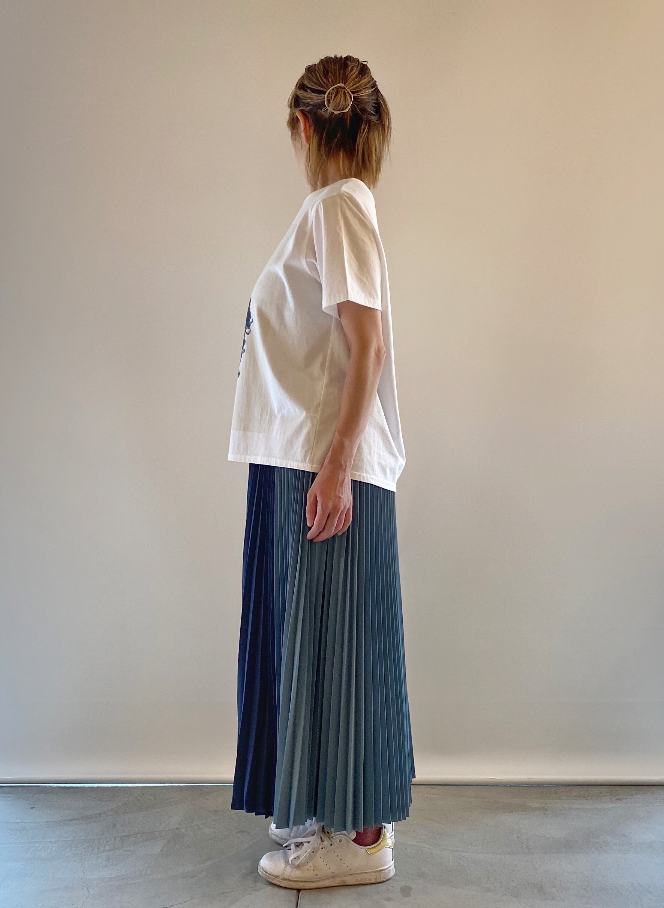 <Coordinate Tips>サブのお色を正面に持ってくると、少し主張があって難しく感じるかもしれませんが、横にずらしたり一方のお色を10%分だけ正面に見せたりすると、コンサバ定番アイテムのプリーツスカートがとてもこなれたアイテムに! どちらのお色もとっても雰囲気のあるお色なので、晩夏は白のシンプルなTシャツを合わせるだけでお洒落に見えますし、秋冬は、サブのお色のトップスやニットとコーデすれば間違えないですよ。