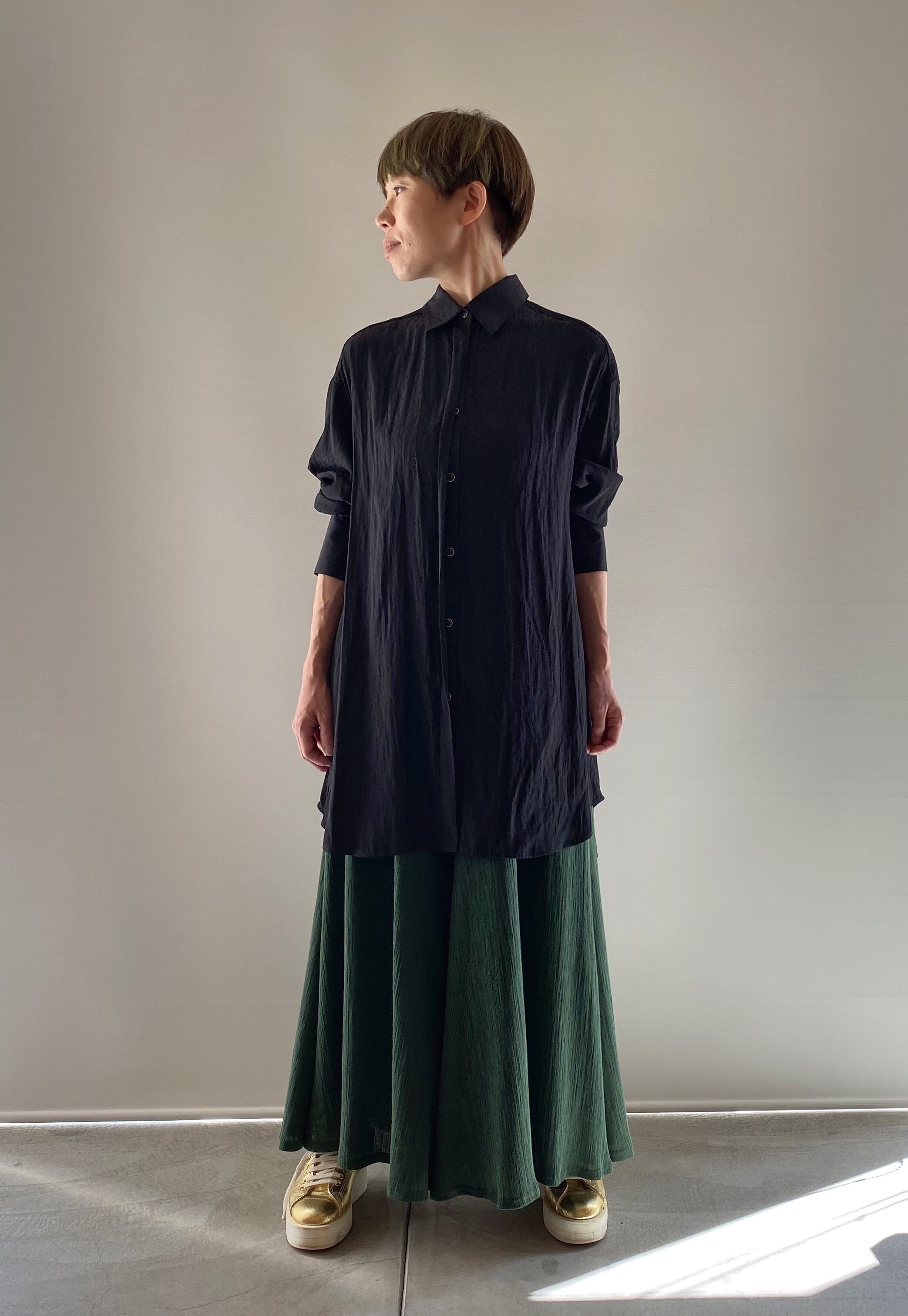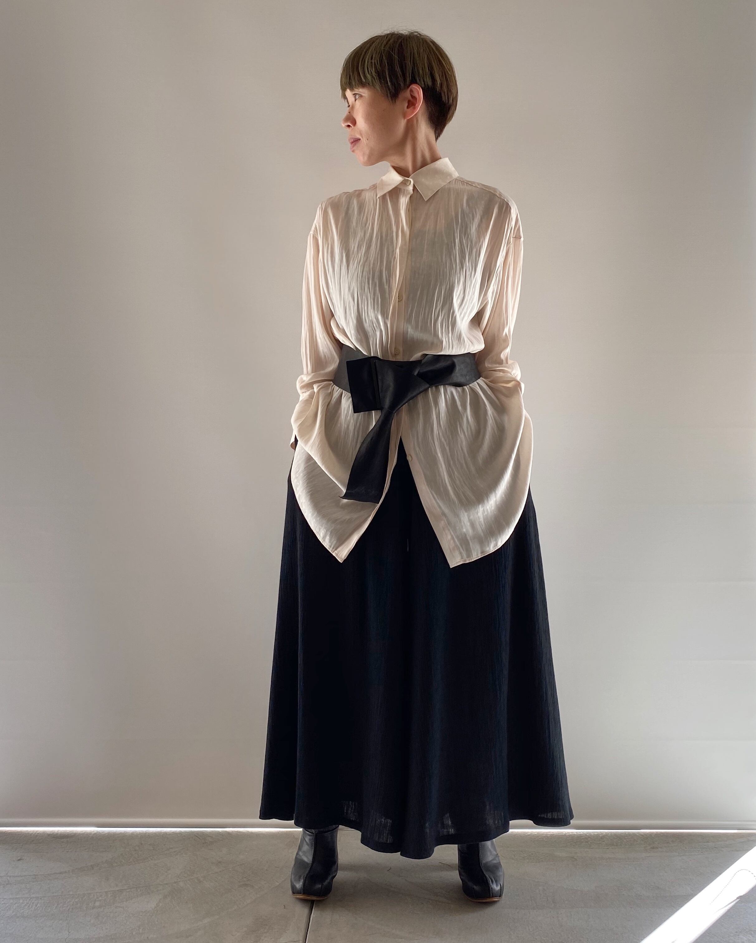 <Design Detail>新感覚のちりめん素材。ジャージーなので伸縮もありますし、肌離れが良く涼しい。シワも気になりません。