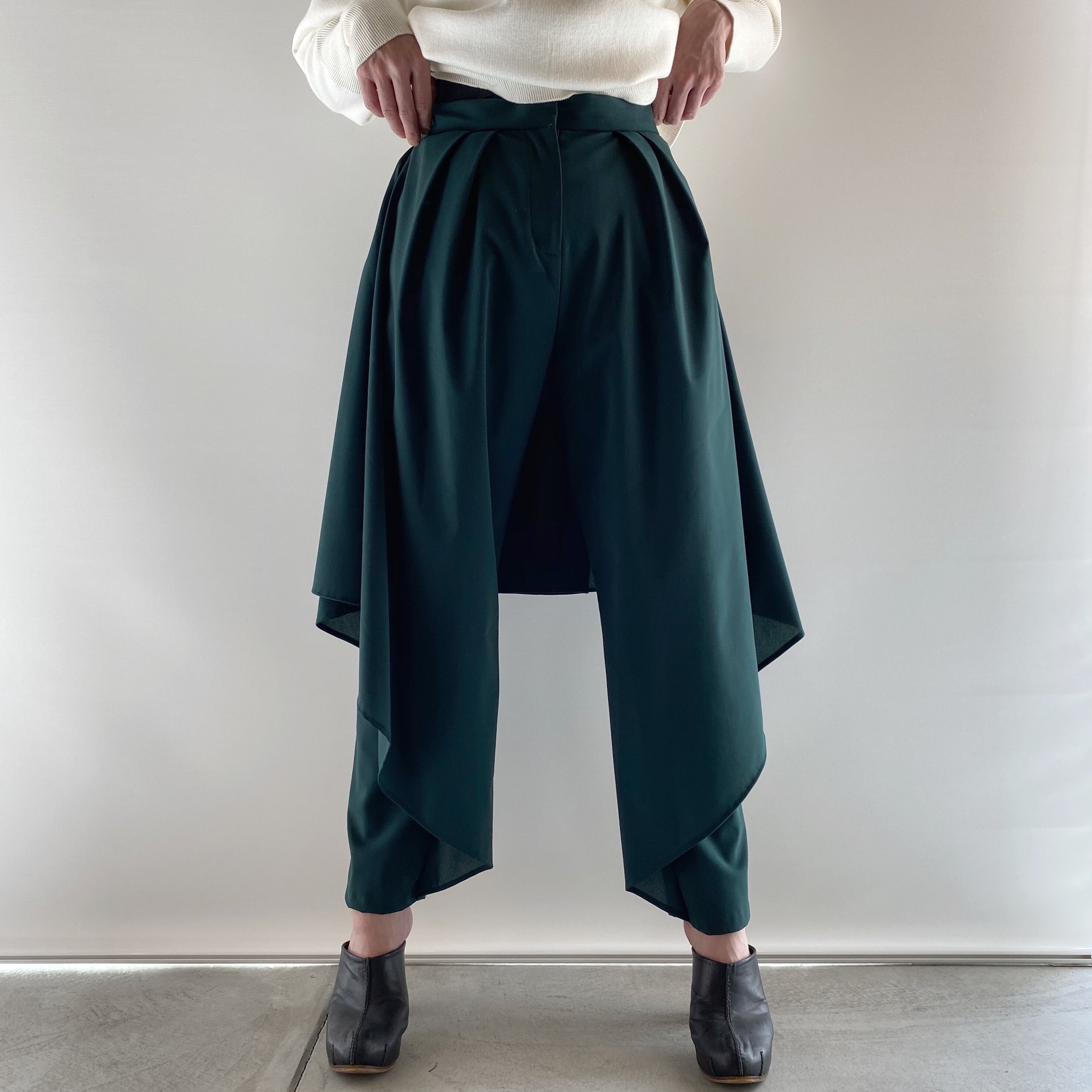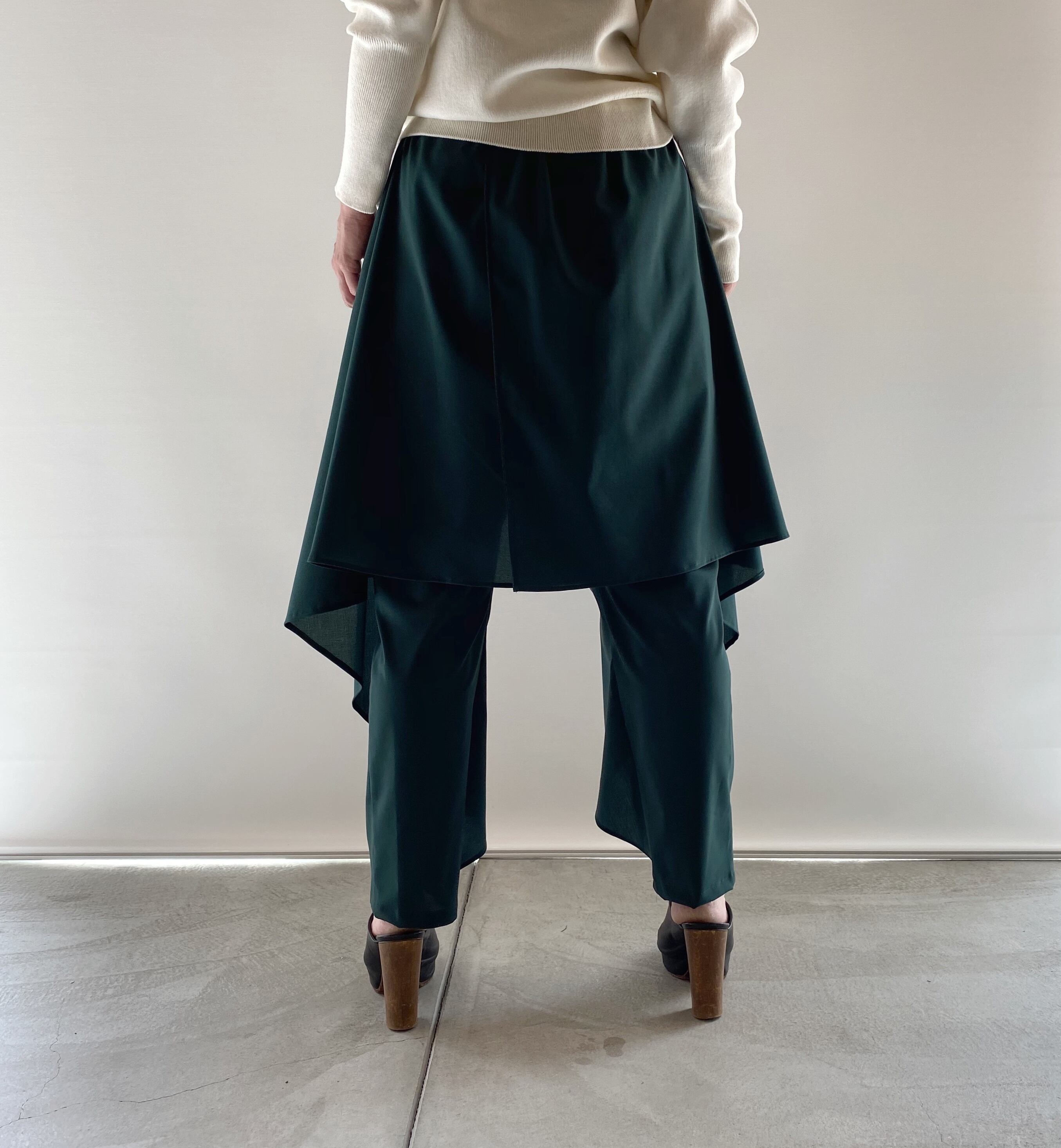 ウール混の生地は、上質で綺麗に落ちる生地感で、とにかくスカートの丈とパンツのシルエットのバランスが高いパンツです。