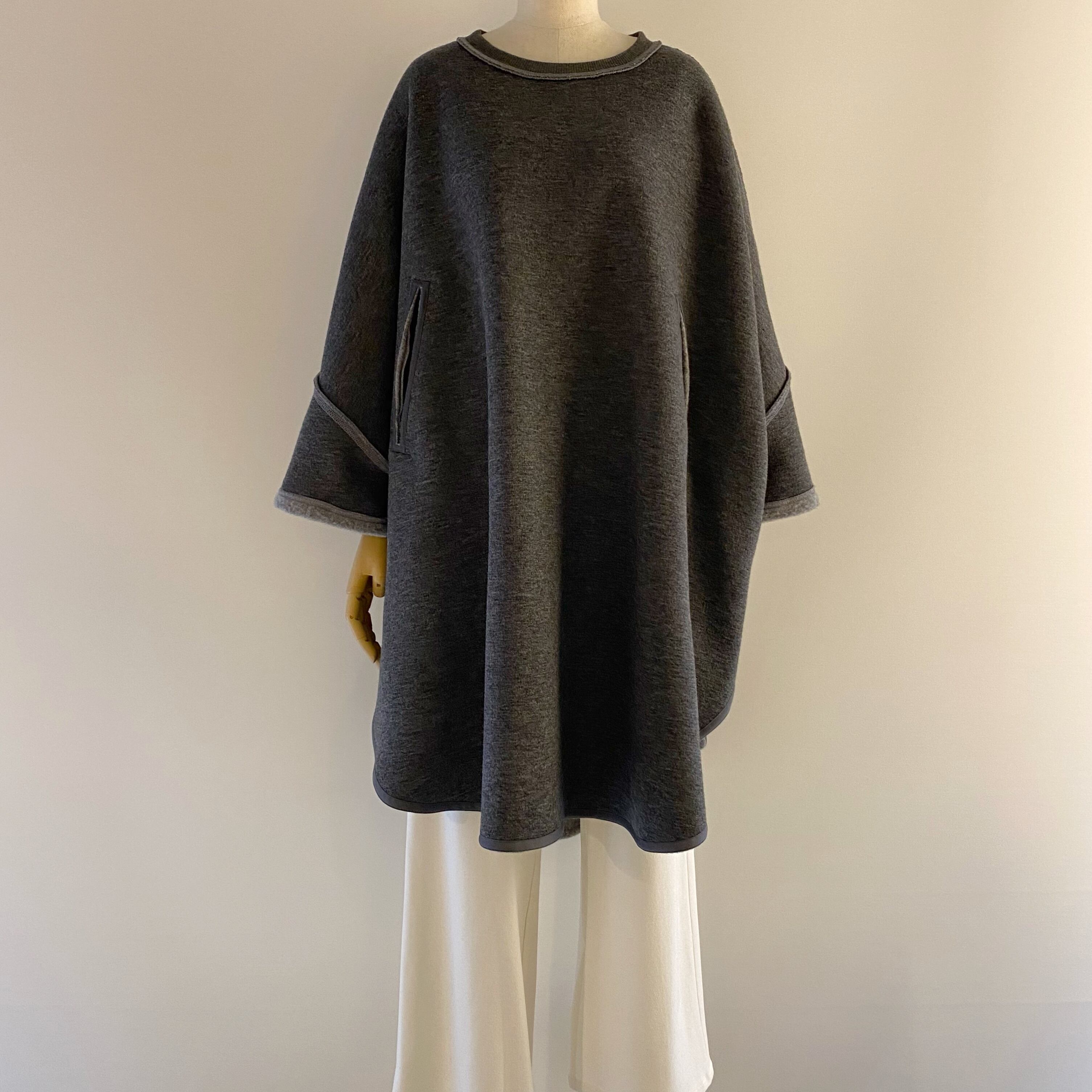 <Design Detail>表は柔らかくふくらみのあるウールの紡毛糸で裏面は、さらっと綿タッチな肌ざわりの糸を組み合わせたリバーシブル素材。 裏側で着るとステッチミシンがよいアクセントに。