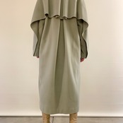 一見した形や色使いは、とても日本人的な雰囲気を感じるのですが、実際に着ると思いのほか華奢に見せるテクニックに、パリの空気も感じます。