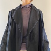 たっぷりした分量の割に軽さがあり、風を通さないシャンブレー素材は、端境期の羽織りとしてお勧め。