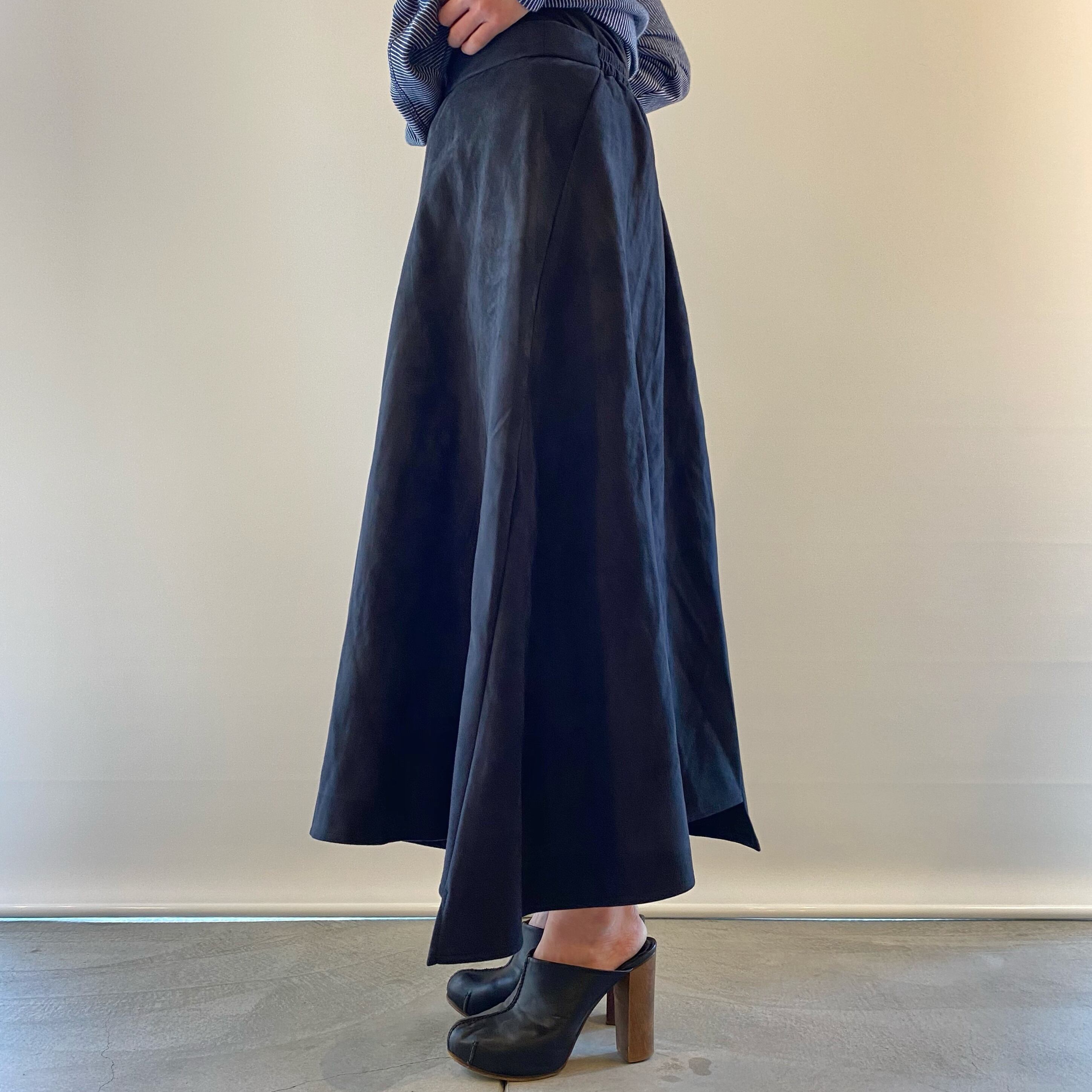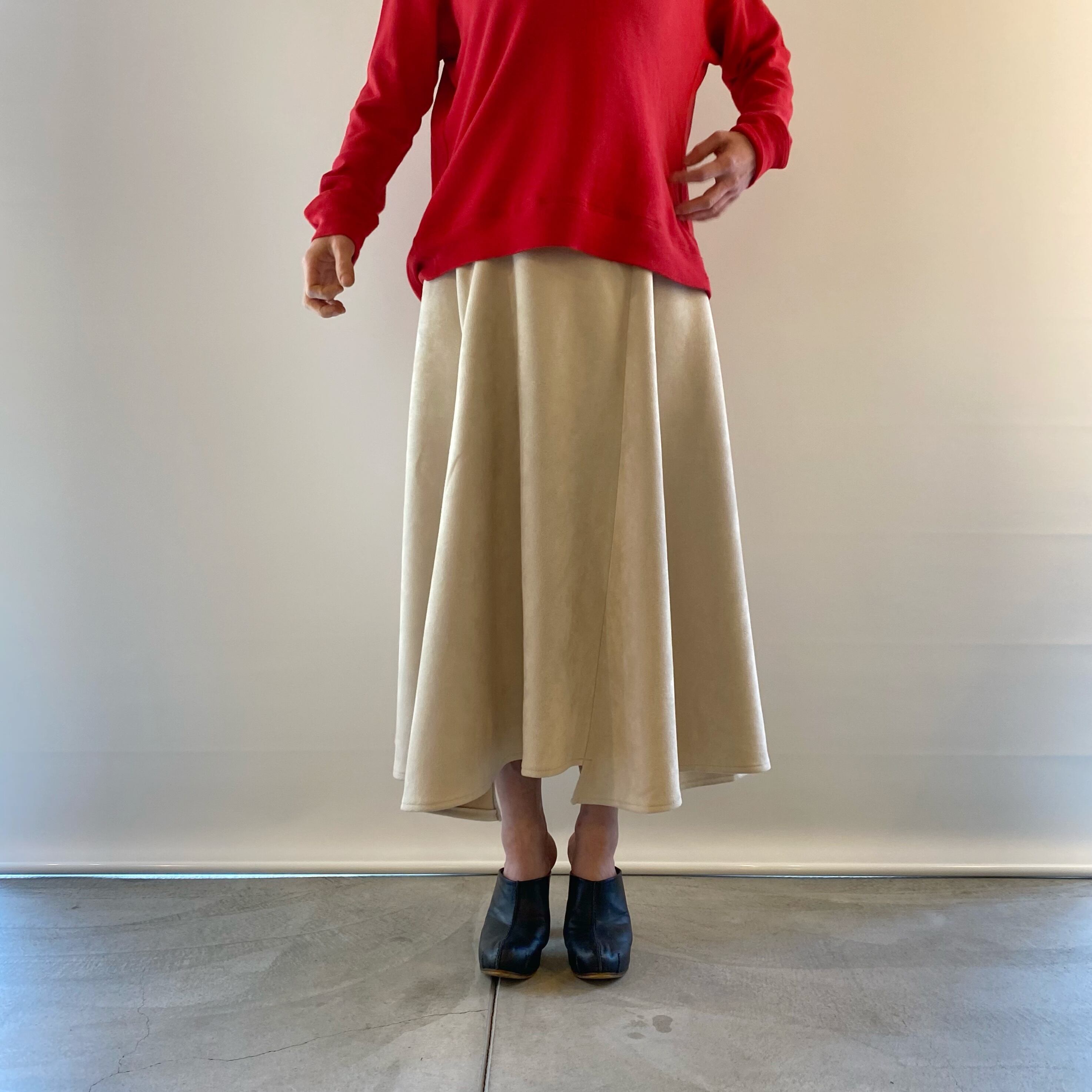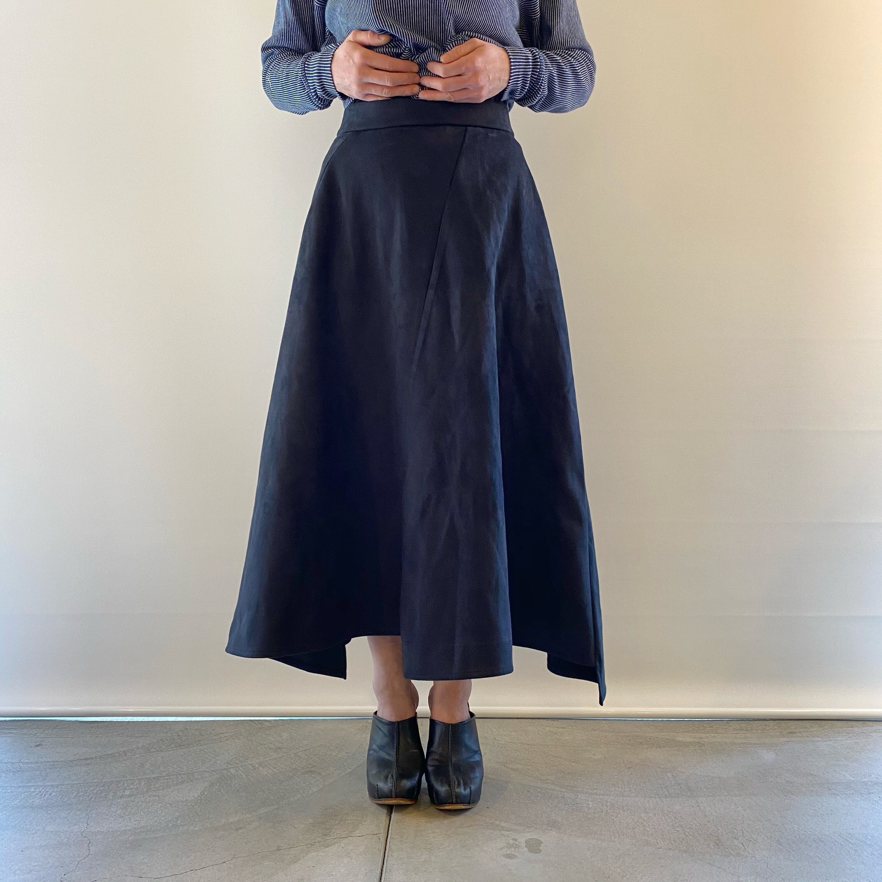 <Design Detail>アシンメトリーな裾周りと、ムートン風な生地感が、大人なピリッとスパイスの効いた女性の雰囲気を演出。
