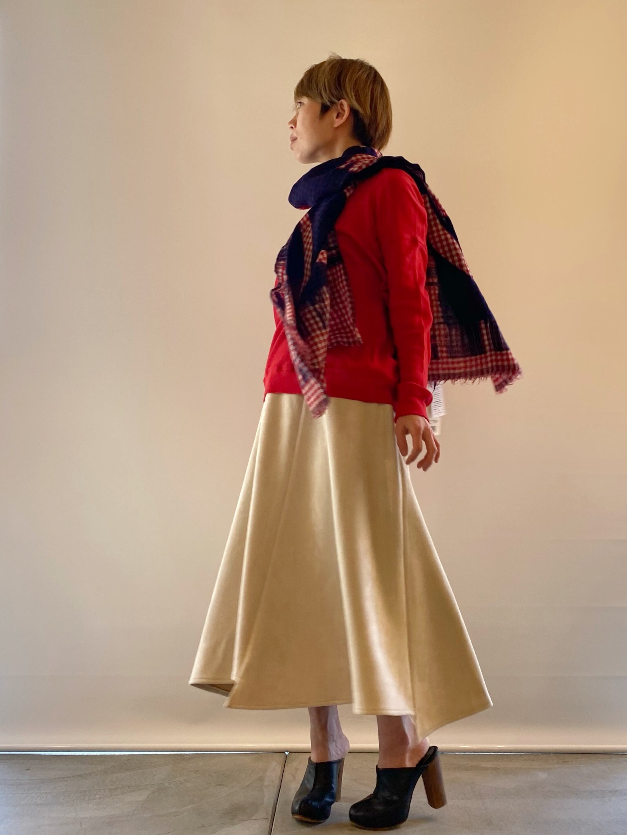 ローゲージのショートニットやカーディガンとの甘辛コーデもお勧めです!