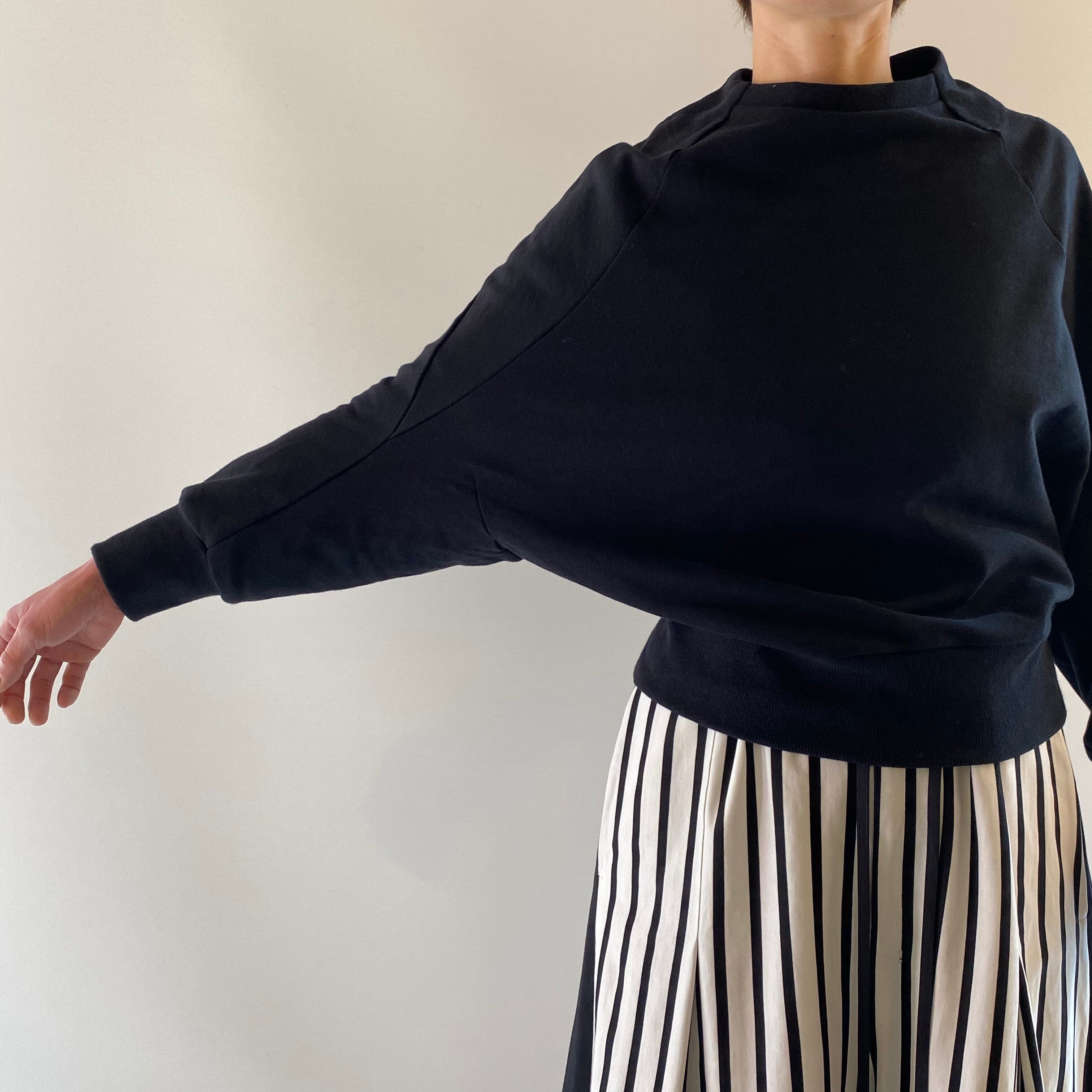 身幅ゆったりでも、ラグラン袖で肩が華奢に