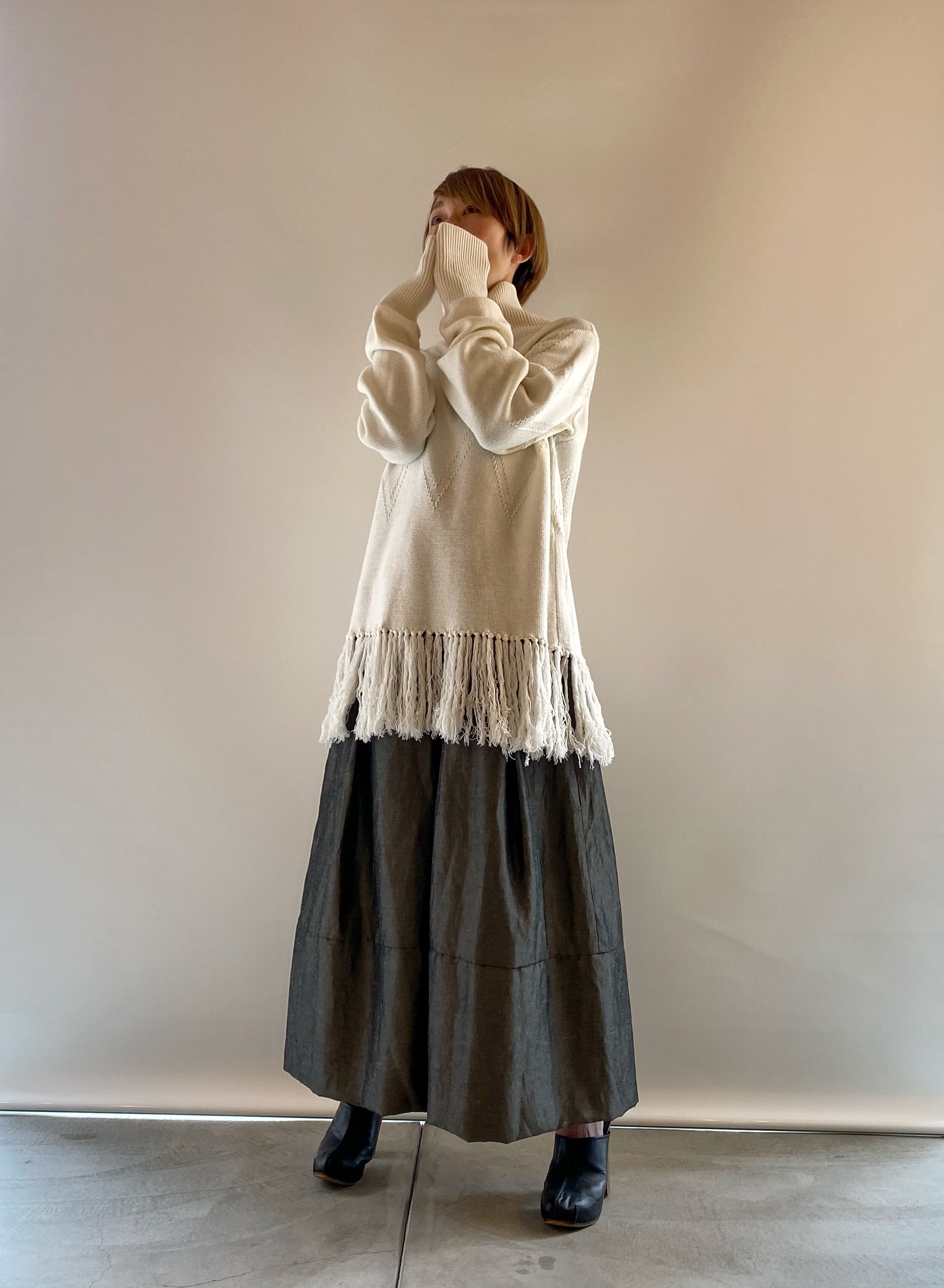 <Coordinate tips> プルーバーやニットでカジュアルに着ても、サテンブラウスやジャケットとカッコ良く合わせるのもイイ。