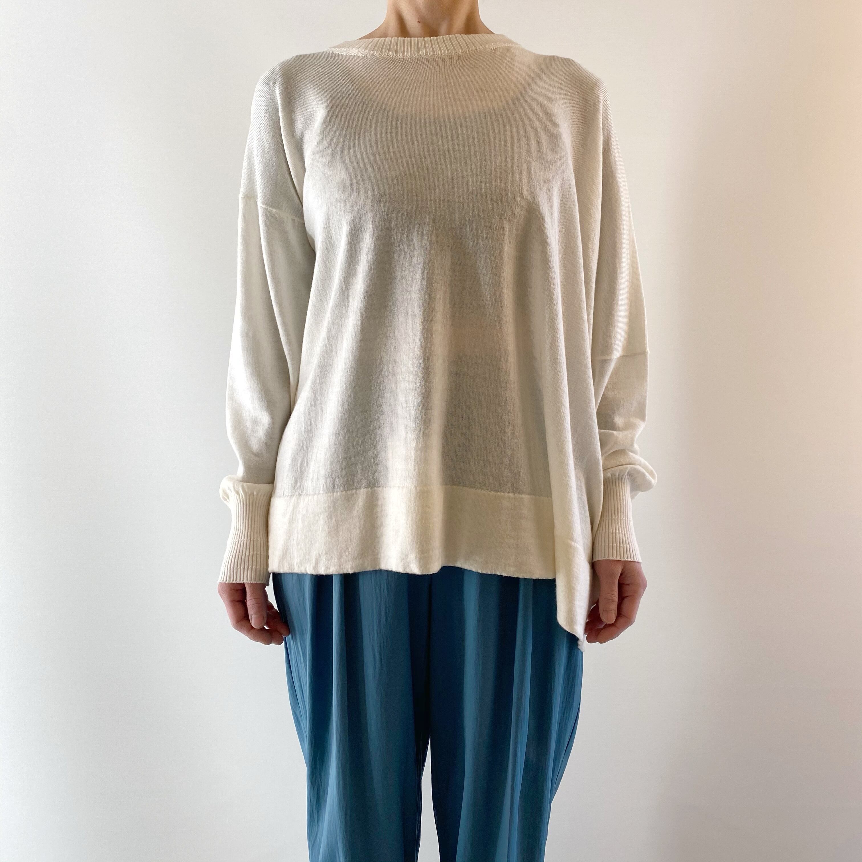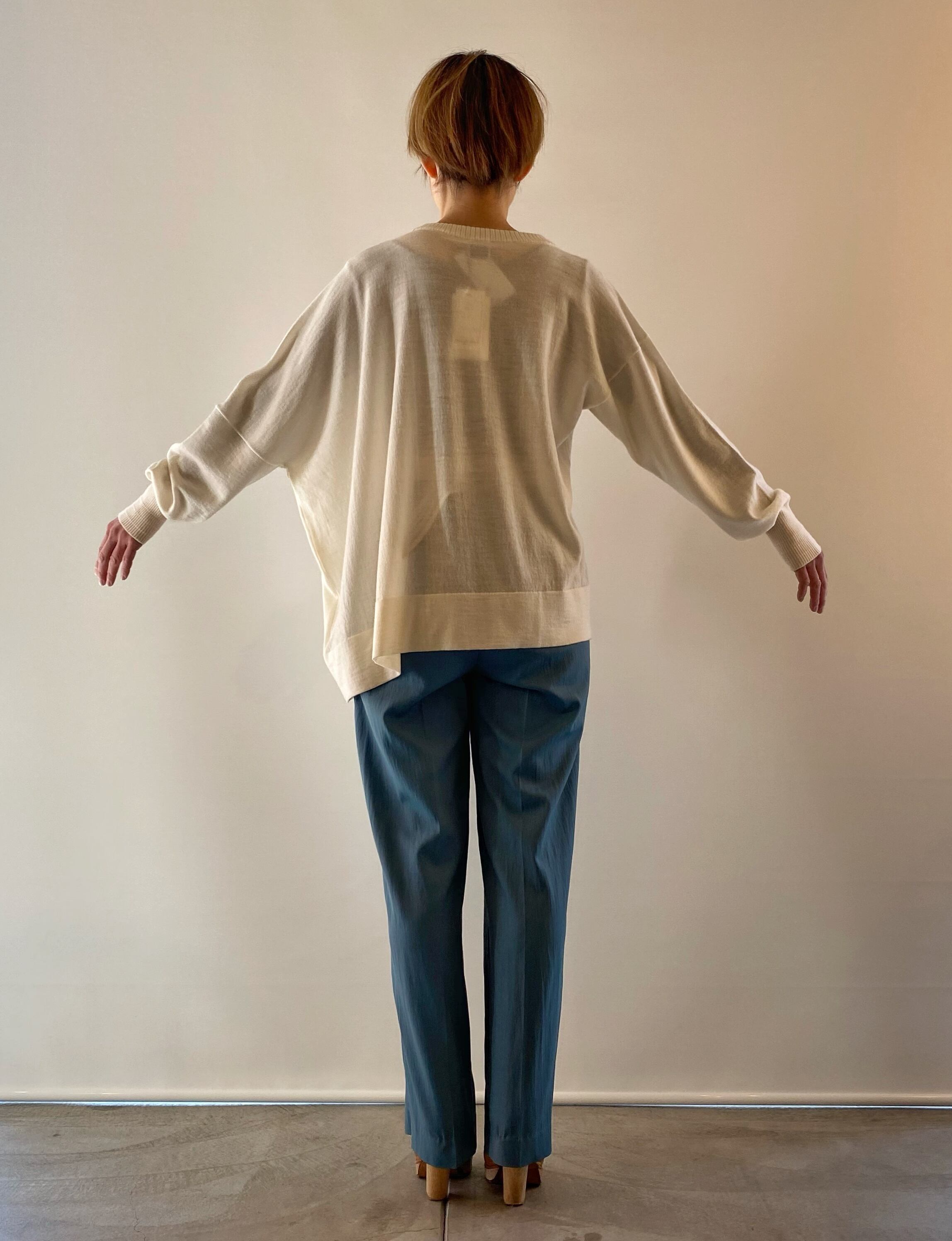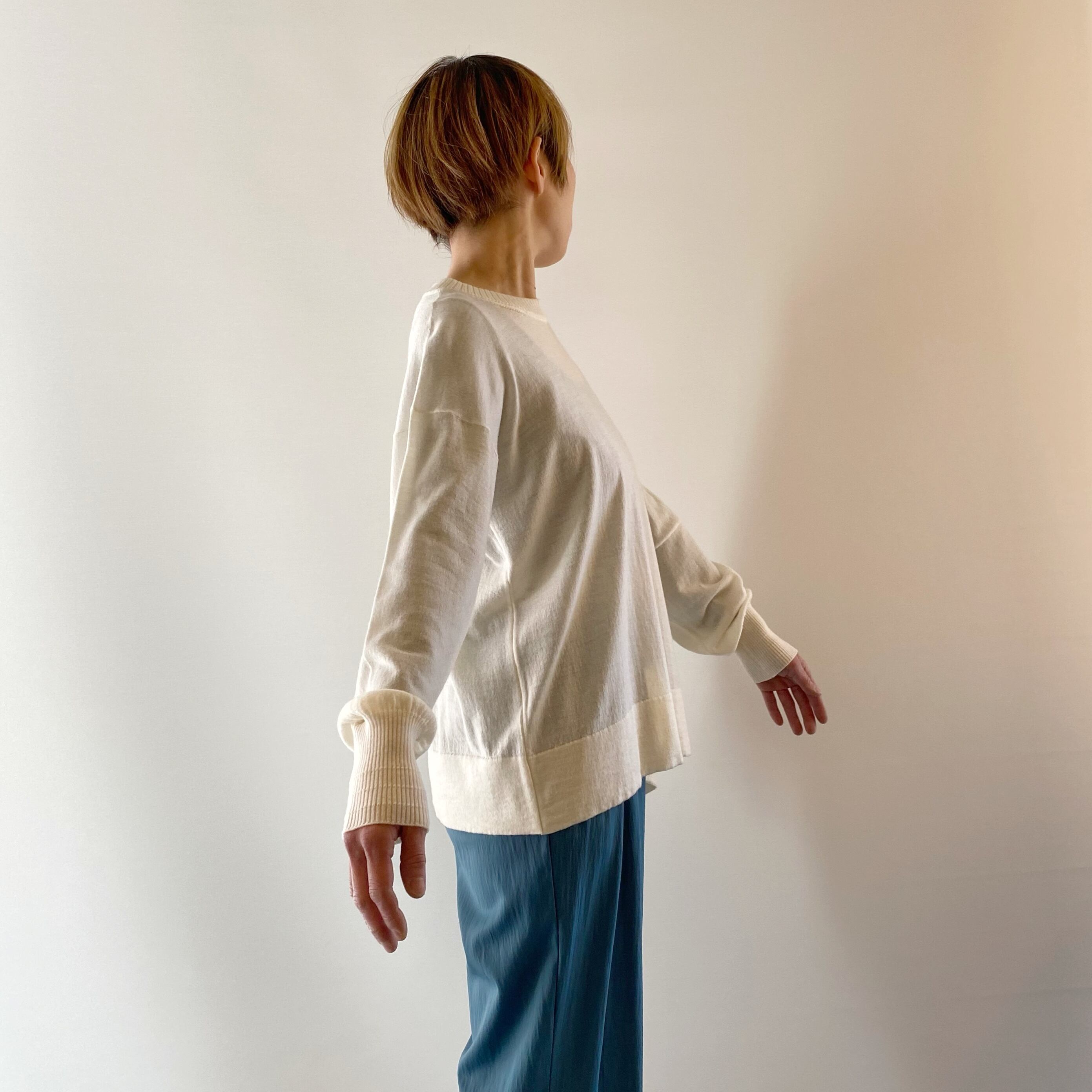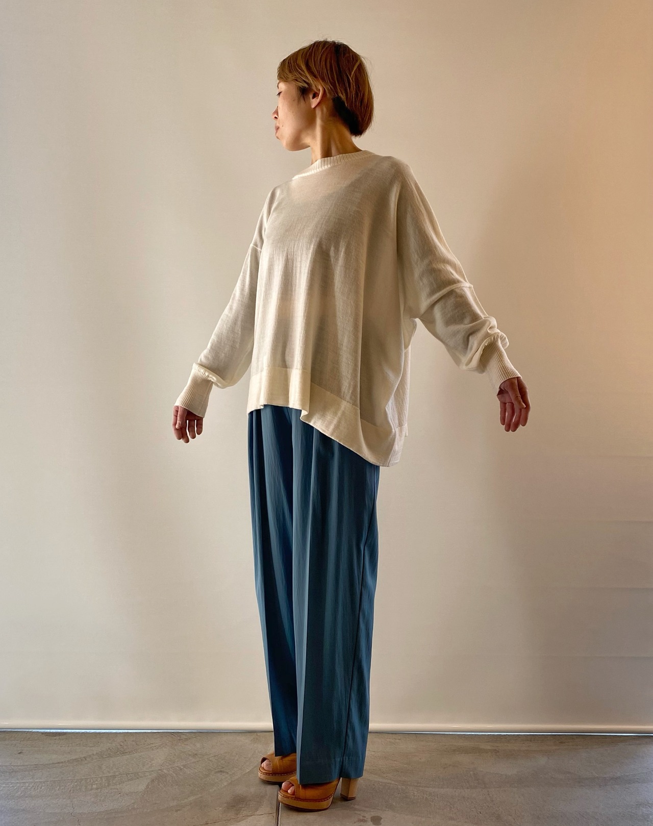 <Design Detail>左下がりのアシンメトリーな分量のニット。