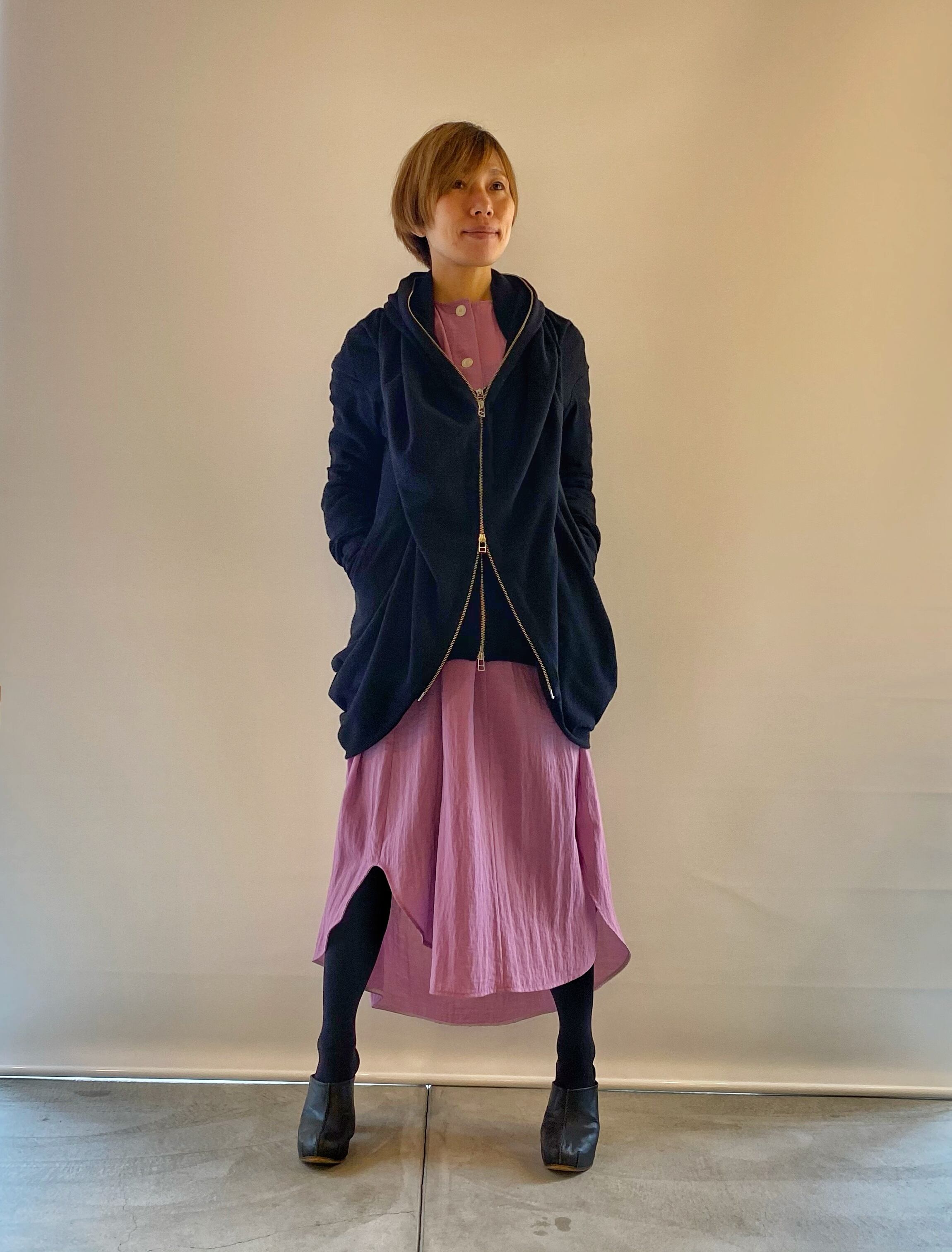 「普遍的な女性の気品を導きだすデイリーウエア」をコンセプトに掲げる京都ブランドSi:m(シーム)。生地の見た目の華やかさや特徴あるデザインというよりは、実際に袖を通した時の素材感や収まり感、体が動いた時にどう見えるかを大切にしています。デザイナーさんは、展示会に行くと、完璧な首周りの幅やプリーツやタックの入れ方によるボリュームの収まり具合をいかに研究したかなどを、いつも一生懸命熱弁してくれますw