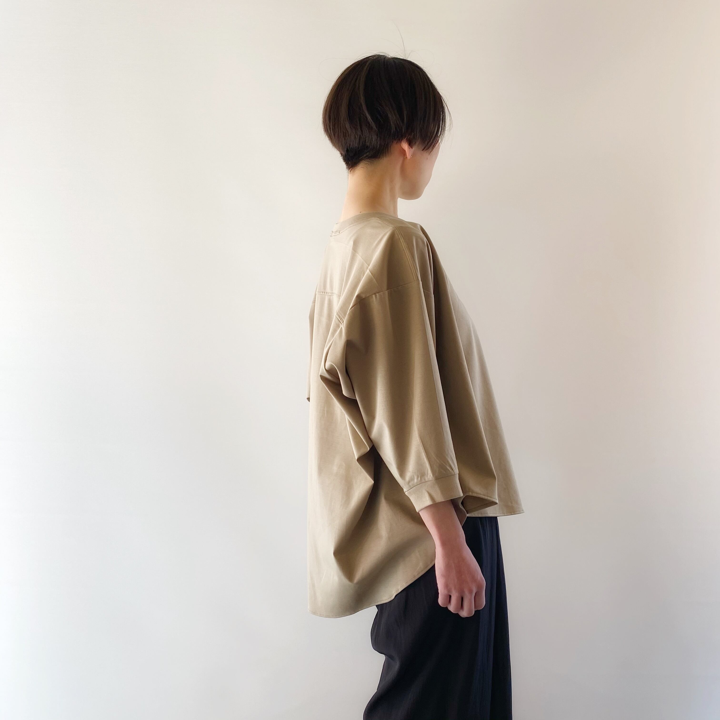 <Design Detail> Drapeyなシルエットが上品な大人の綿100%Tシャツ