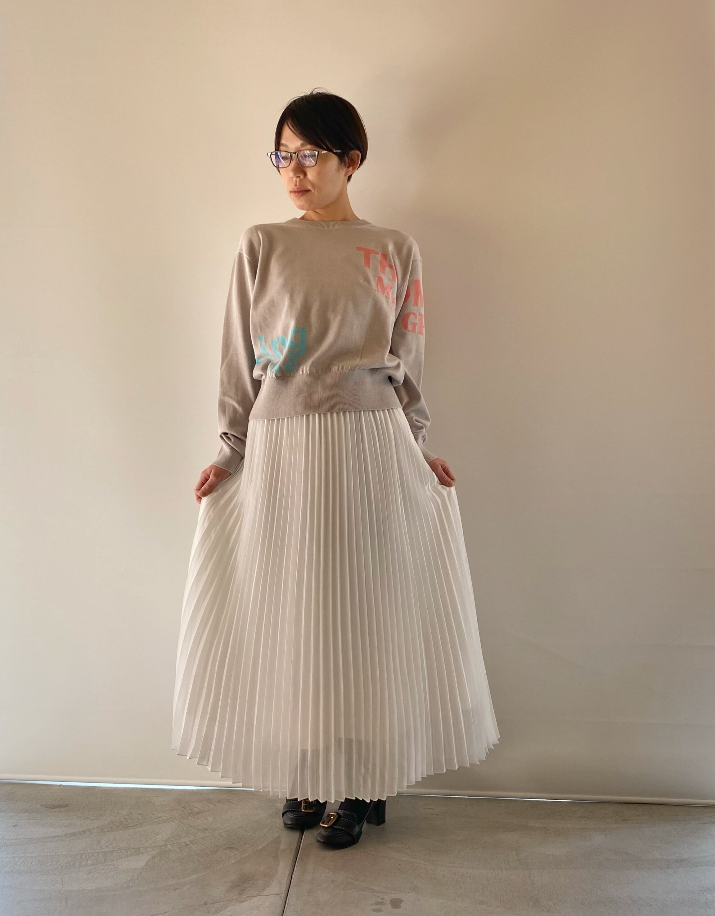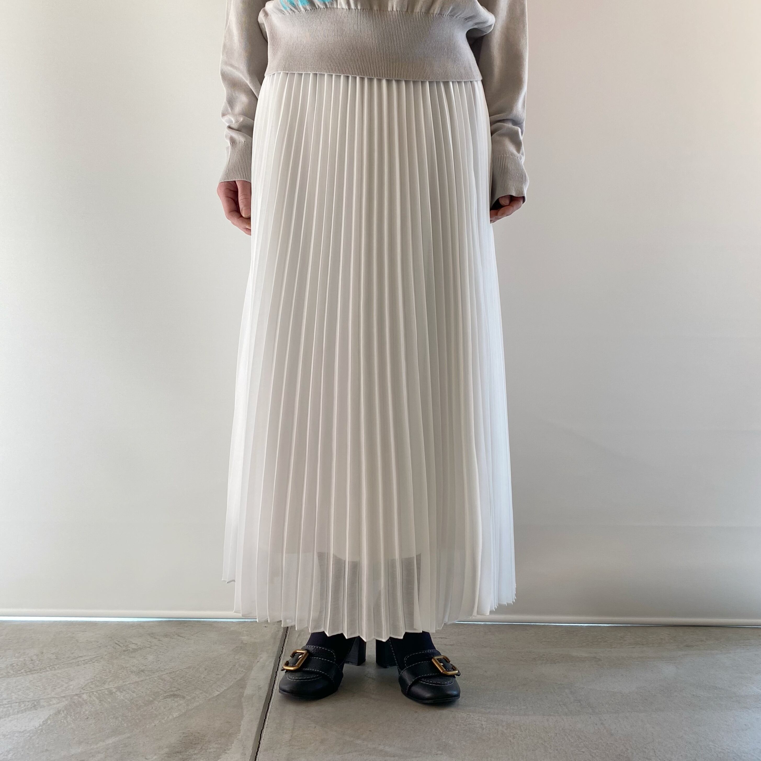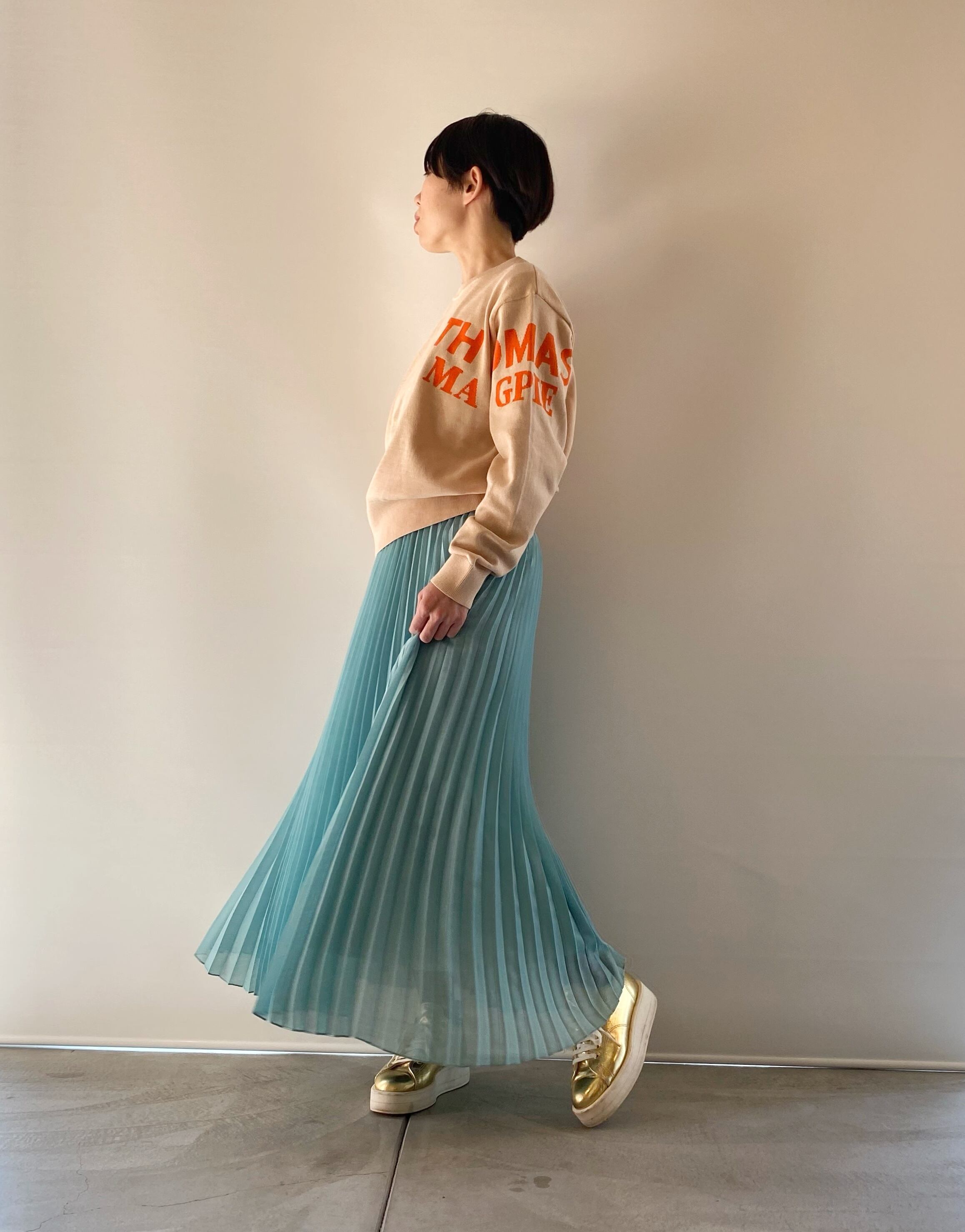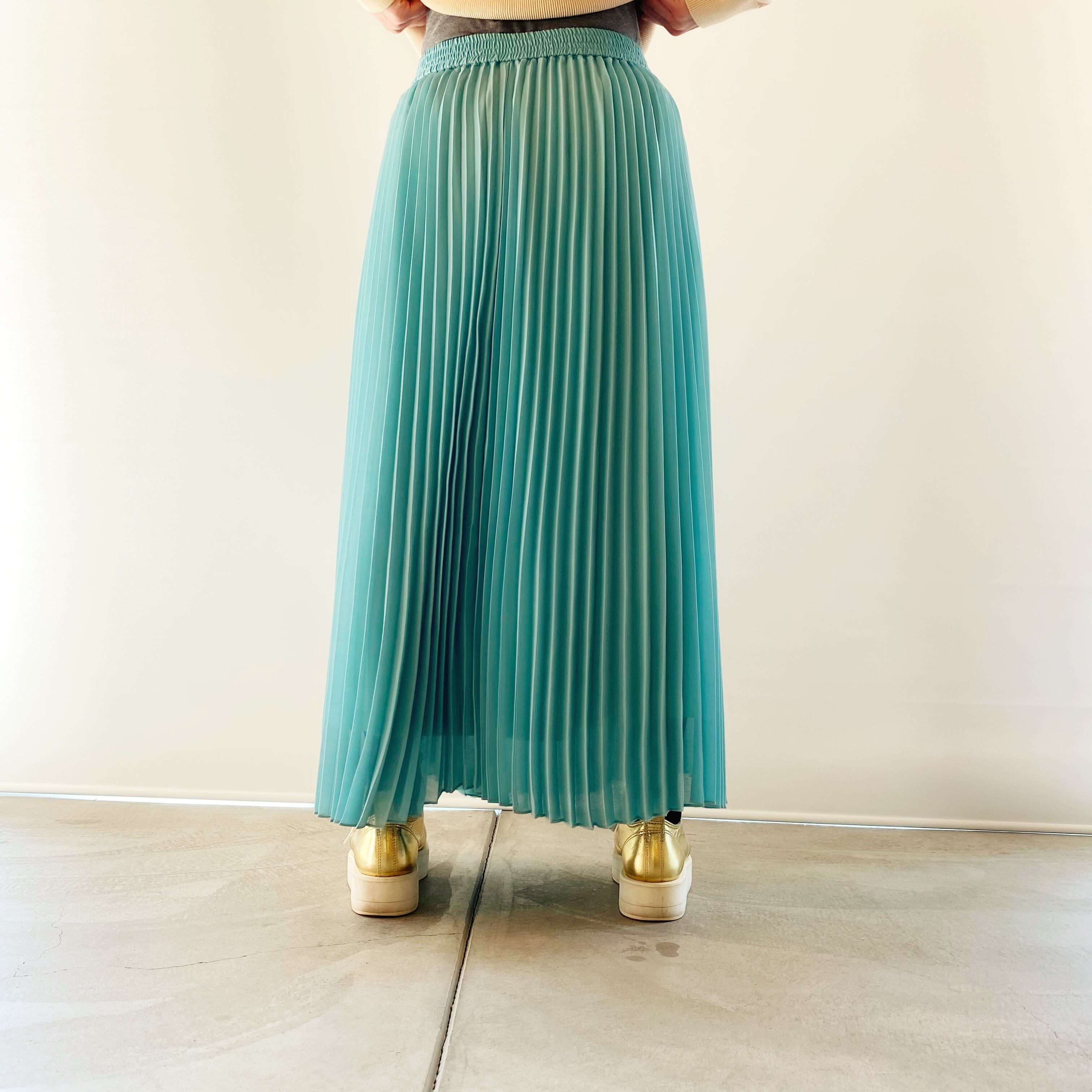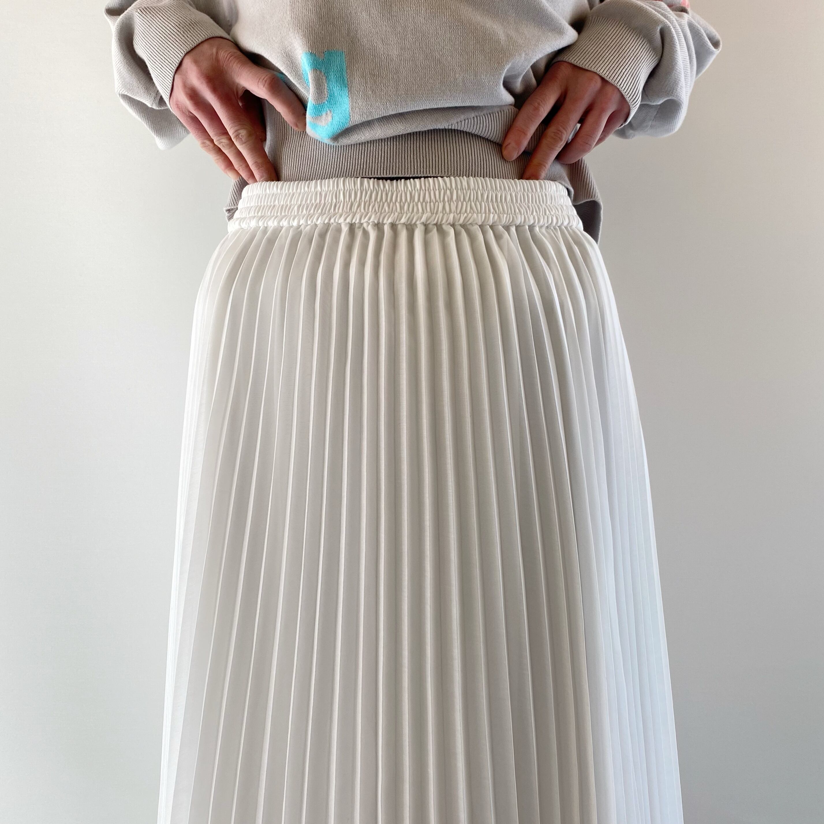 <Design Detail> 一気に春を感じれるエメラルドグリーンに少し水色を足したようなクリーンな色と、本当に濁りの無いピュアなホワイトの2色のプリーツスカート。