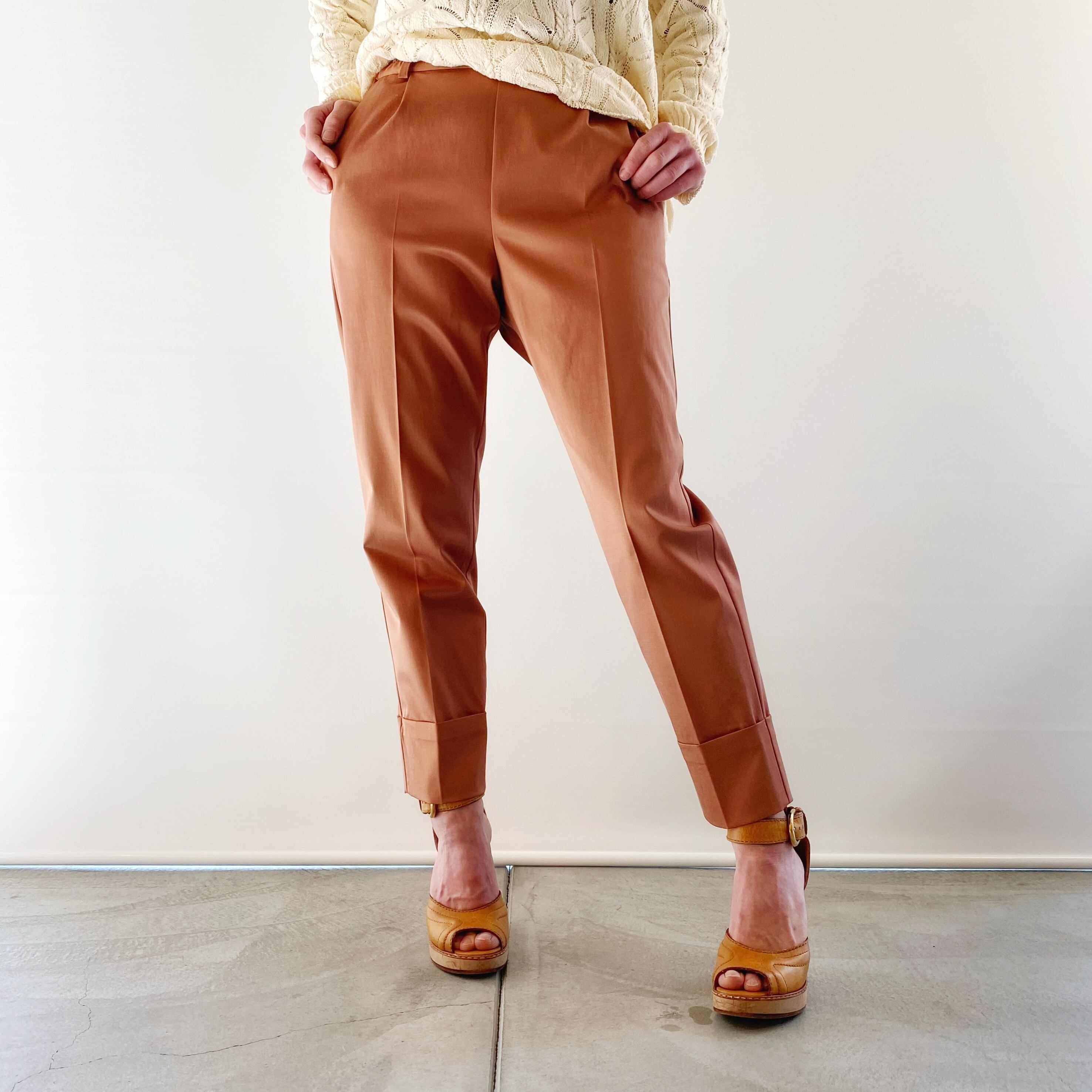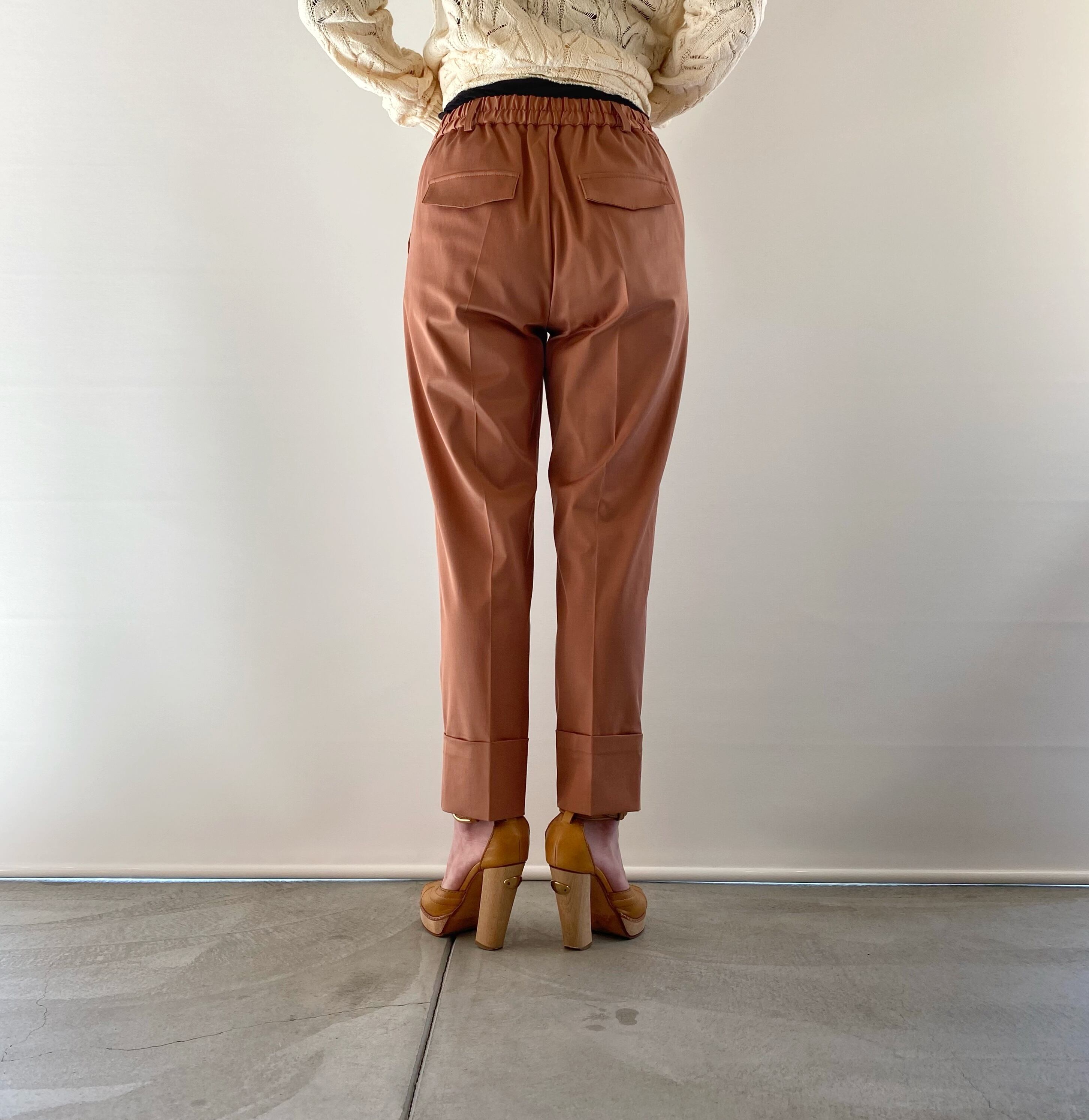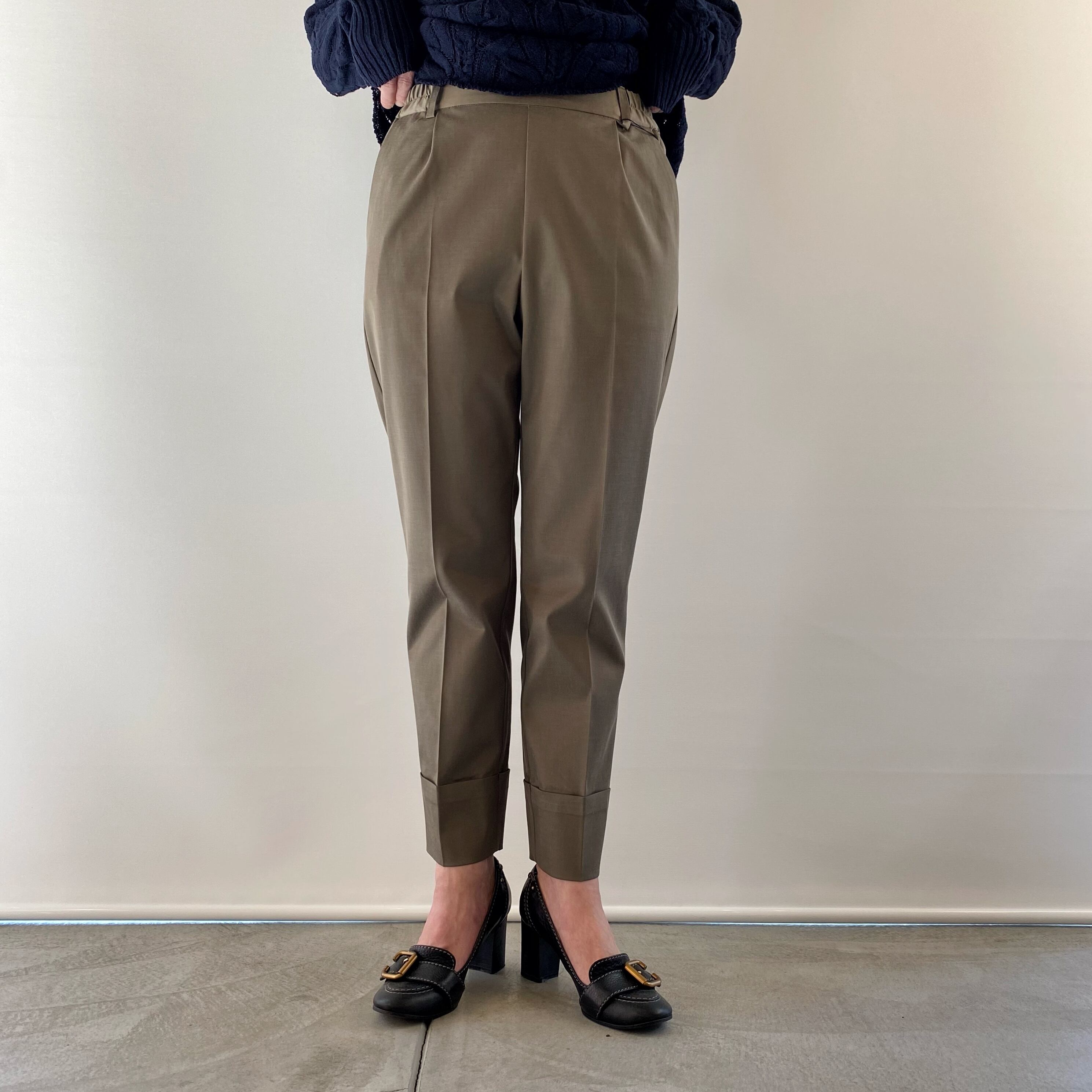<Design Detail> キュプラの上品な光沢感とストレッチ性も優れたテーパードパンツ