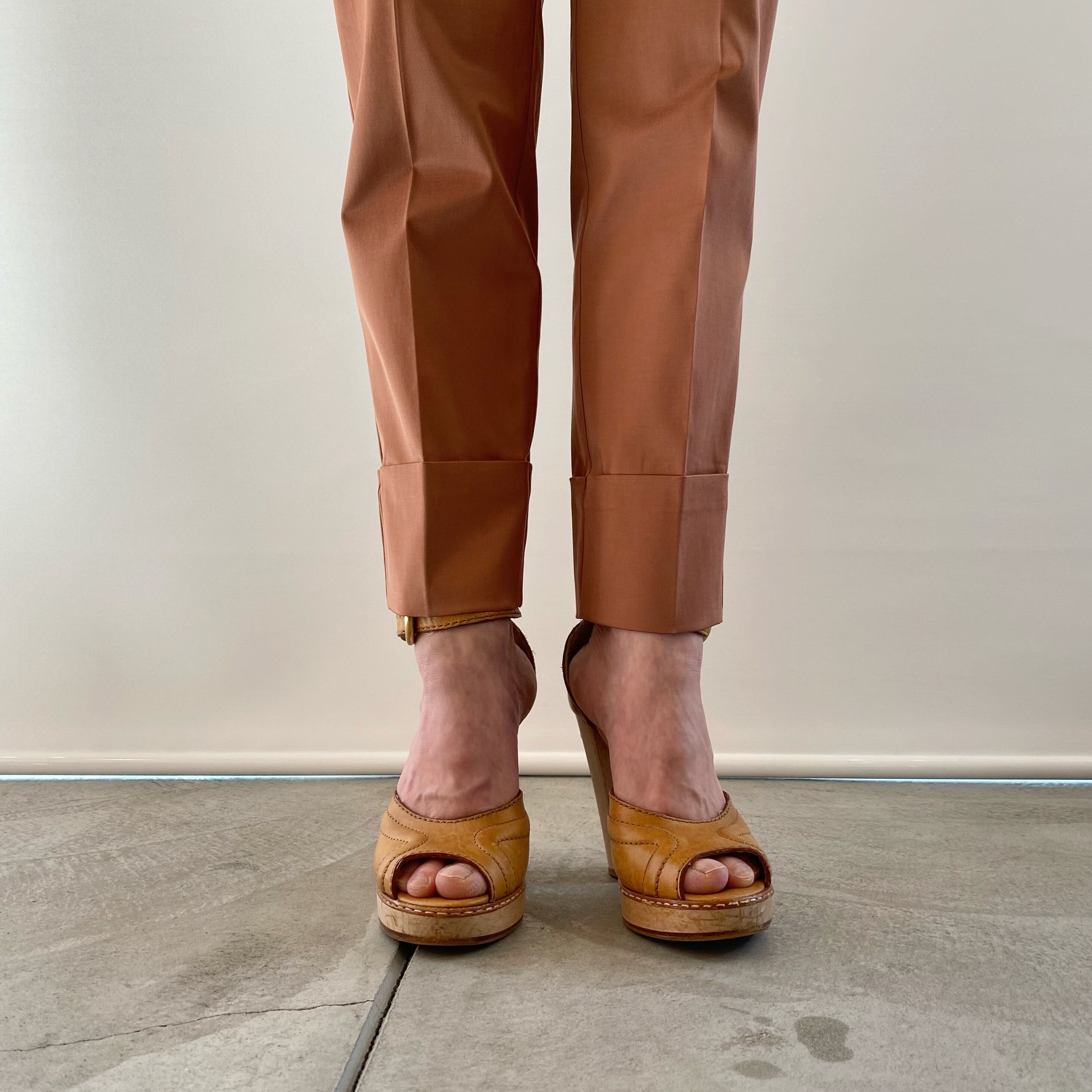 *モデルのみおさんは、身長153㎝。ベージュのサンダルは9㎝ヒール size36を着用
