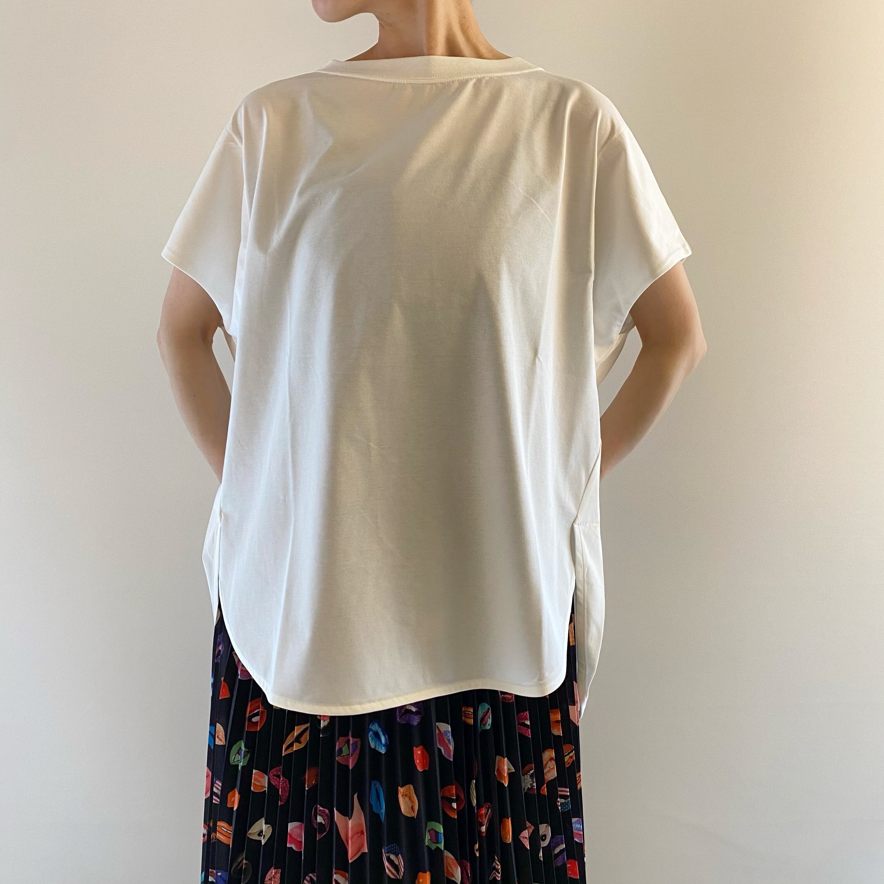 インすればフレアスカート、タイト、ワイパンツと幅広いボトムとコーデできます。