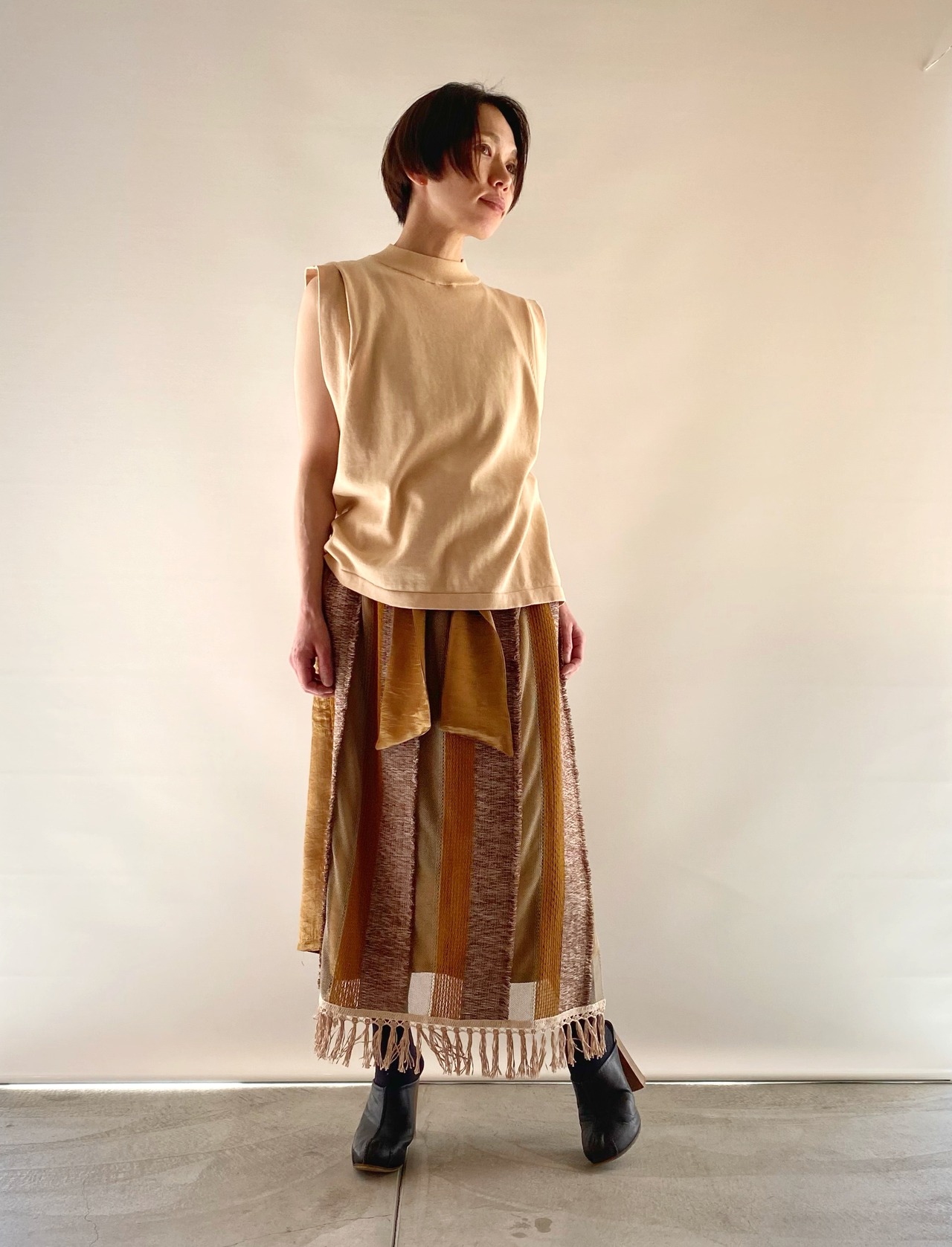 <Codordinate tips> 脇の空きが大きめなので、ボリューム袖のトロトロ素材ワンピのベストとしてコーデしても可愛い