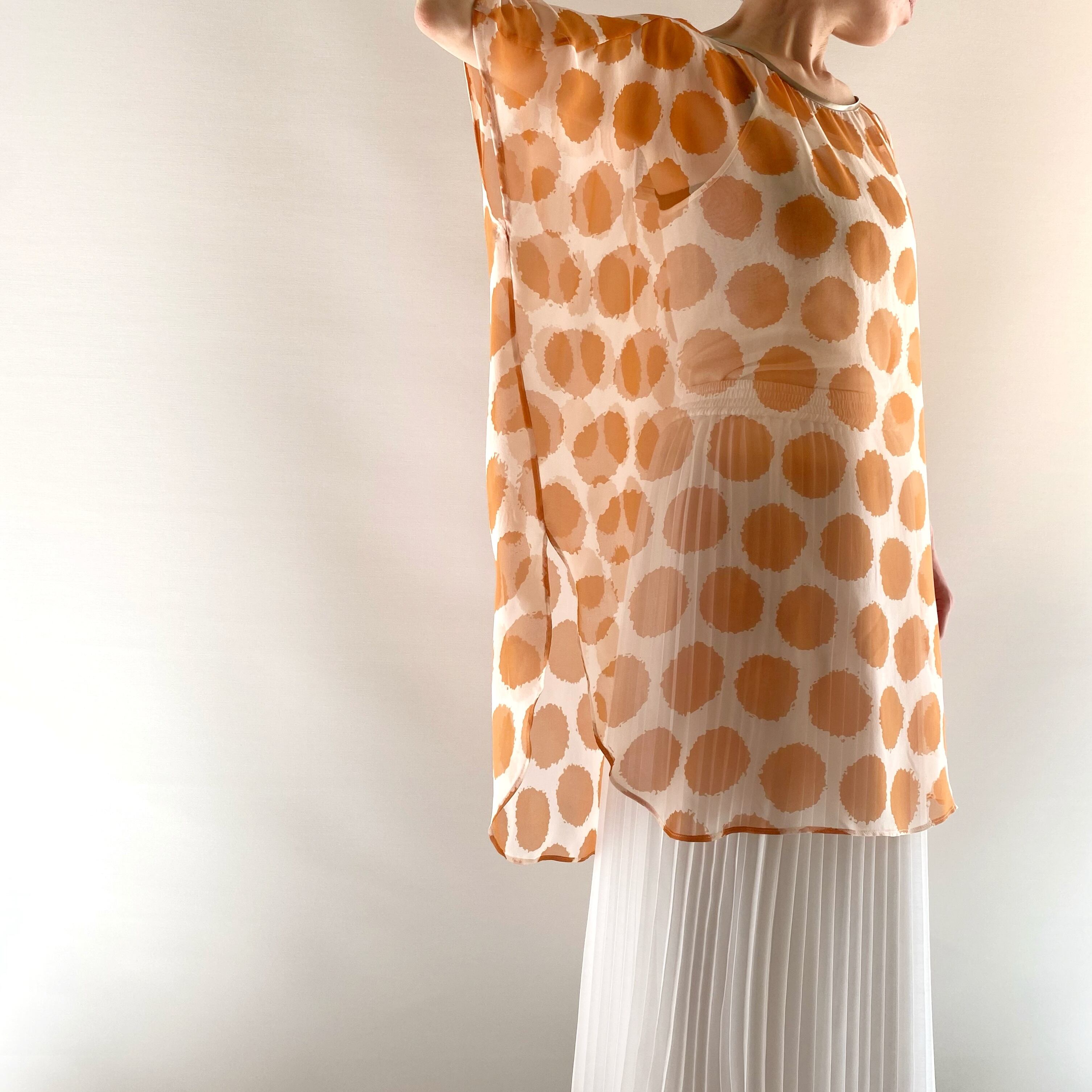 透け感のあるシアー素材ですが、大柄なドットのおかげで程よい透け感に
