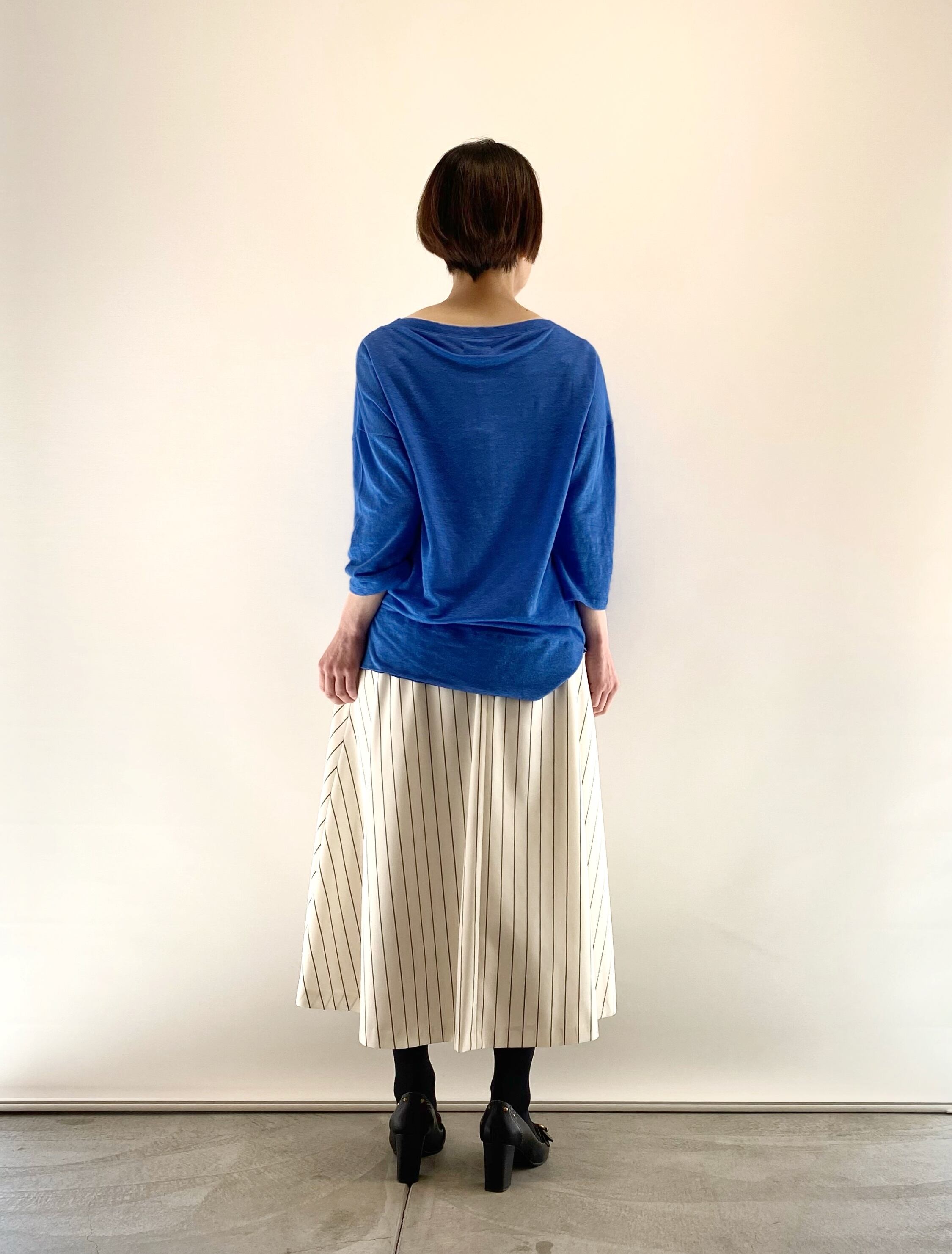 スカートが割とカチッとした素材感なので、ブラウスはとろみ素材の方が良さそう