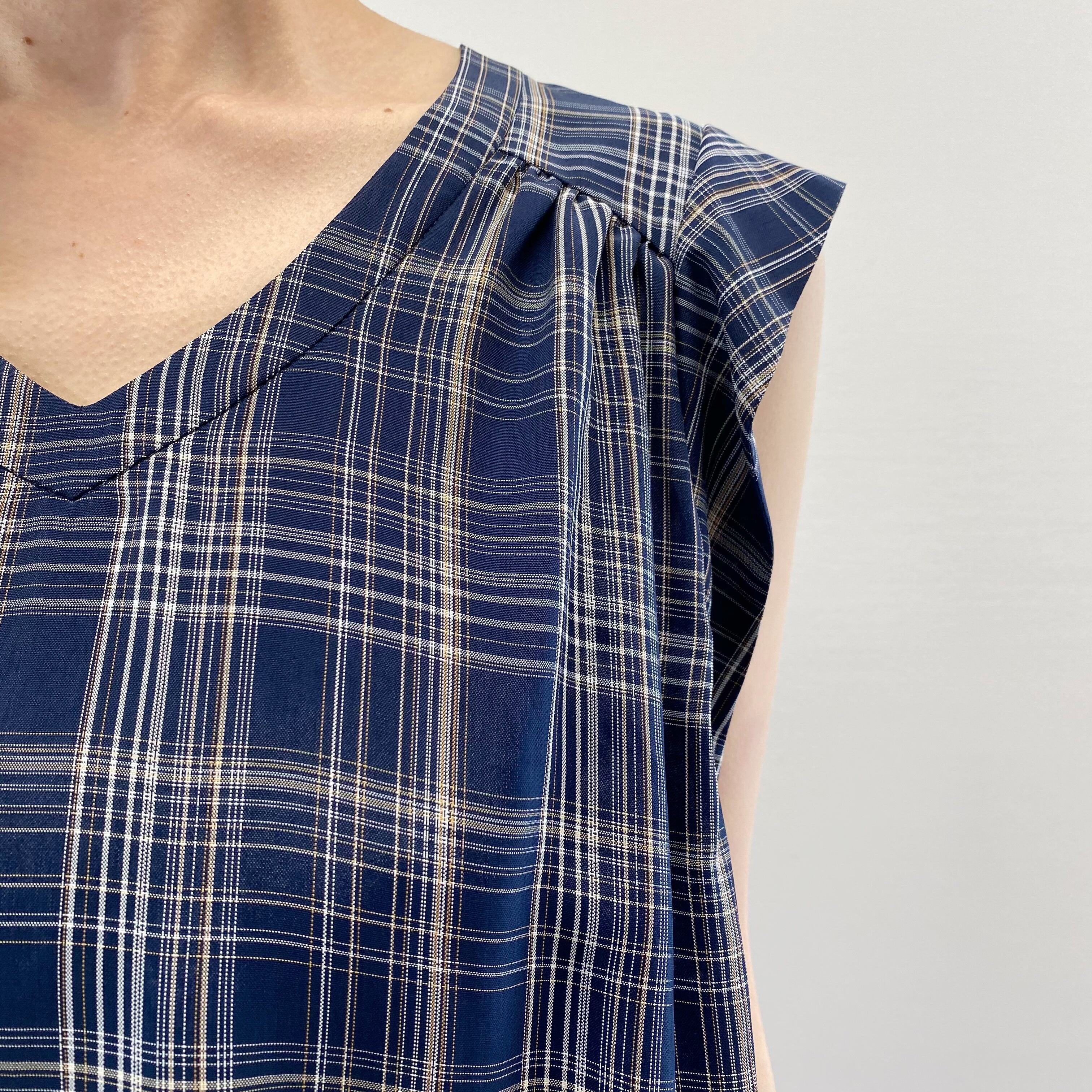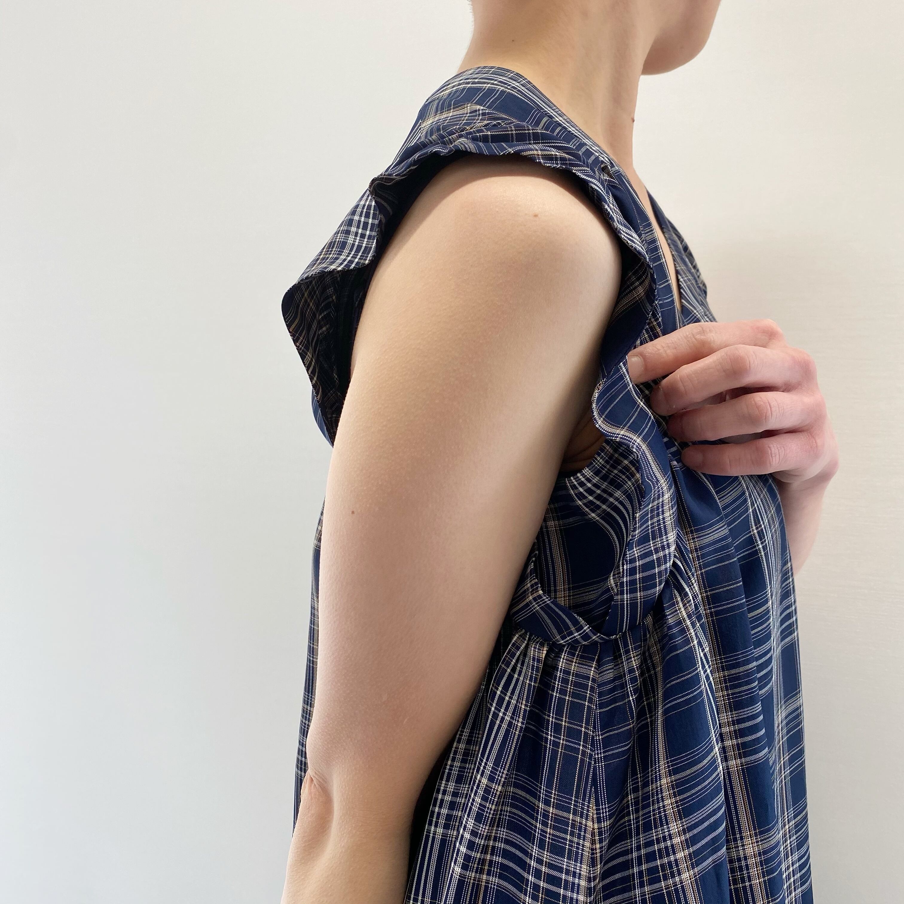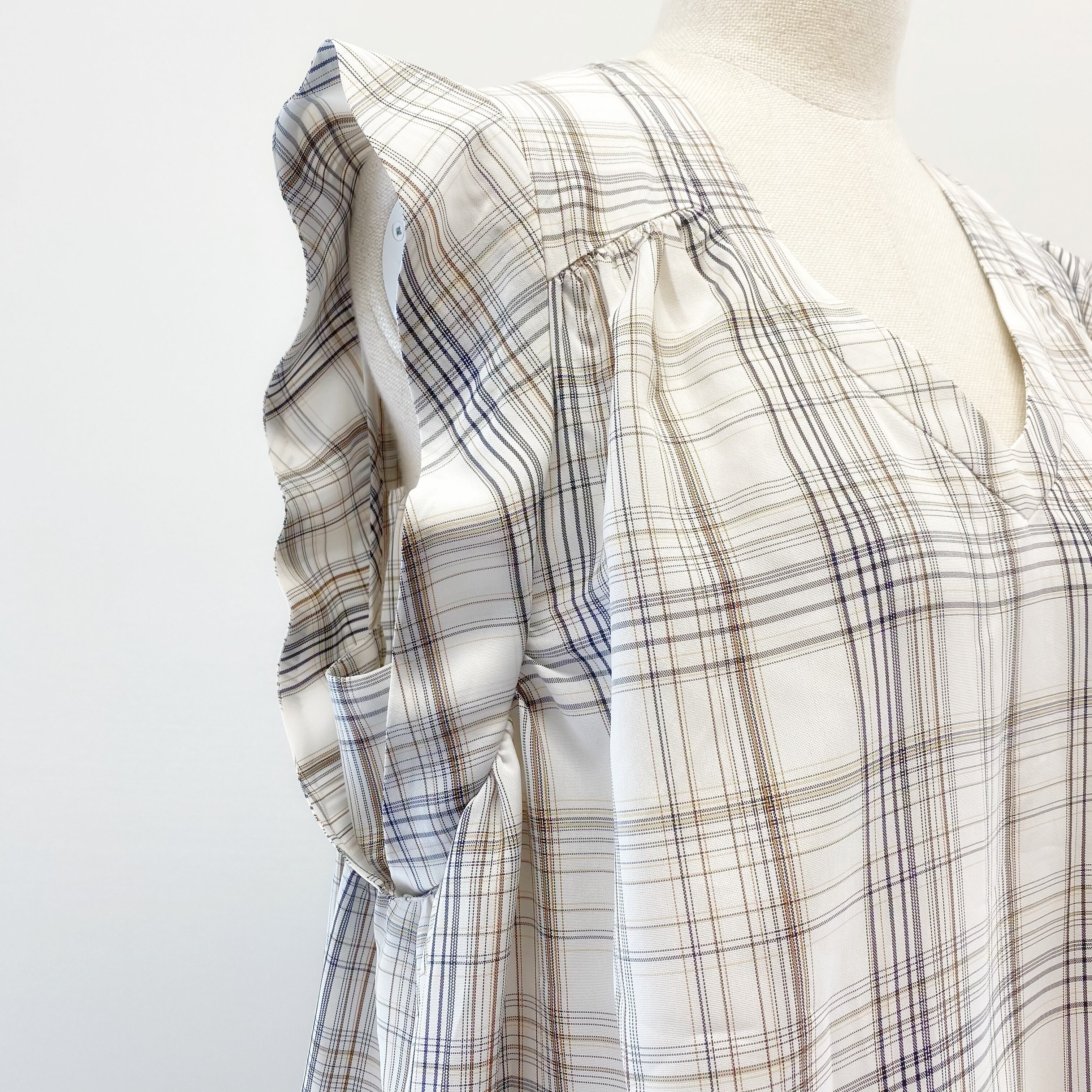 甘めなデザインでだけど、落ち感のある素材感と細かで落ち着いたチェック地なので、大人の女性を程よく可愛く見せます
