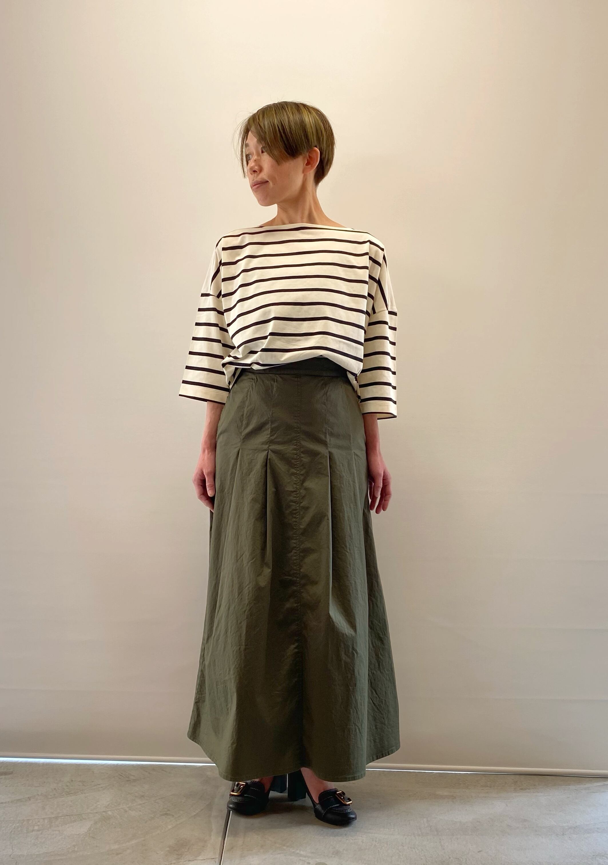 <Design Detail>途中まではタイト、膝上から程よくボックスプリーツで丸みをだしてるけど