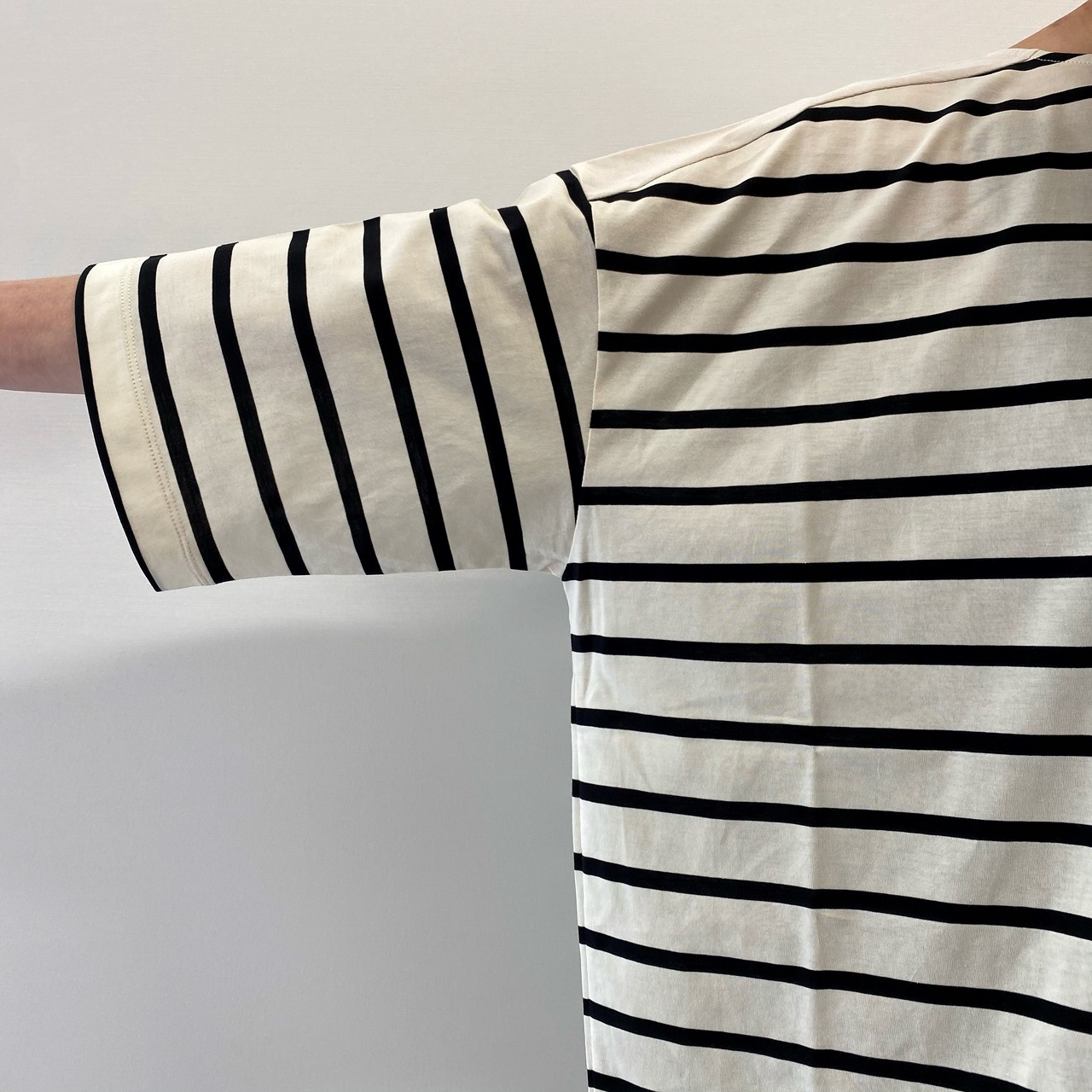 きっちり肘まで隠して。真夏も着れるノーストレスなボーダーT