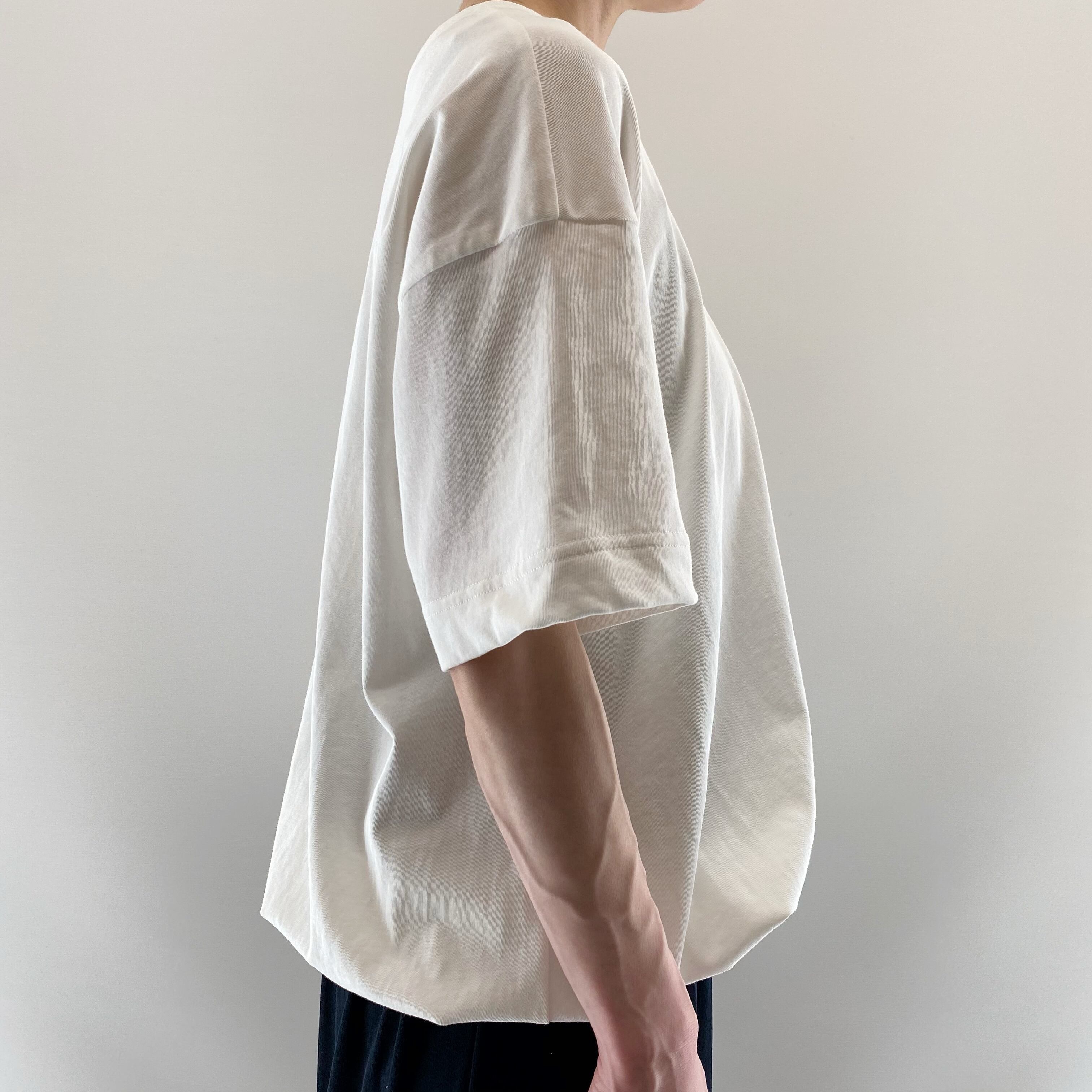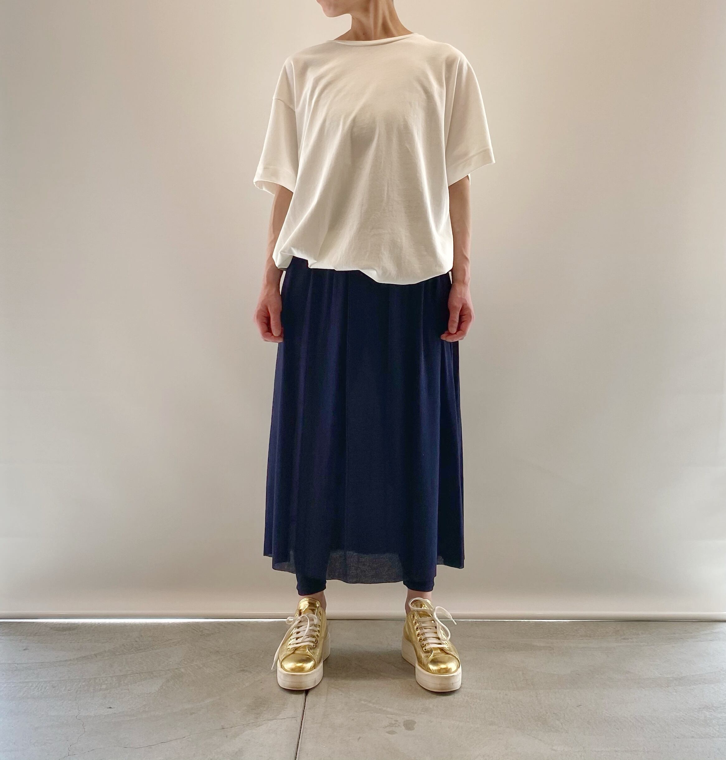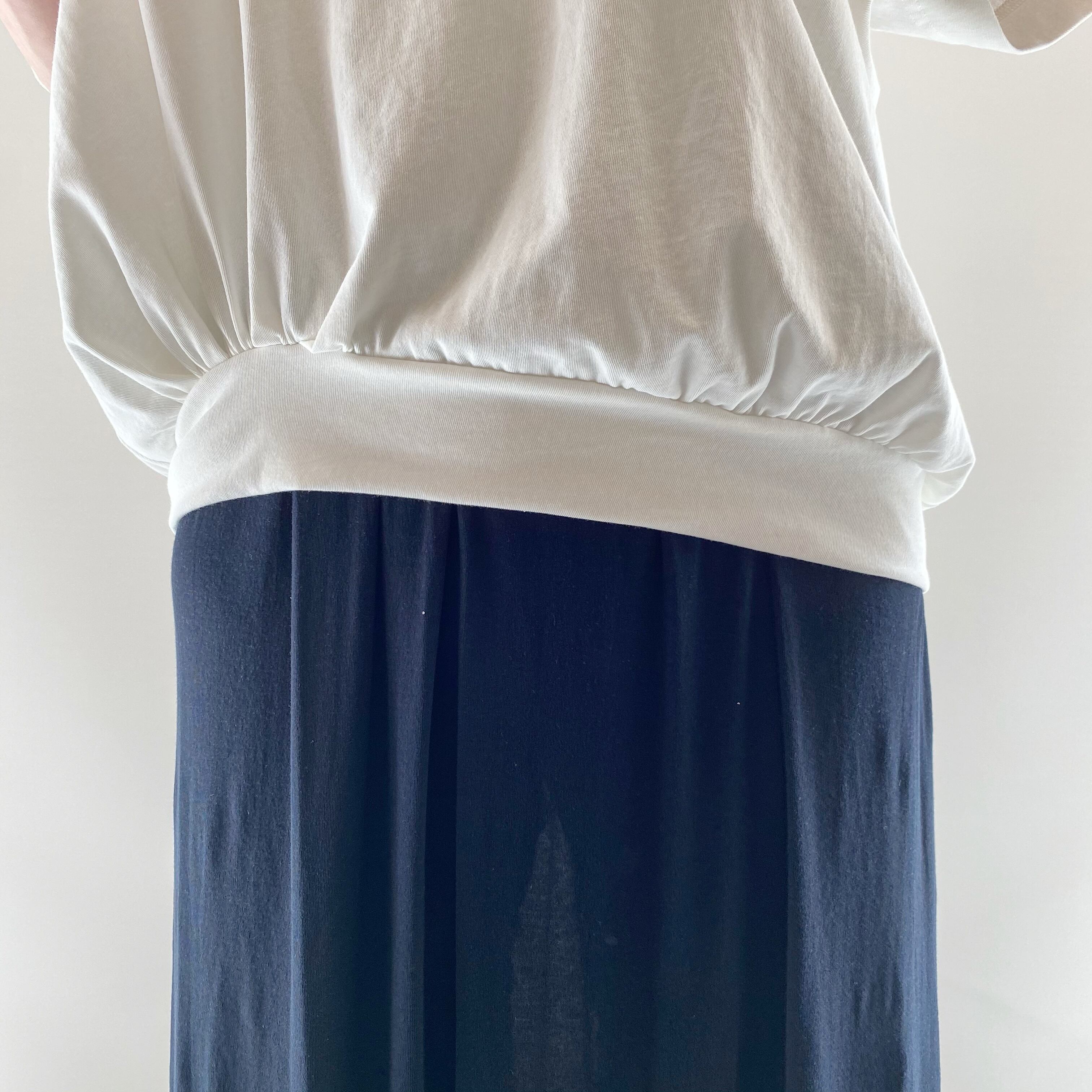 <Design Detail> 薄着にならざるおえない真夏。被るだけで裾にギャザーが寄って、オシャレなアシメなシルエットに