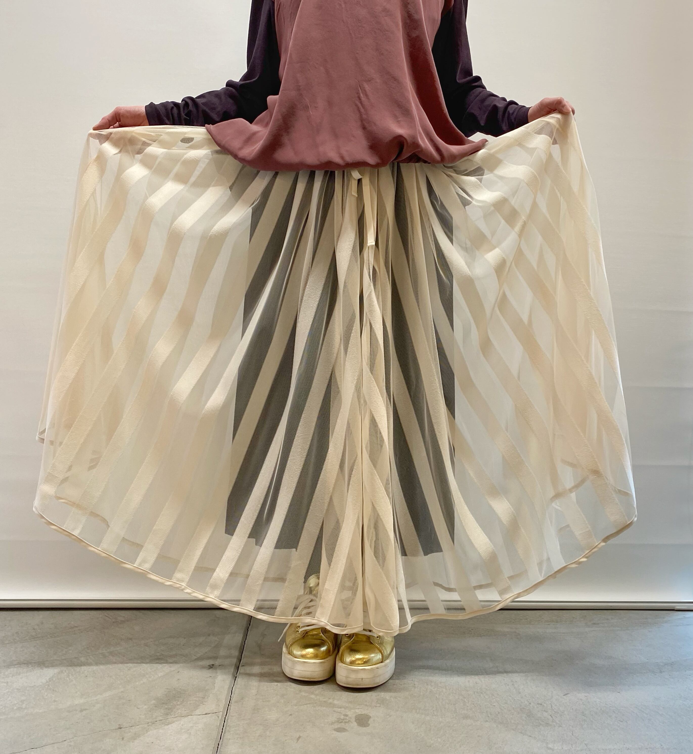 <Design Detail> このスカートの下に履くものを活かす脇役的チュールフレアスカート