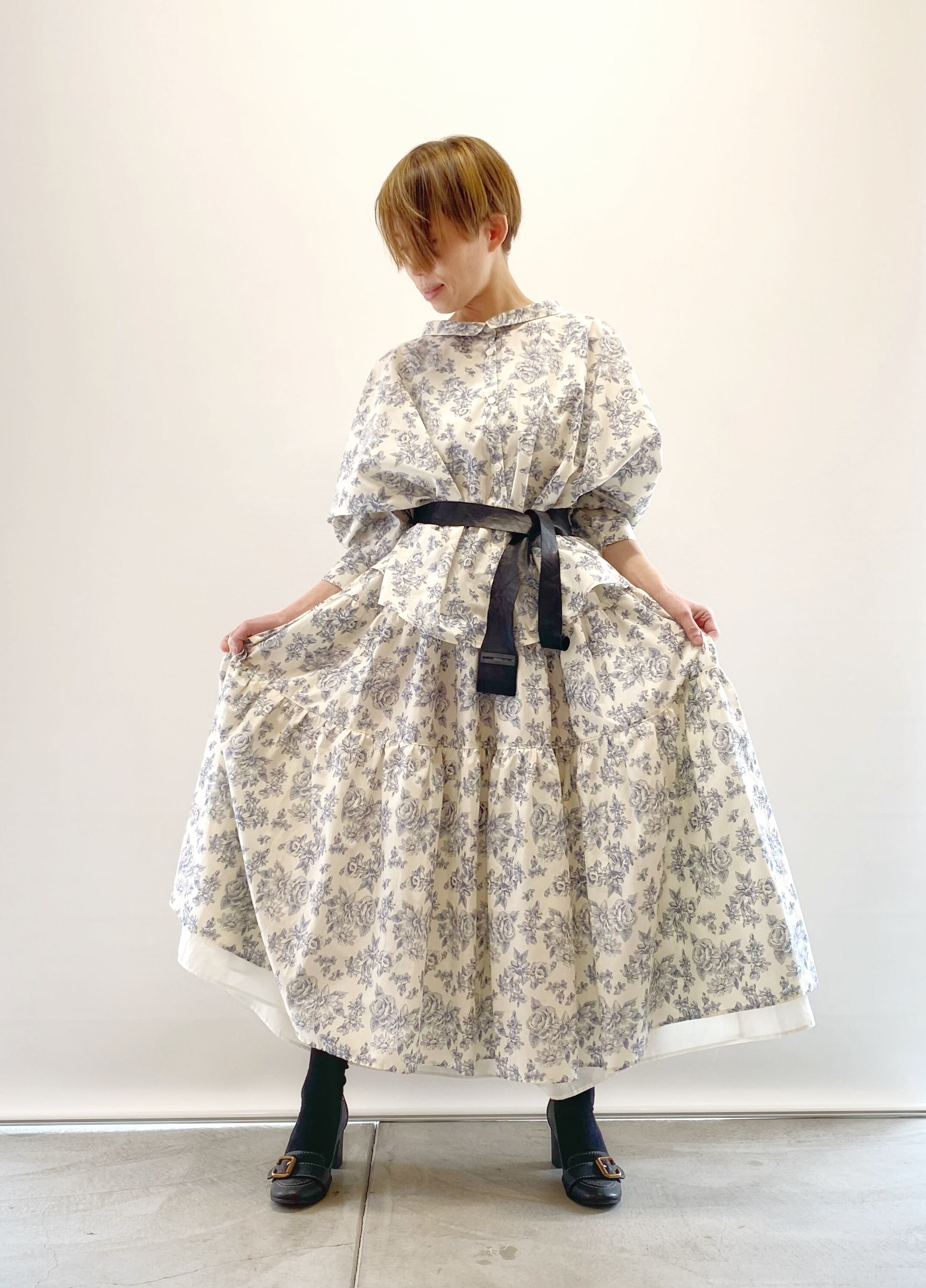 <Design Detail> レトロなムード漂うフラワープリントにティアードスカートのこてこてシルエット。
