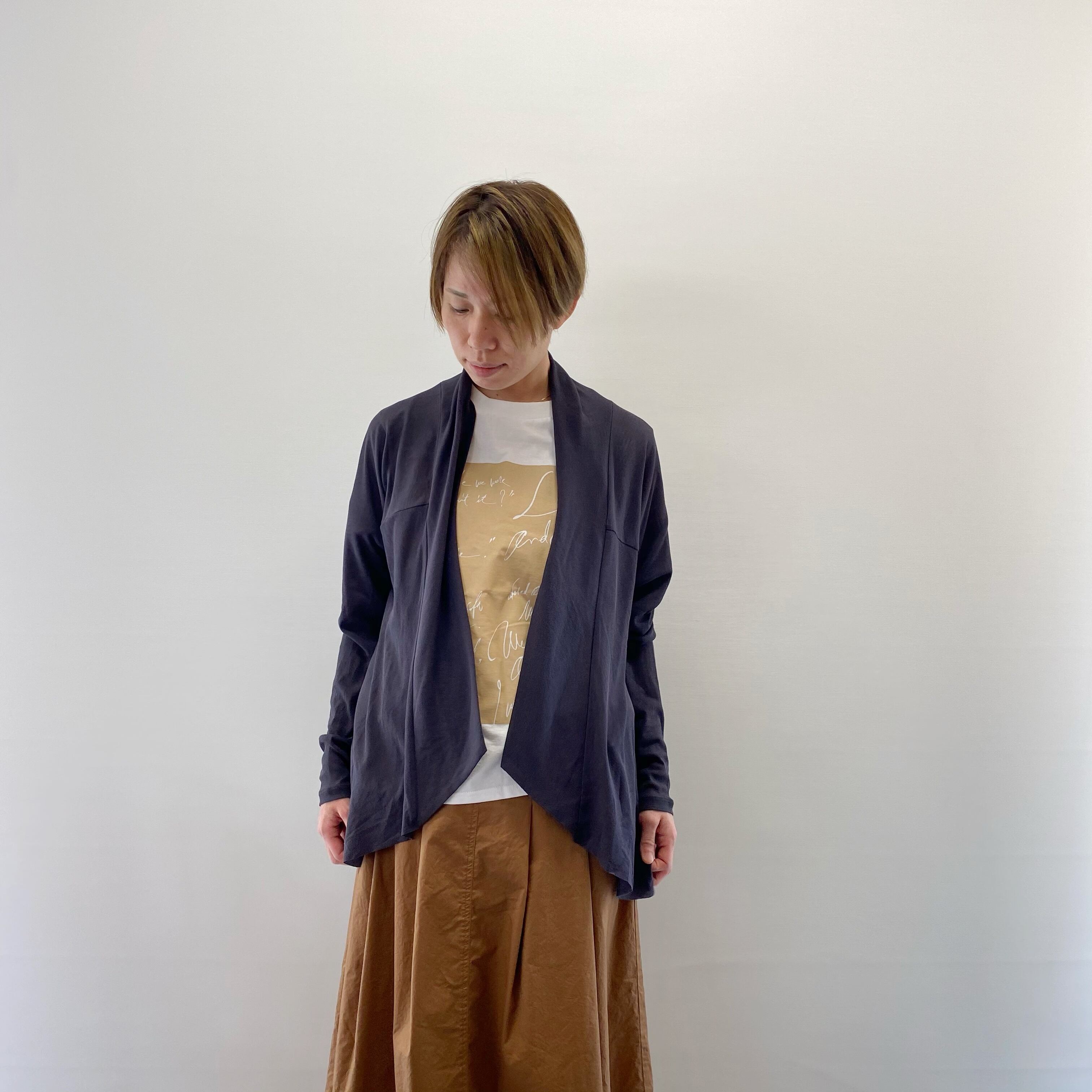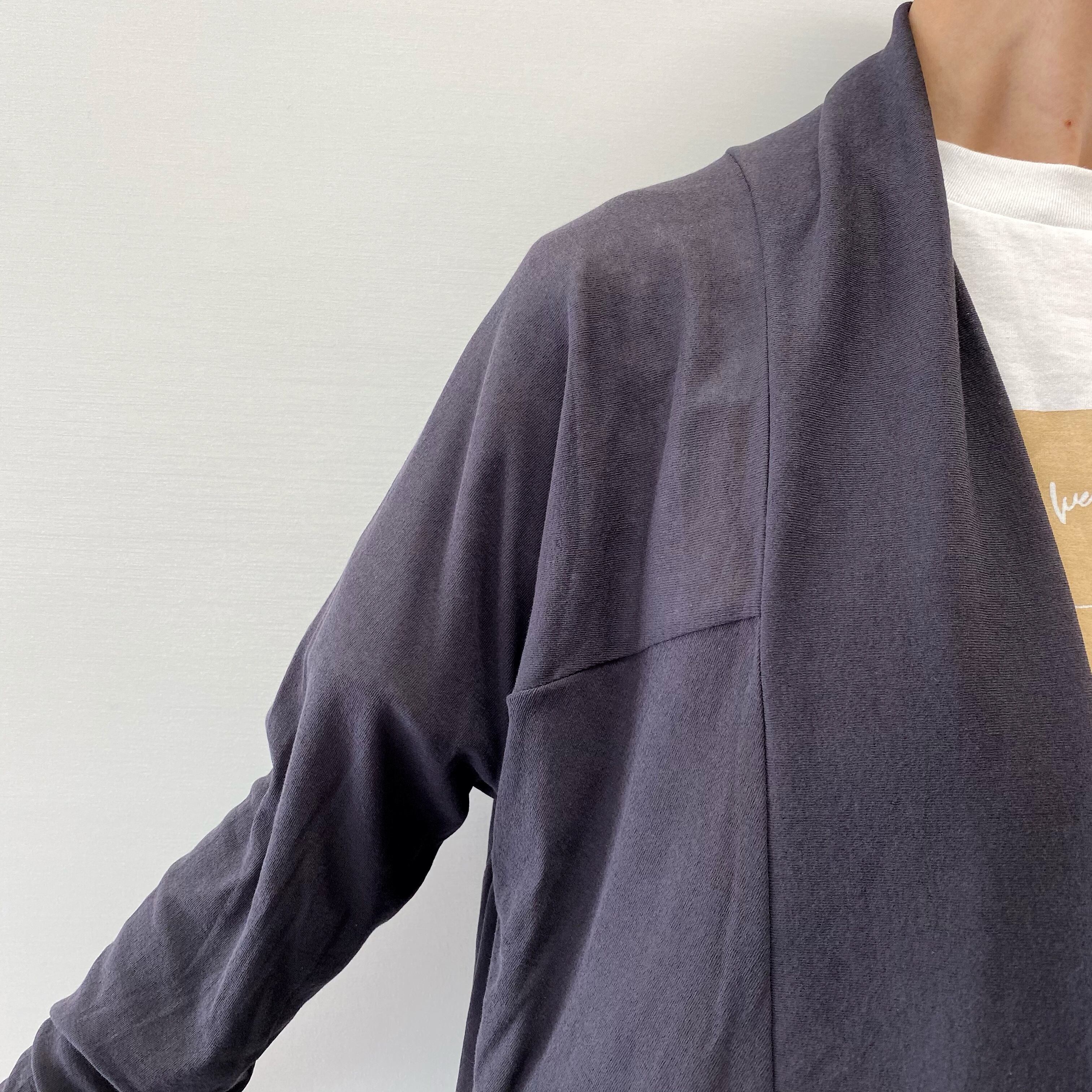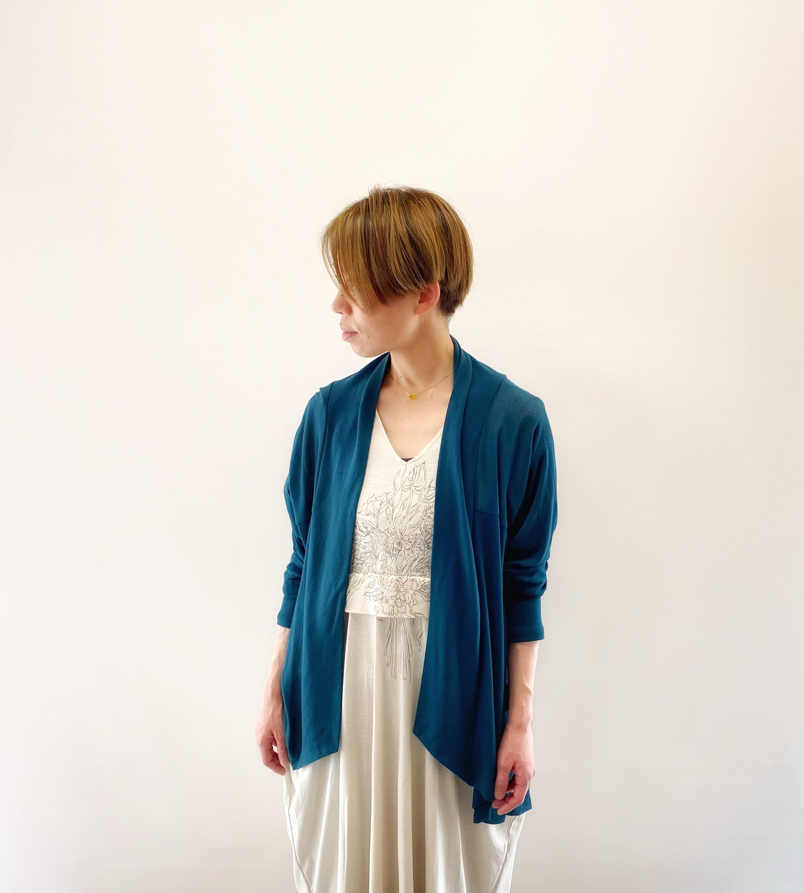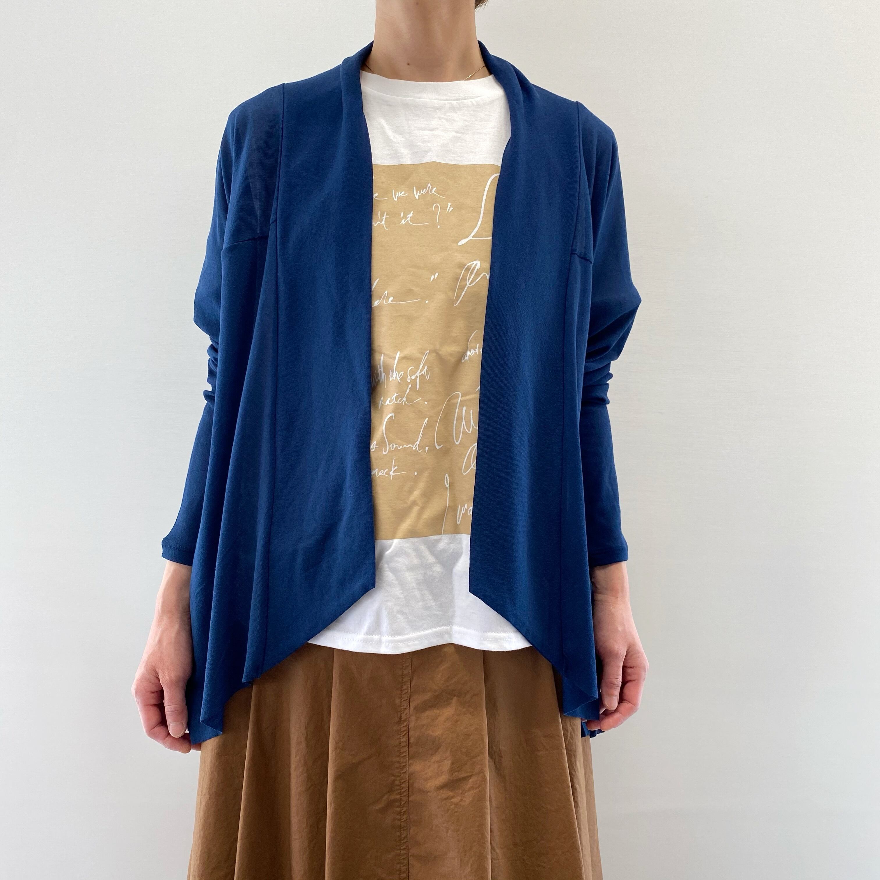 衿まわりを二重にしっかりとさせたエレガントな羽織り、Aラインの落ち感が美しい1枚です。断ち切りの裾が軽やかさを演出します。