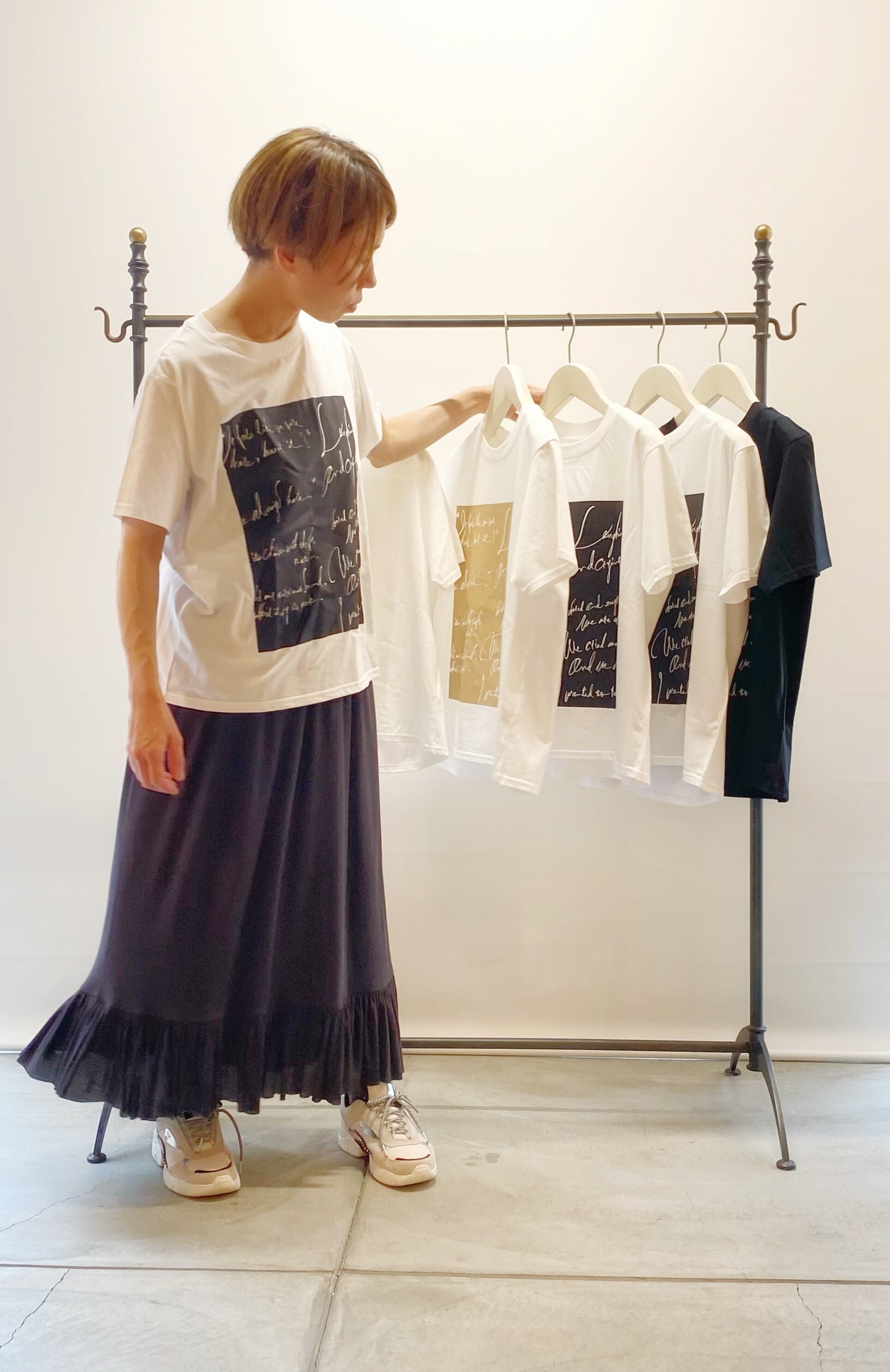 <Colour> ①ベージュパネルxホワイト地 ②ブラックパネルxホワイト地(みおさんが1枚目で着ているのです)③白文字xブラック地 ④ブルーの猫