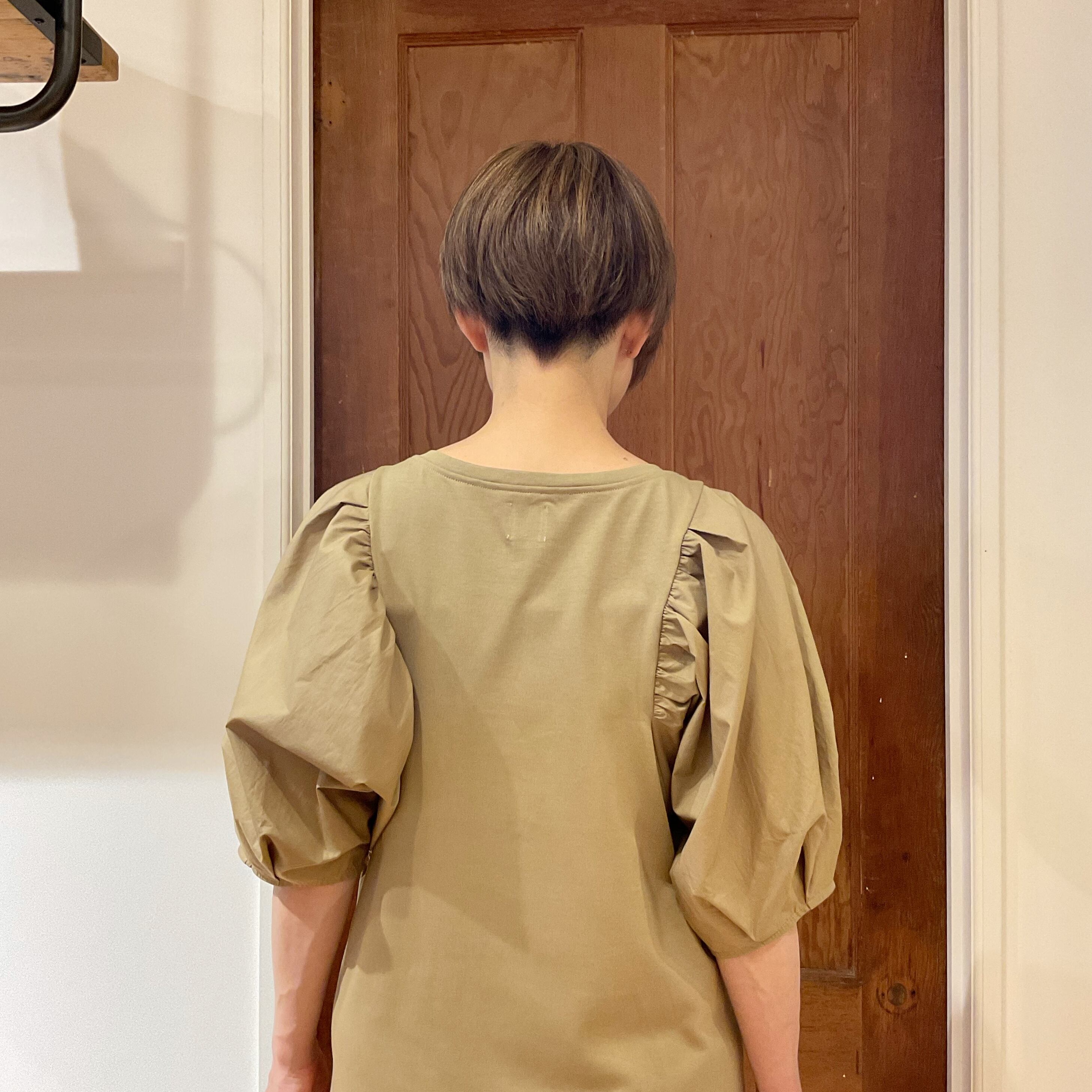 トレンドのボリューム袖は前後タックの入れ方を変えることで見え方に変化付けています