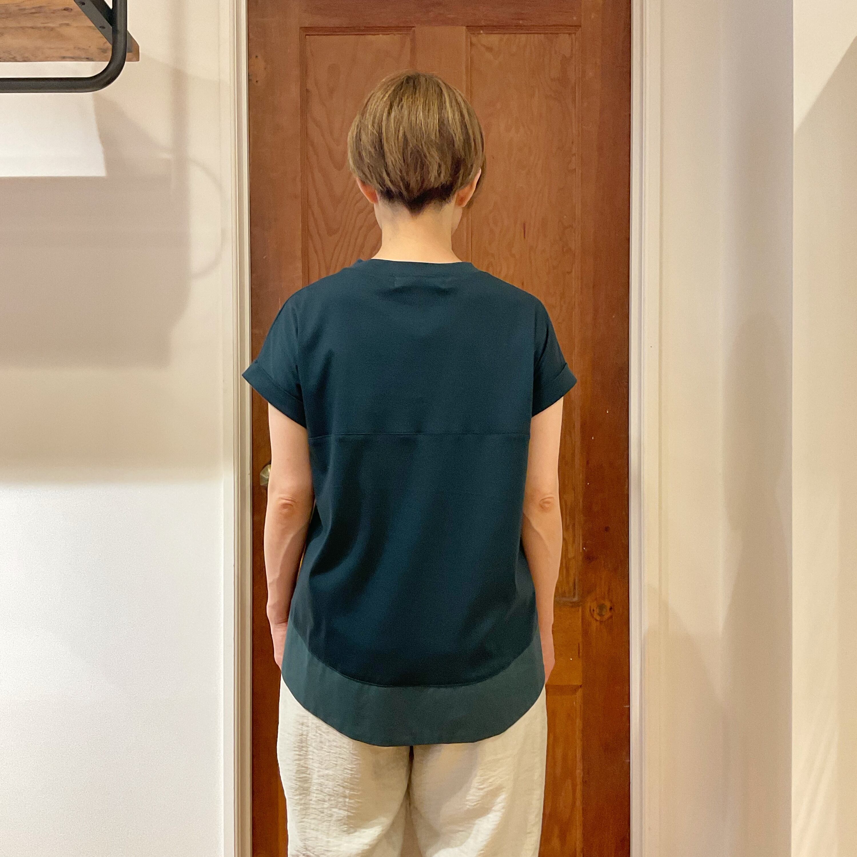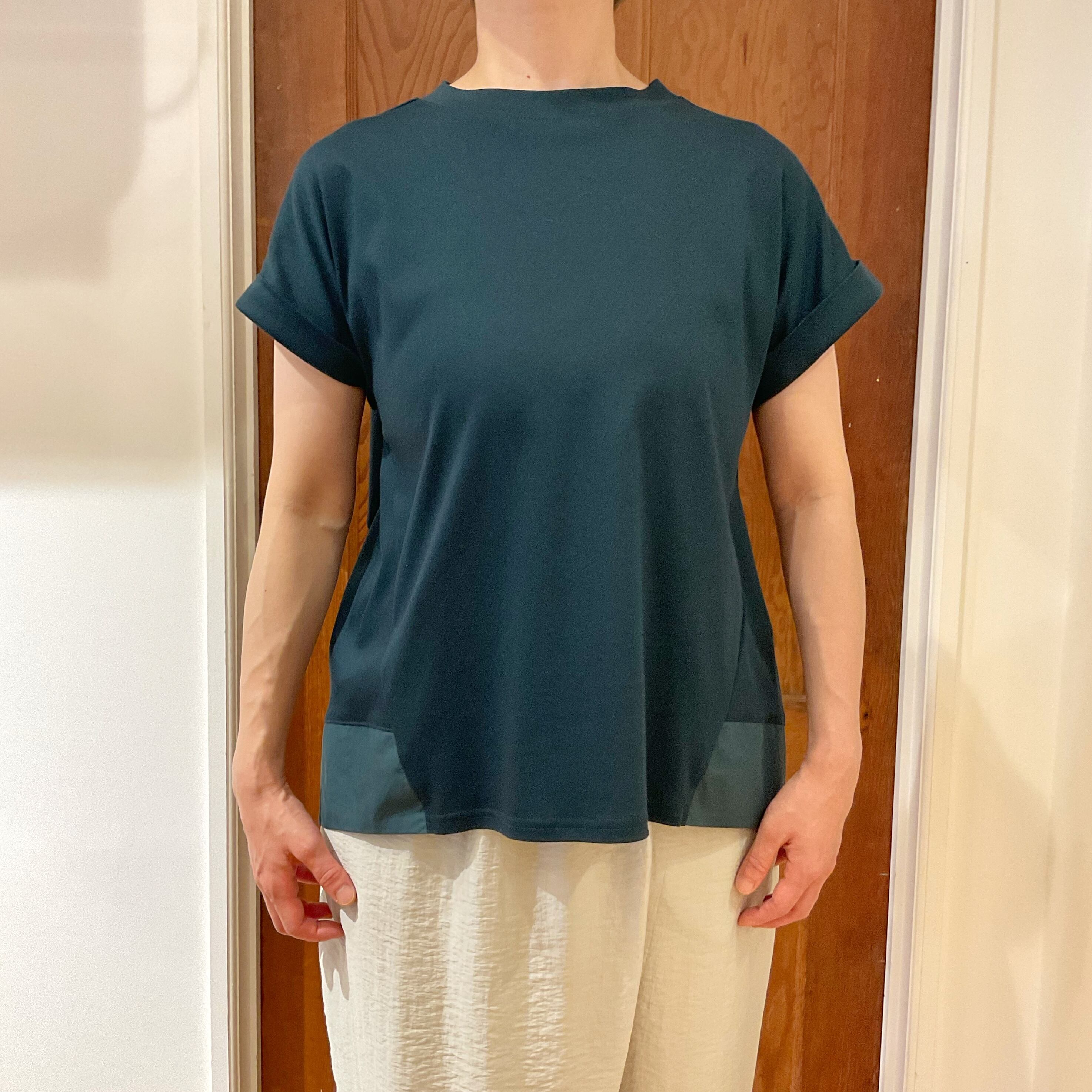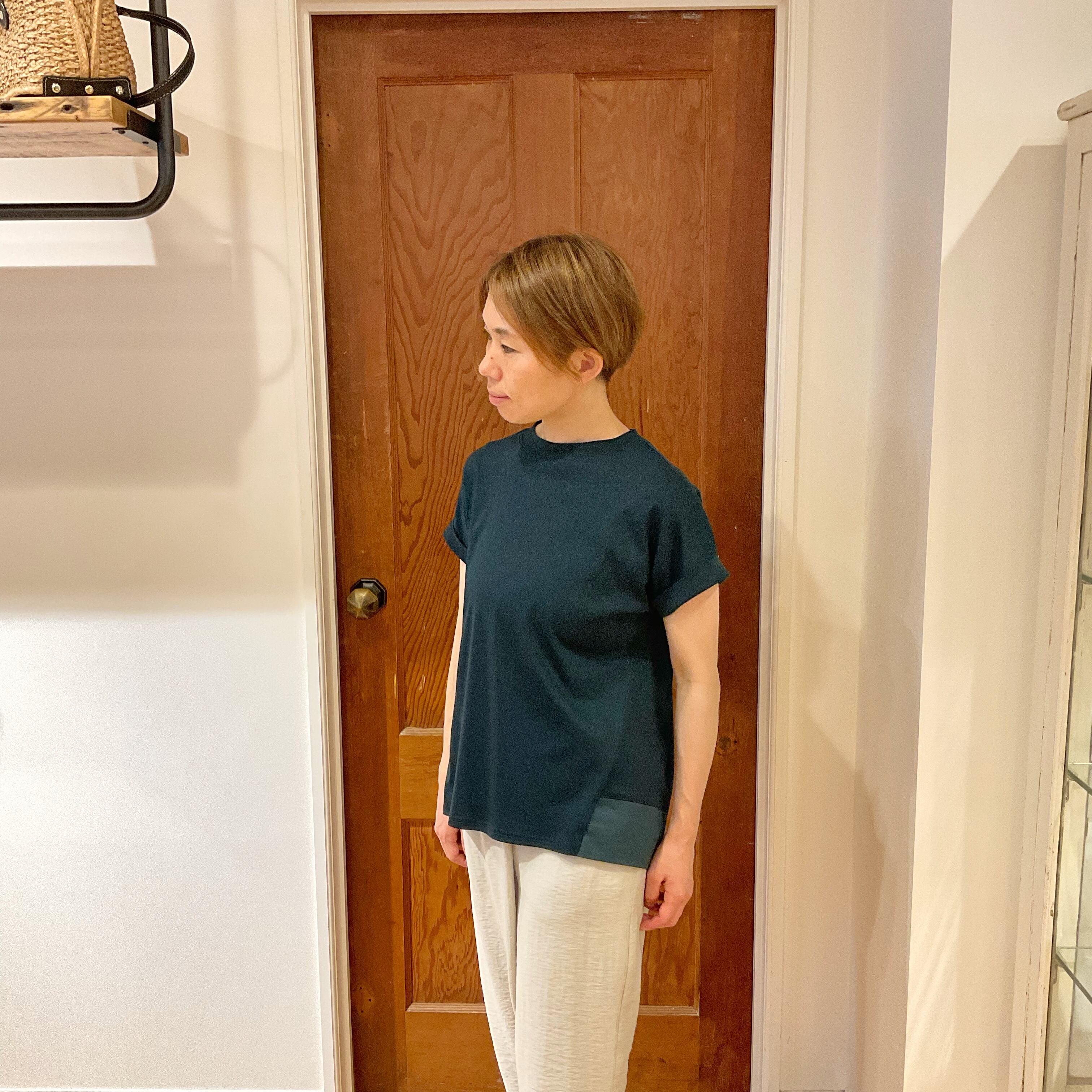<Design Detail> カットソーと布帛のドッキングトップ。