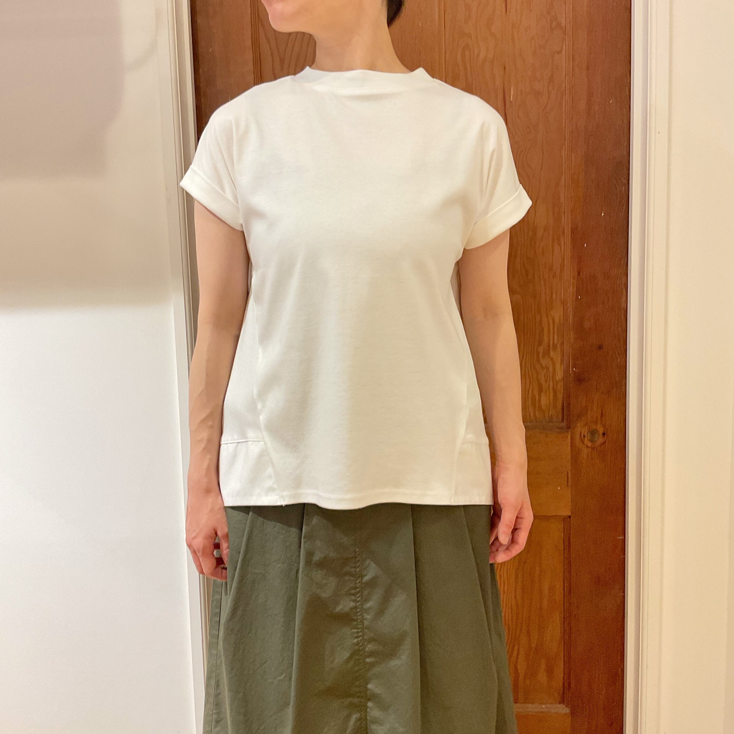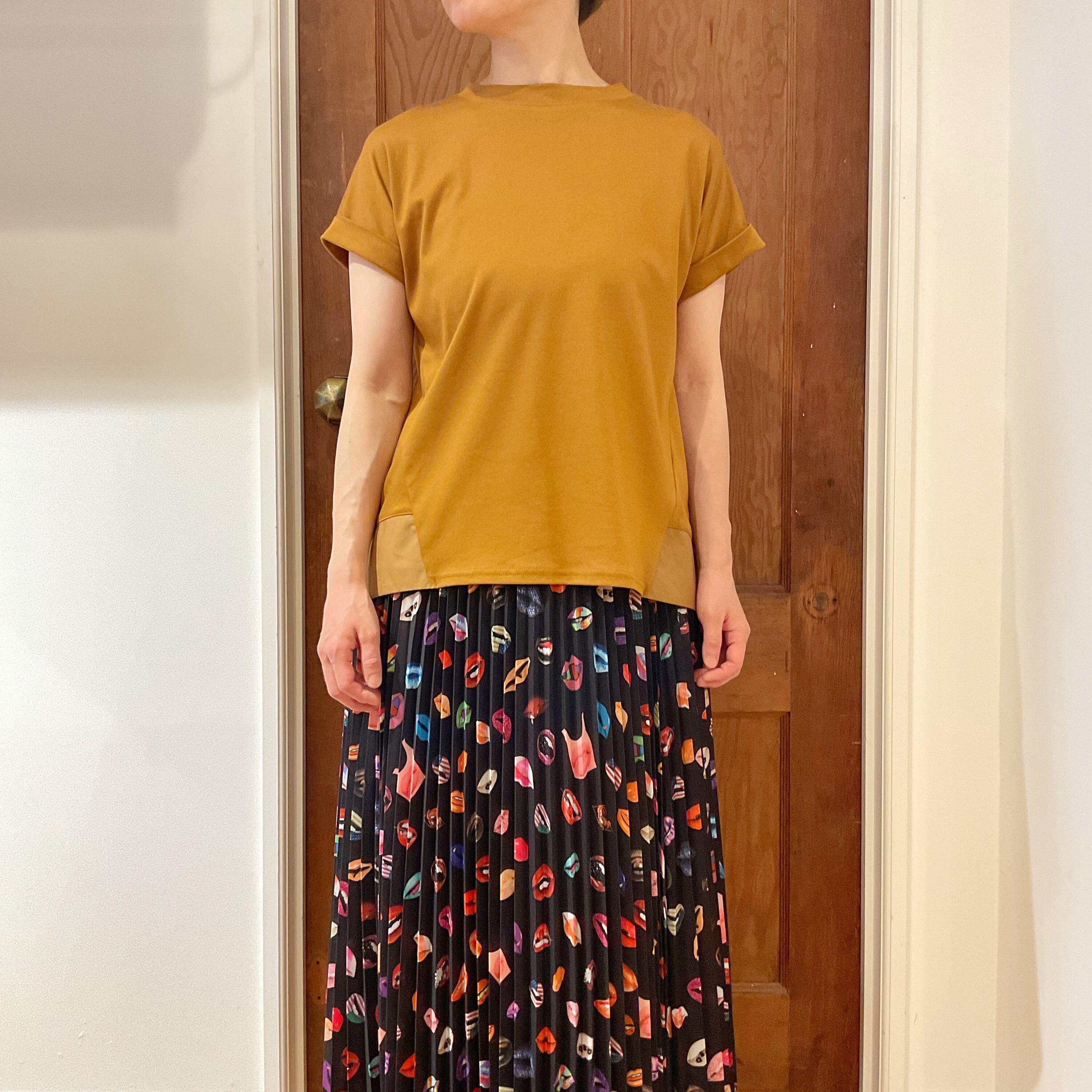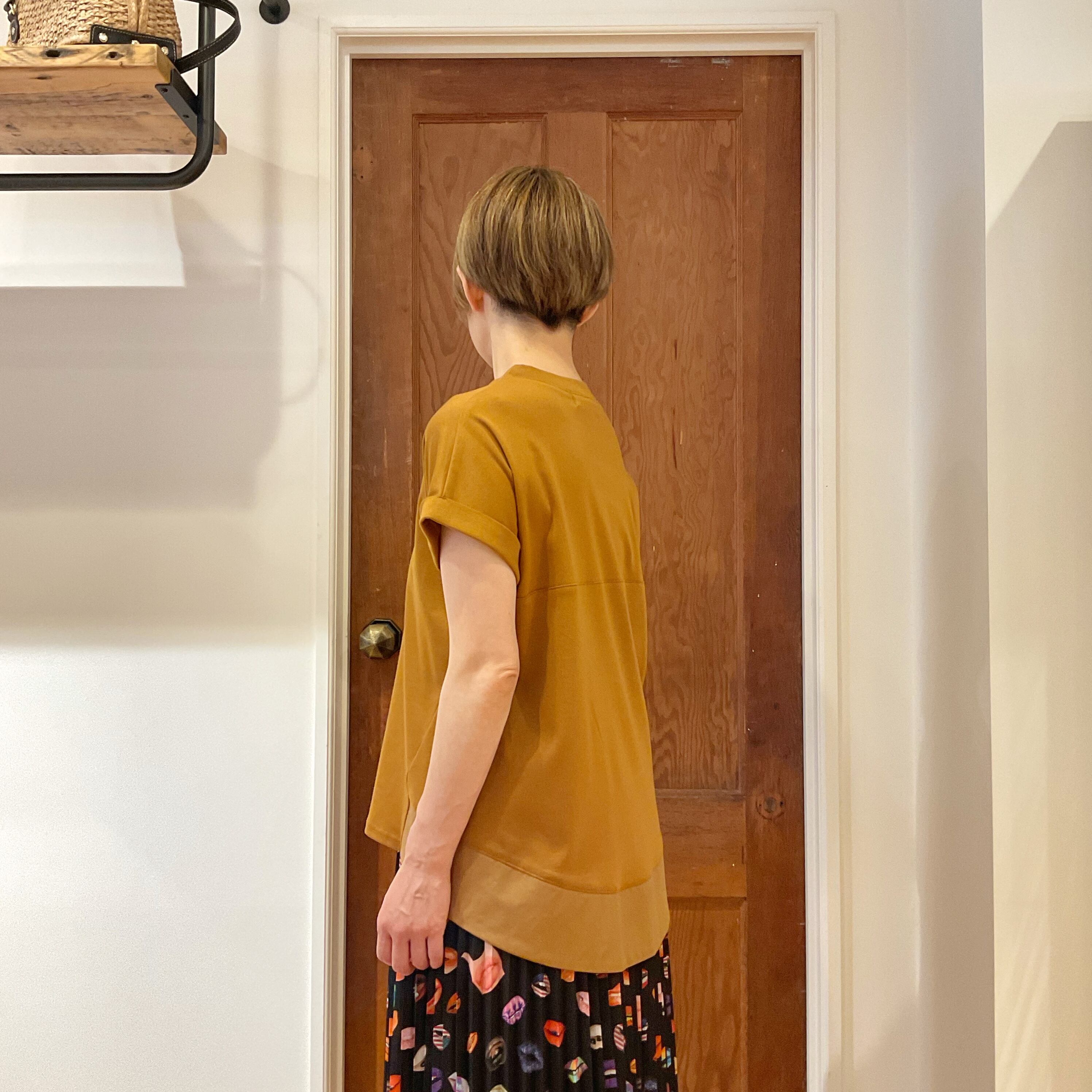 <Design Detail> カットソーと布帛のドッキングトップ。