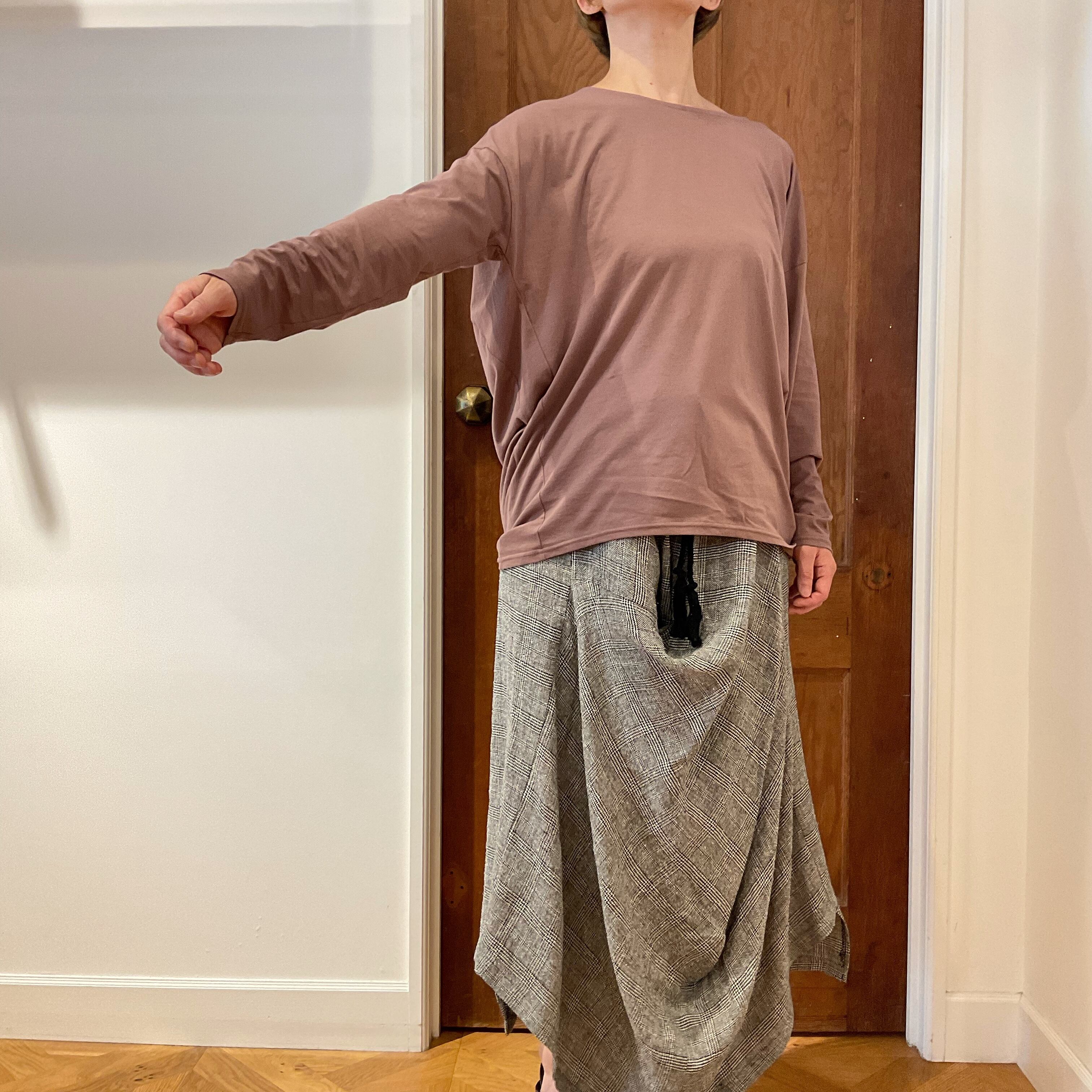 編み立てられたまるんとしたシルエットが特徴の長袖Tシャツ