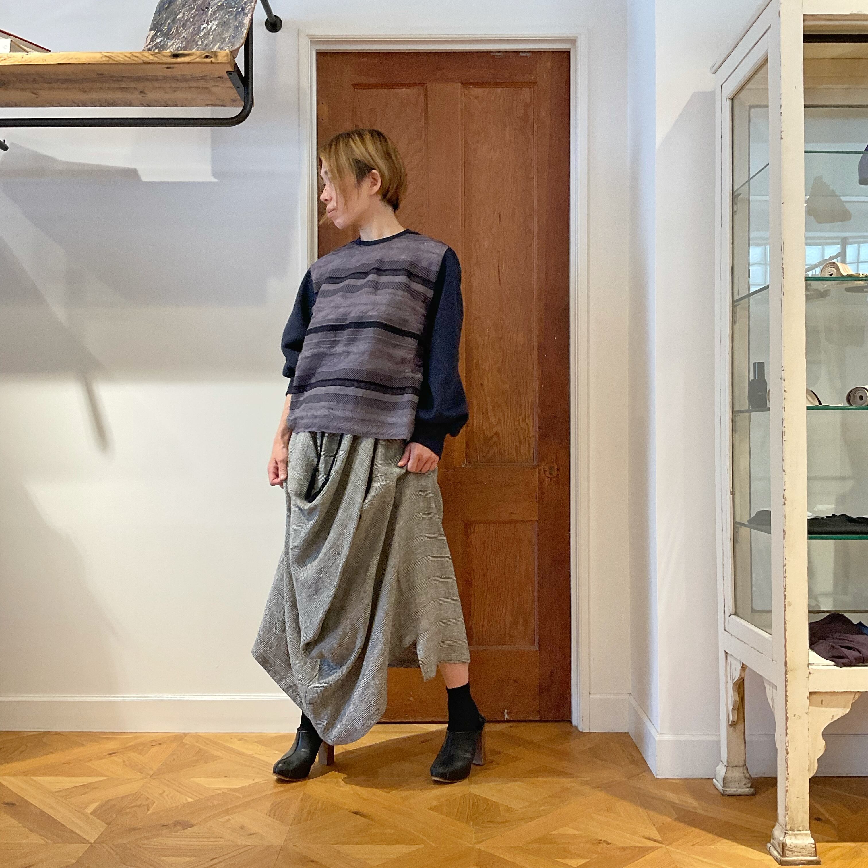 <Design Detail> 桐生の工場でオリジナルで作成したニット&ダンボールニットとのドッキングプルーオーバー