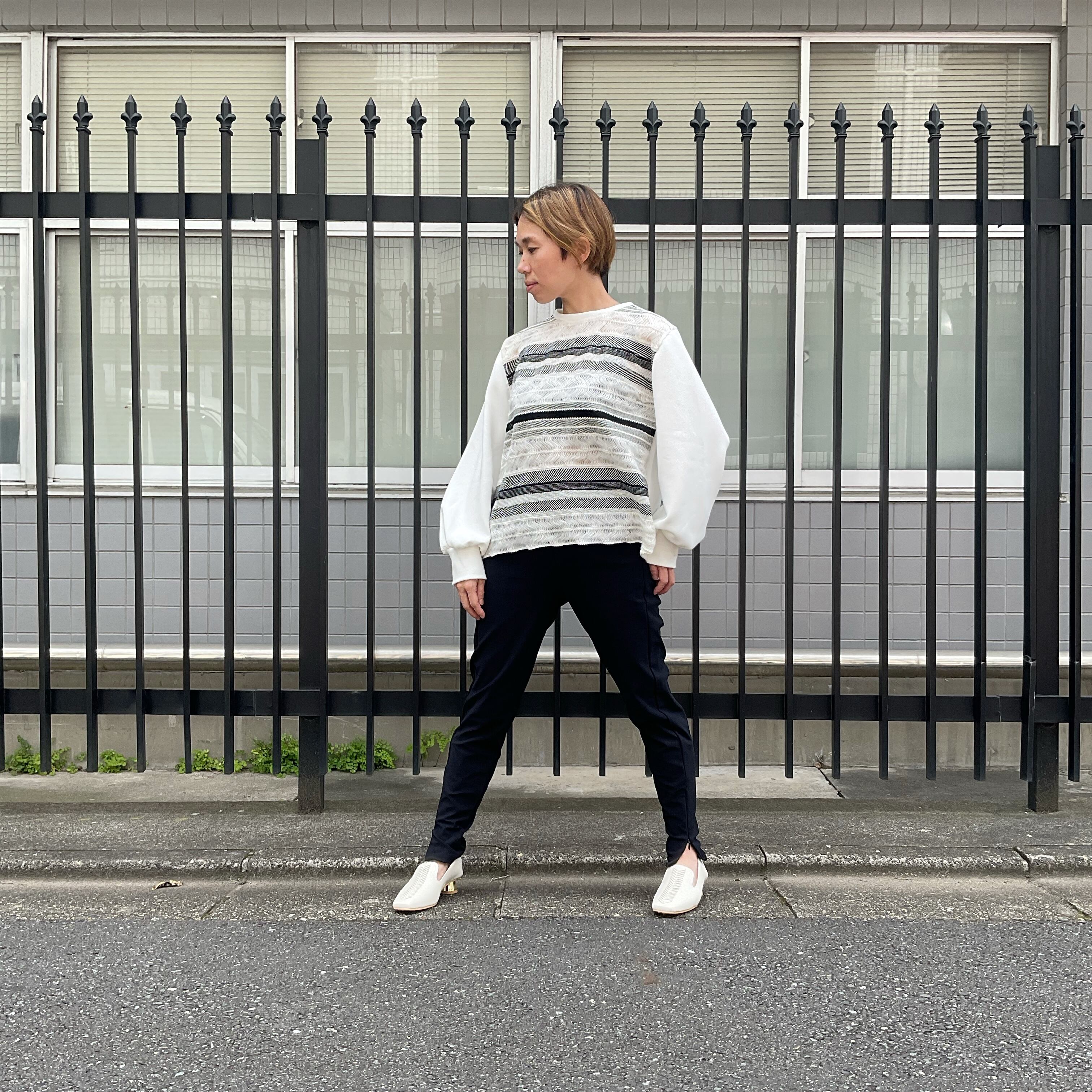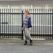 <Coordinate tips> 袖にボリュームがあり、シルエットもコロッと丸いので、ボトムは横に広がるモノより、落ち感のある素材や、細身のテーパードパンツなどがベター
