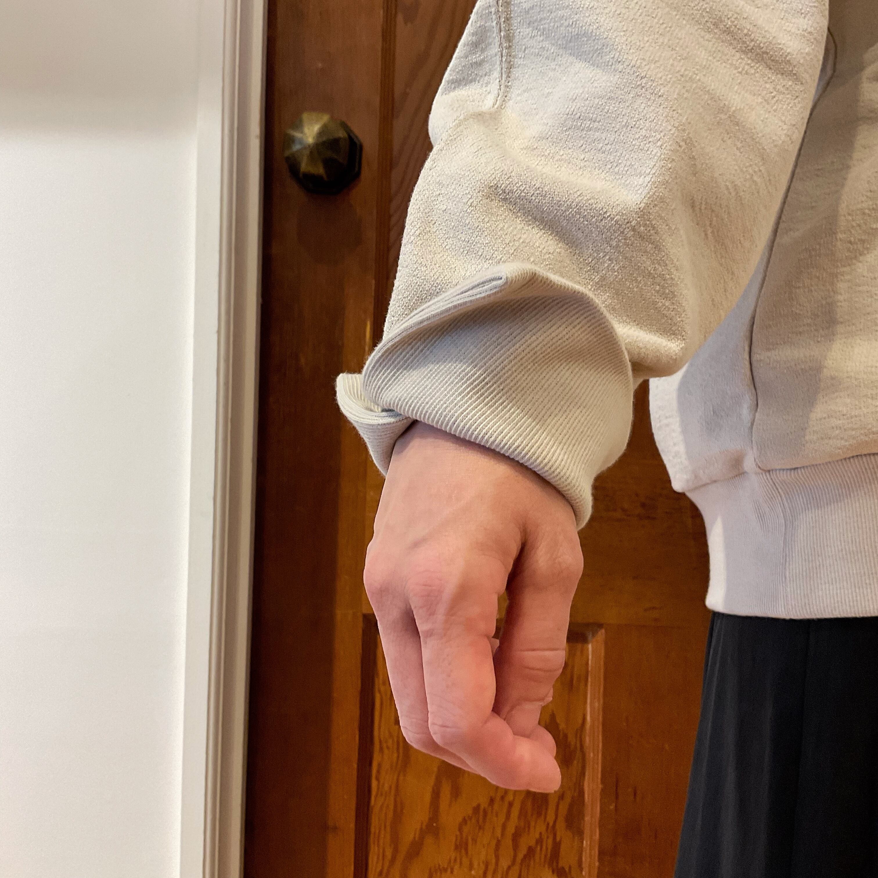 <Design Detail> 何でもないスウェットに見えるけど、素材は特殊な編み方をすることでポコポコと、粗野な雰囲気が残った表情