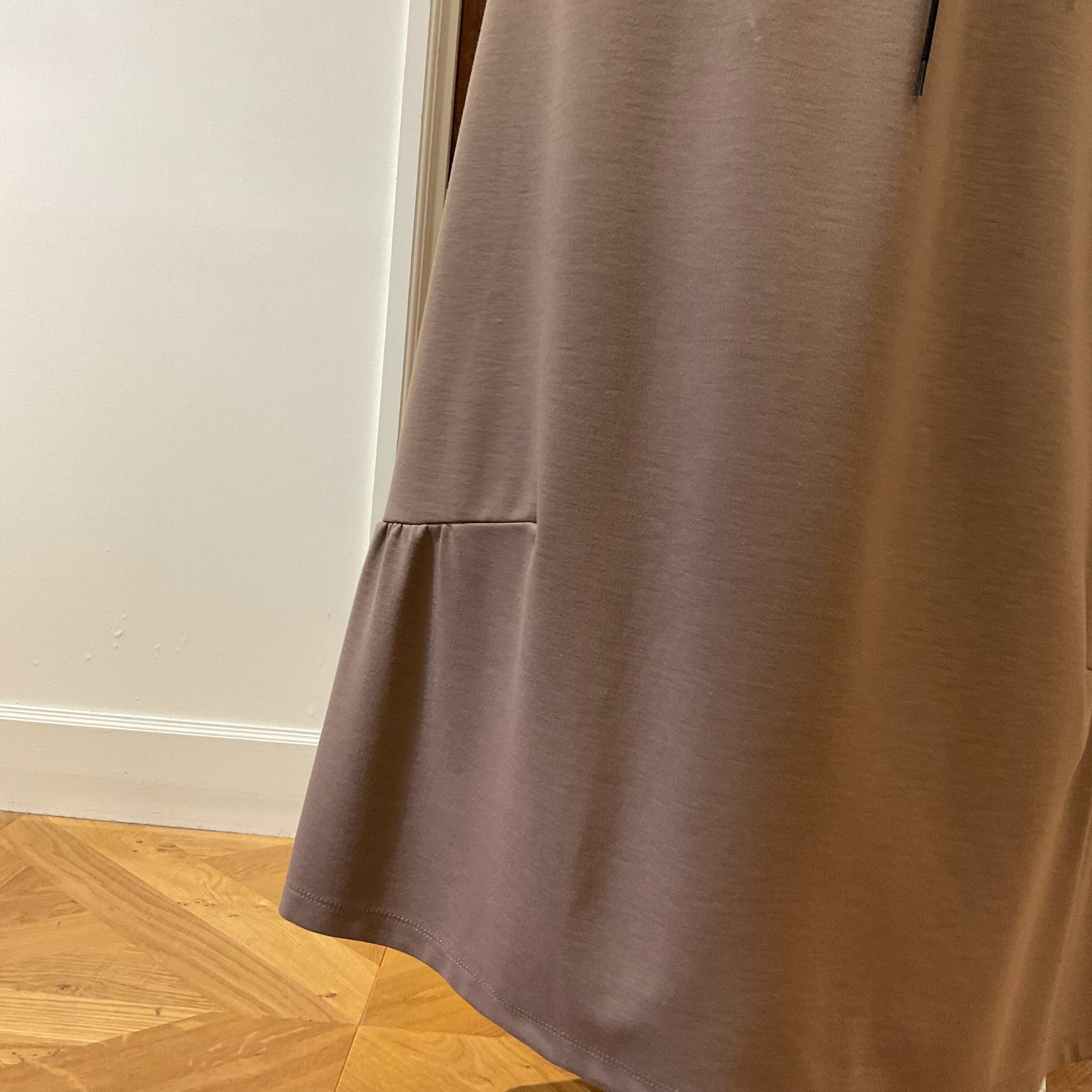 シルエットはシンプルなAラインに裾にギャザーを入れて