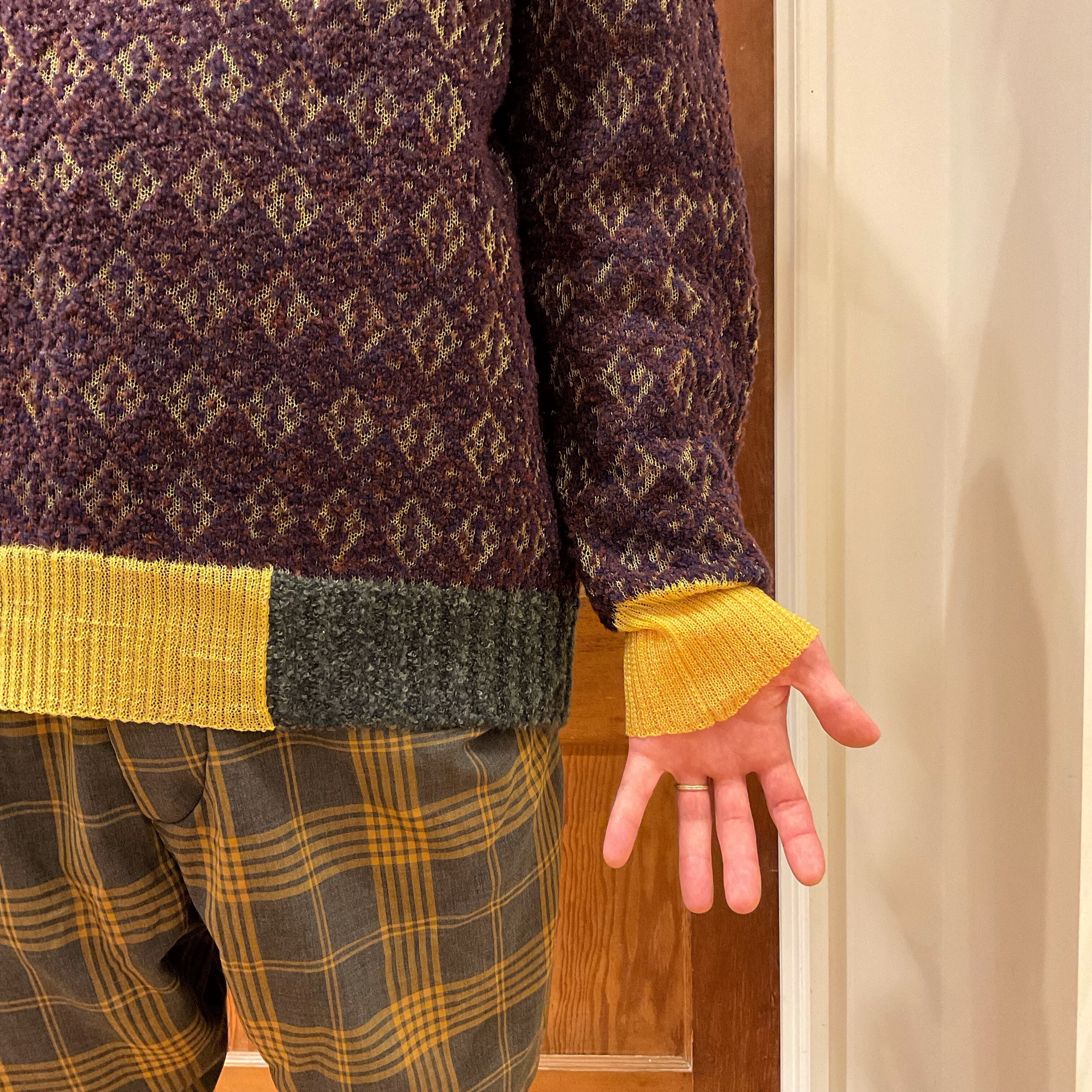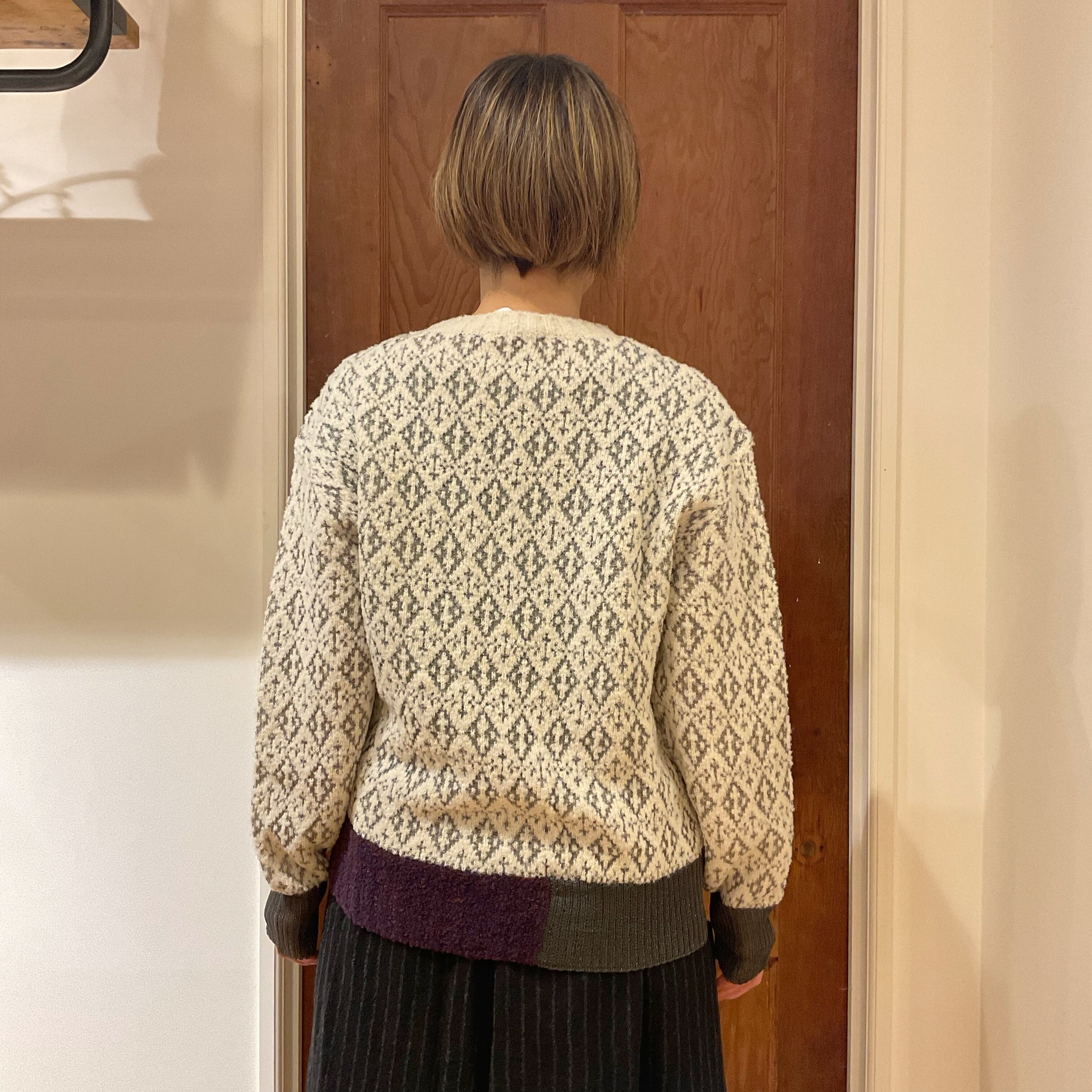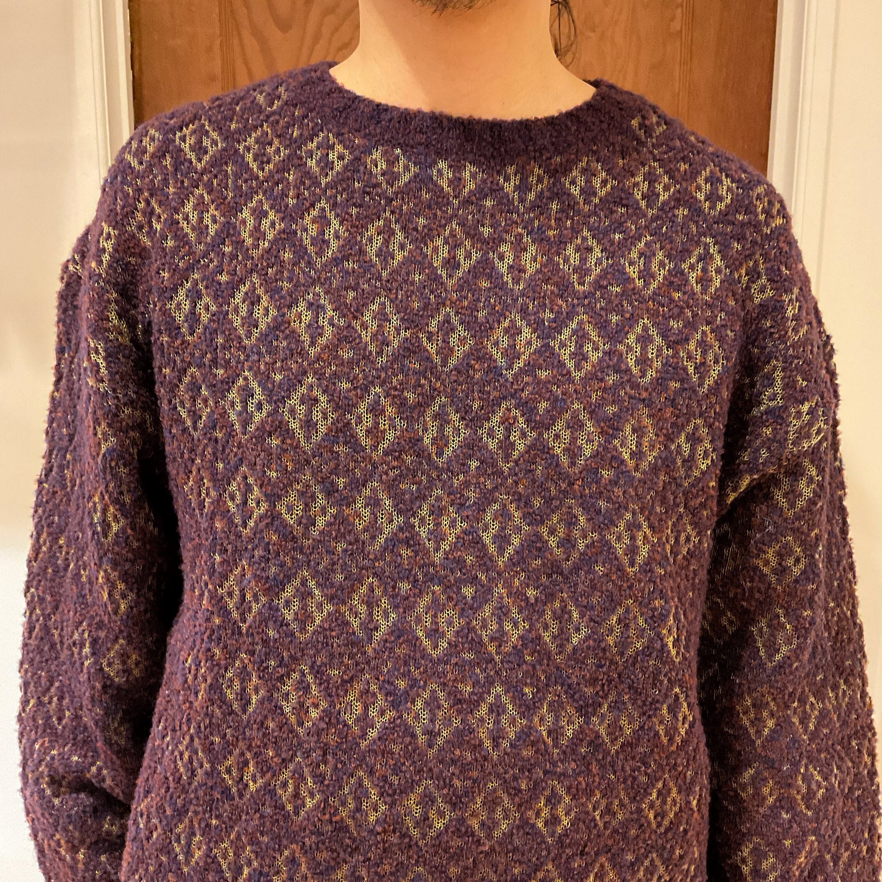 立体感のあるジャカード編みで、柄はダイヤモチーフ