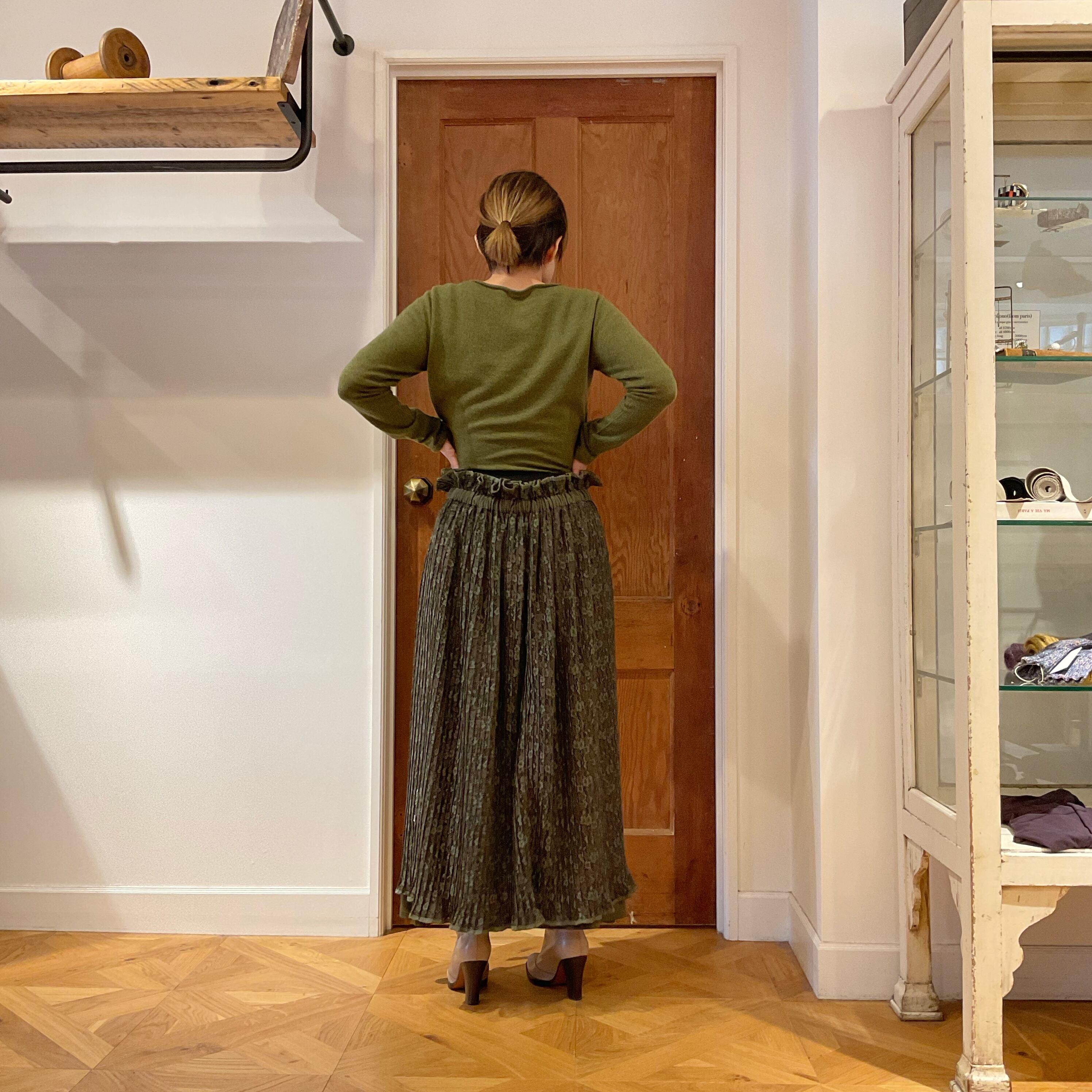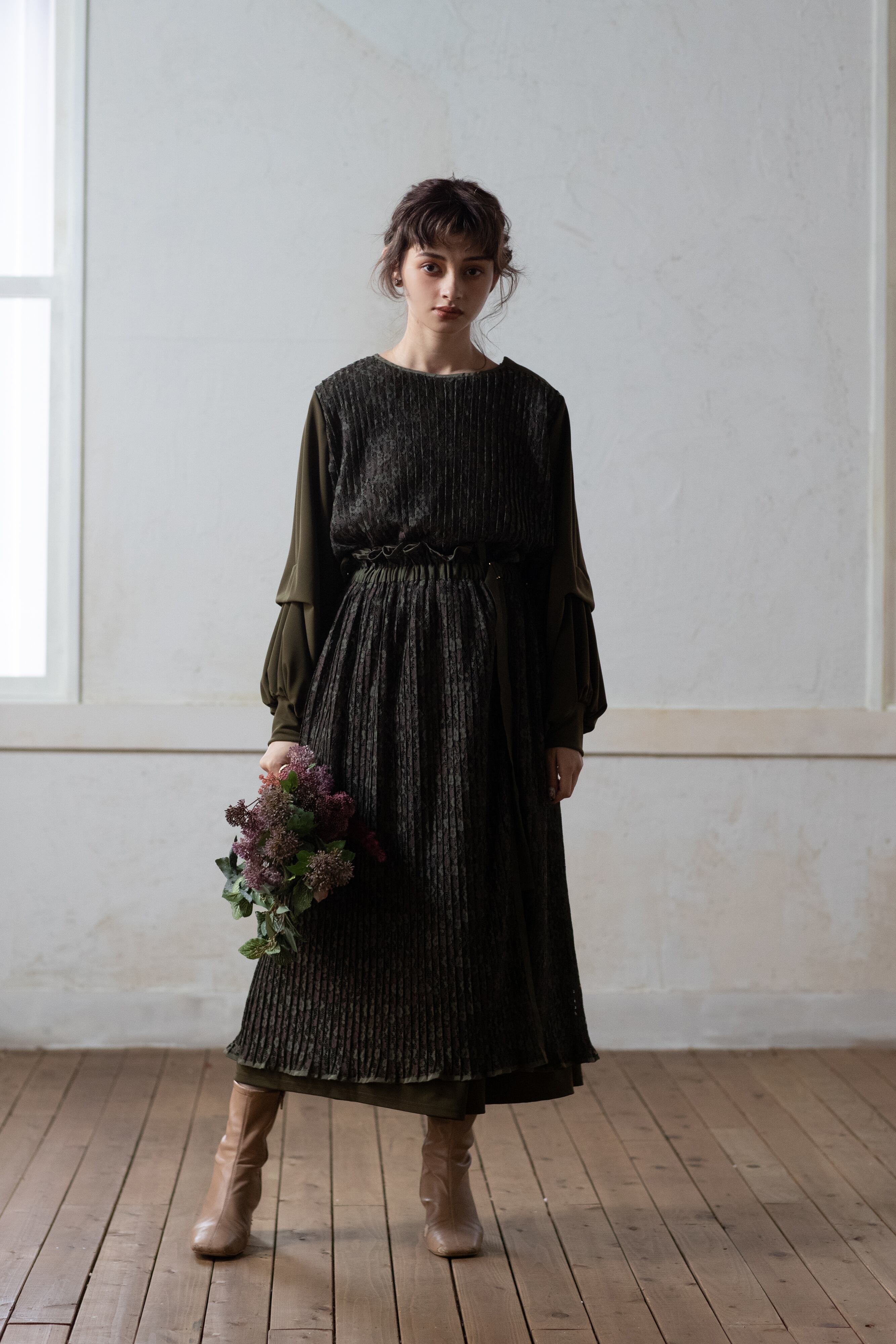 更に1㎝ピッチの細かなプリーツが生地に立体感のある表情を+